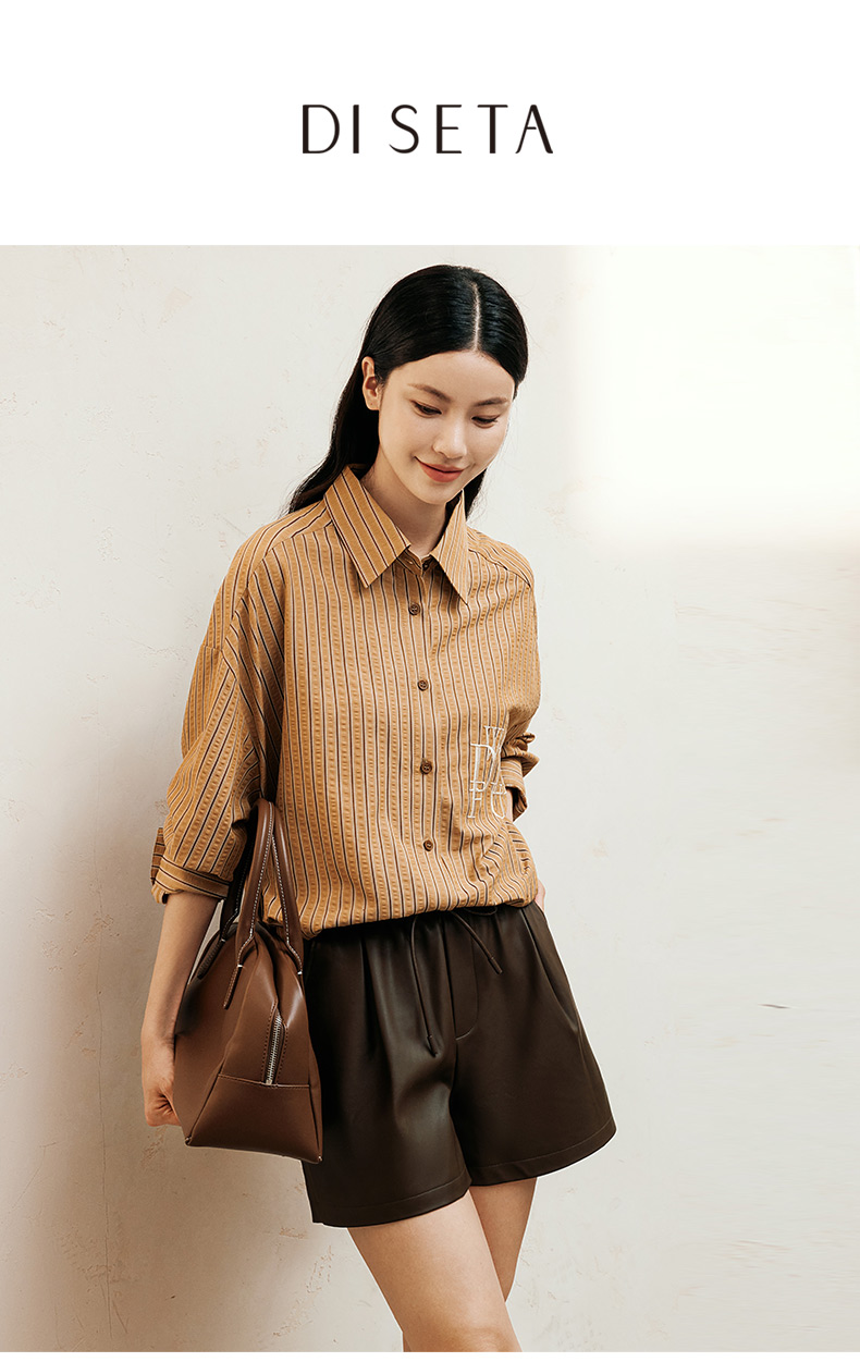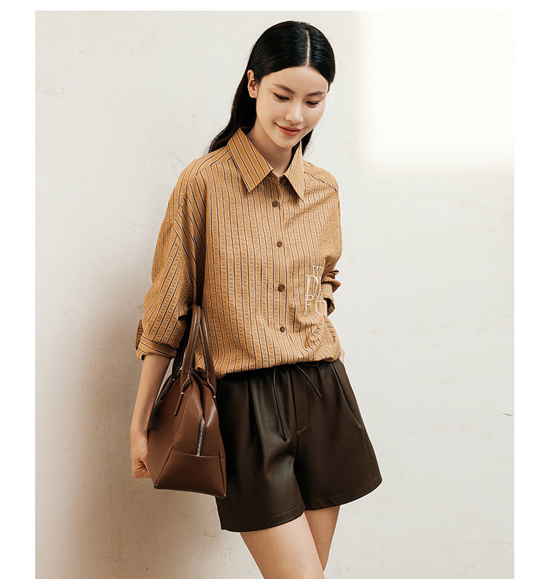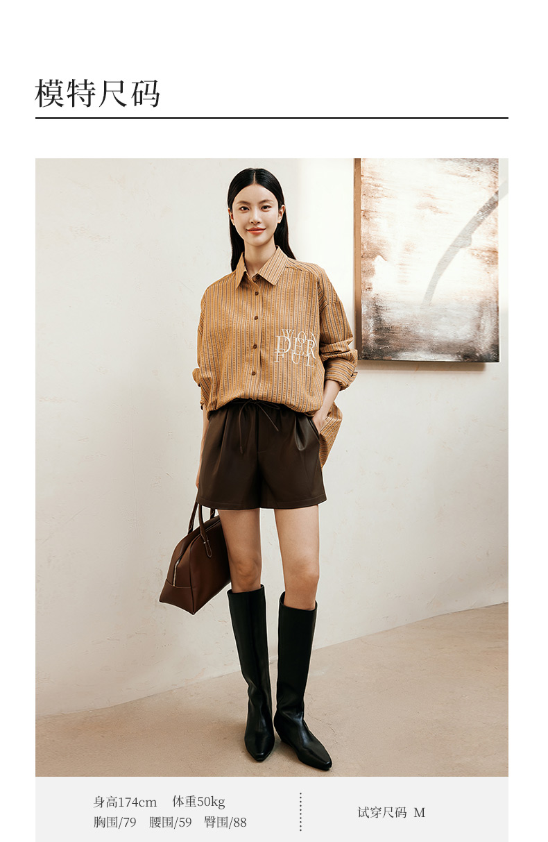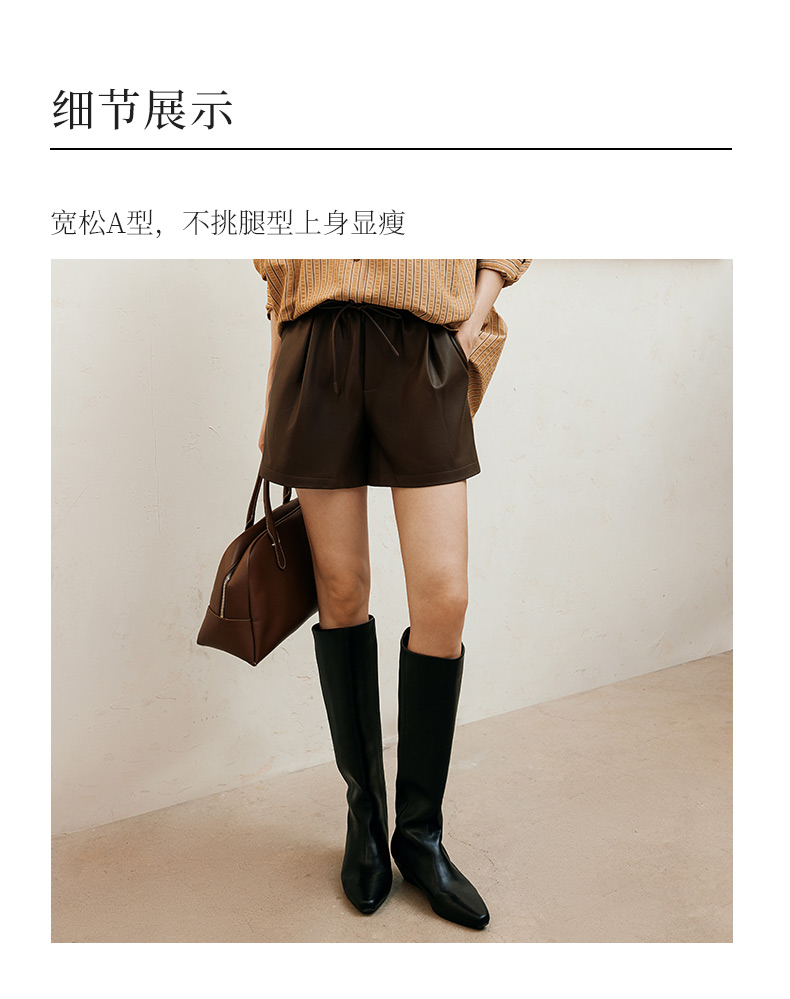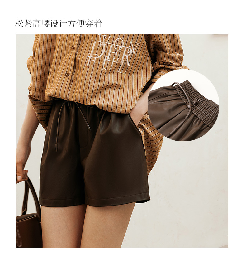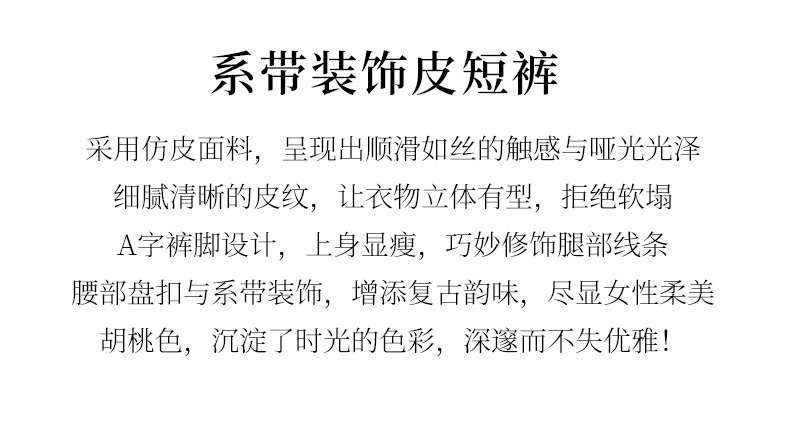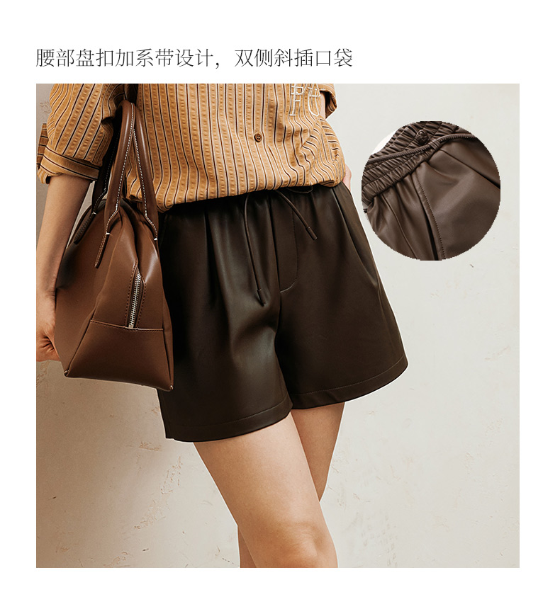 玳莎松紧腰仿皮短裤女2024年冬季新款百搭复古显瘦A字阔腿裤子 ED36102