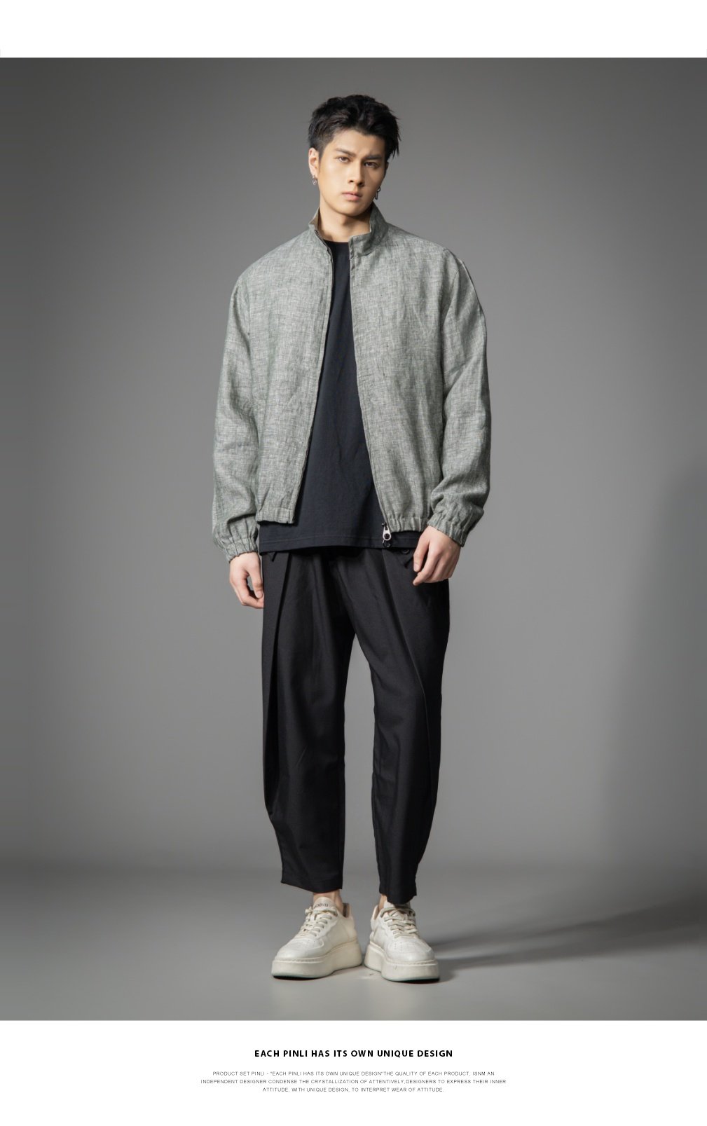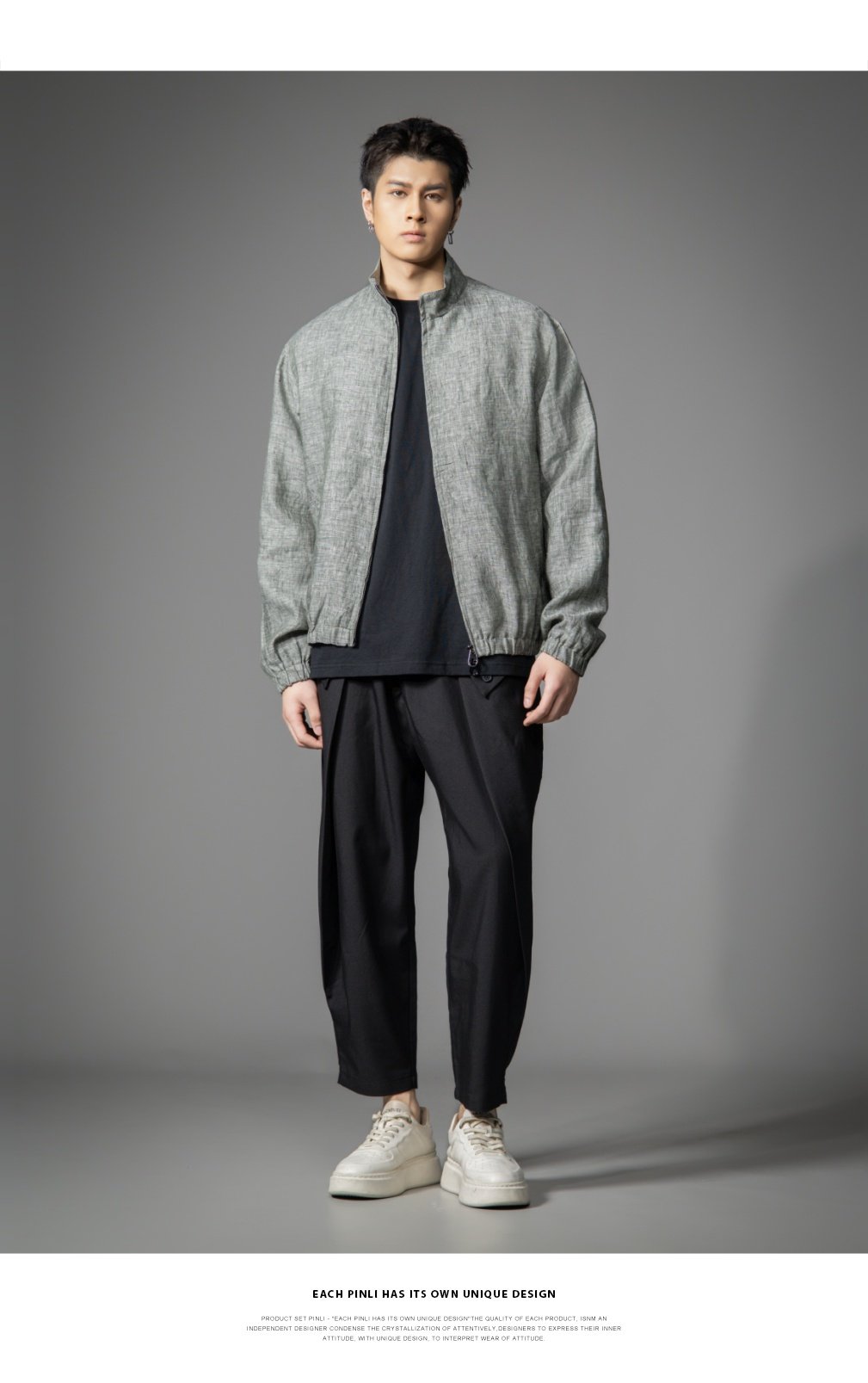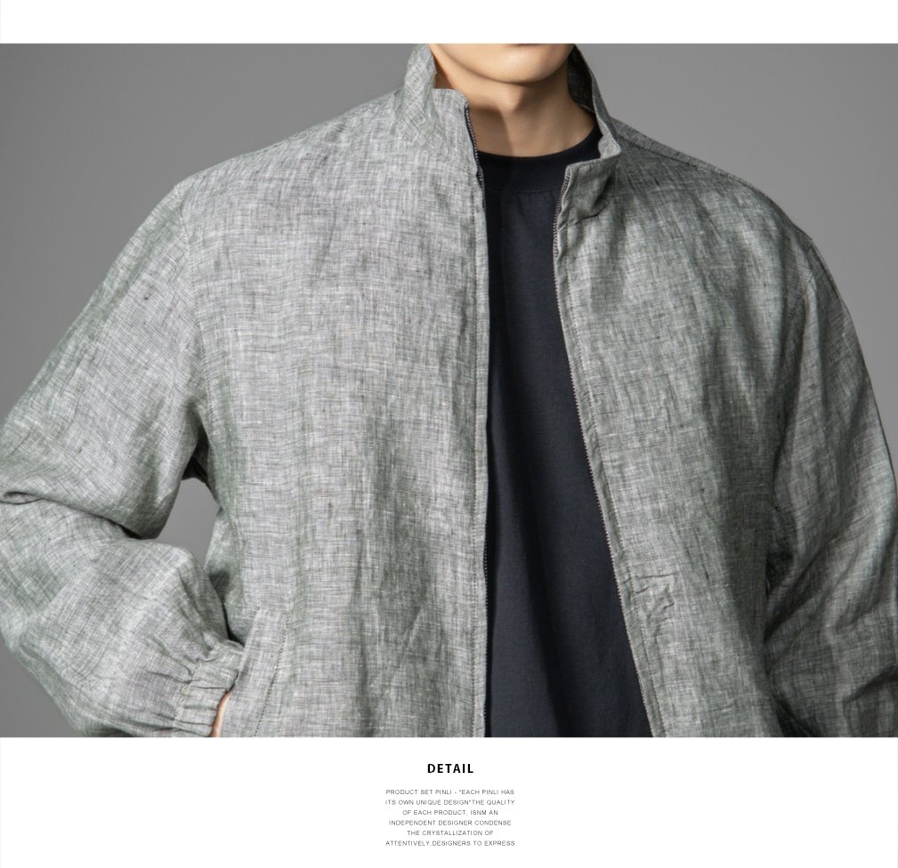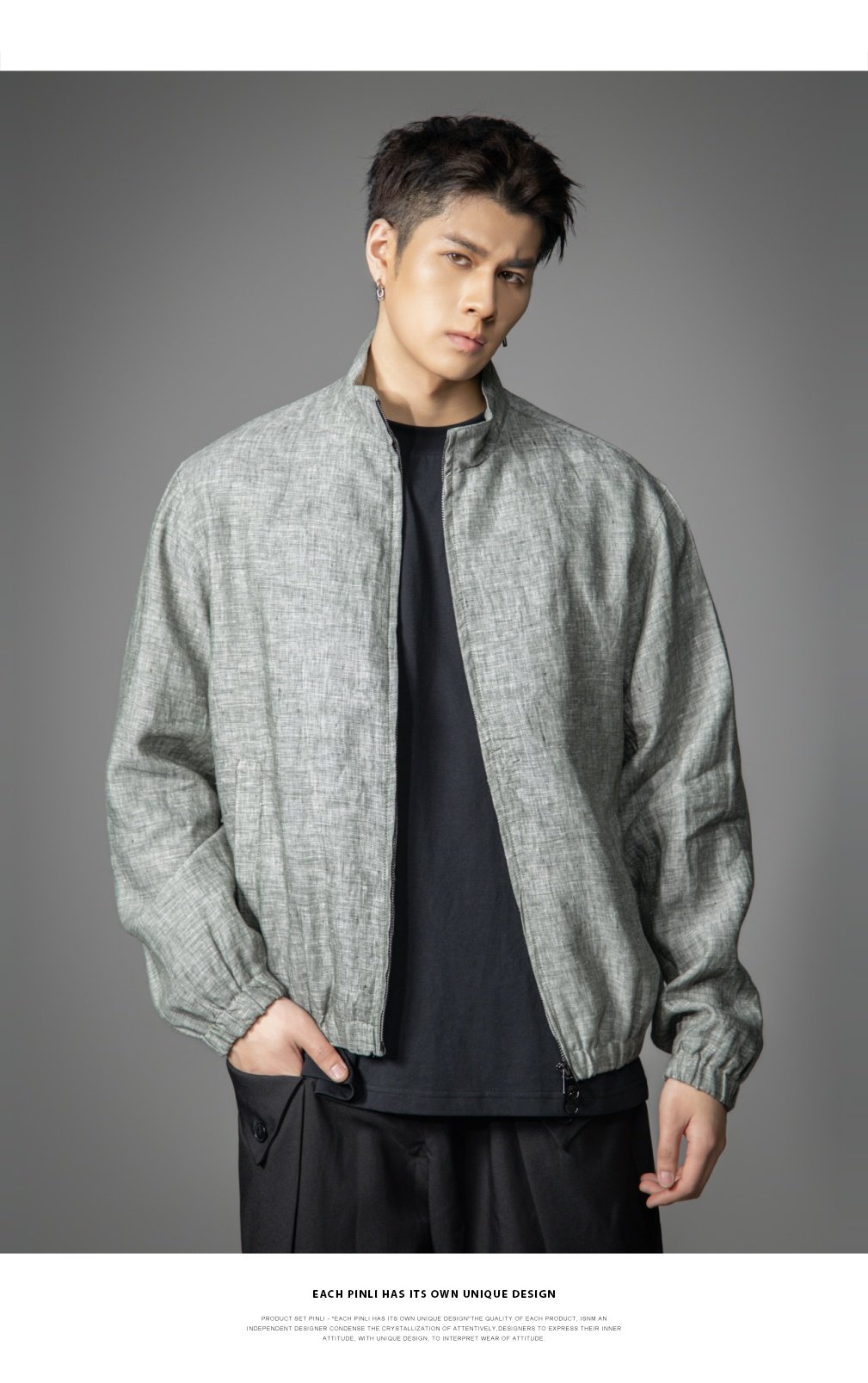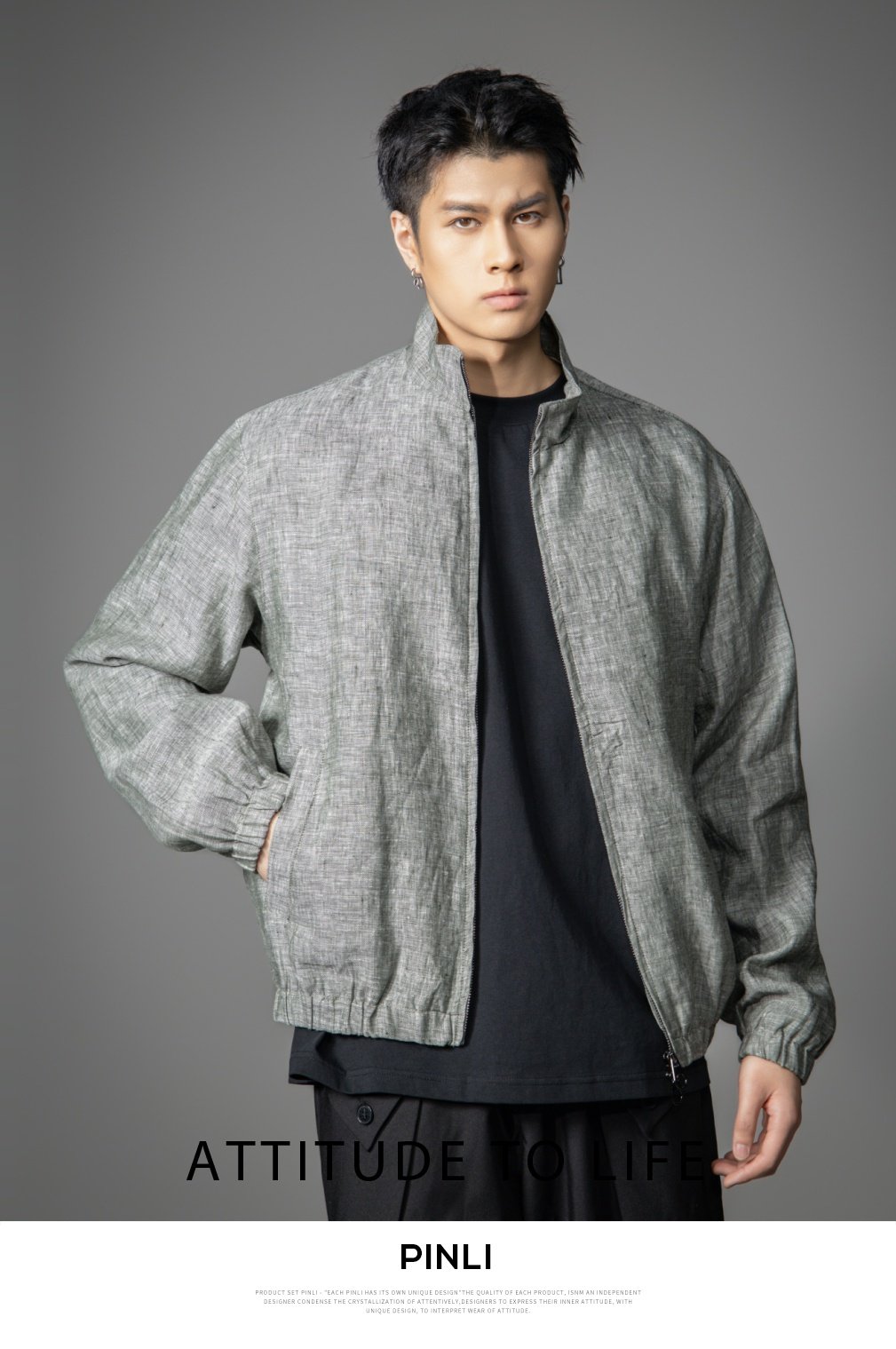 PINLI品立2026春季新款青年立领纯色亚麻梭织茄克外套上衣潮牌男GD262104008
