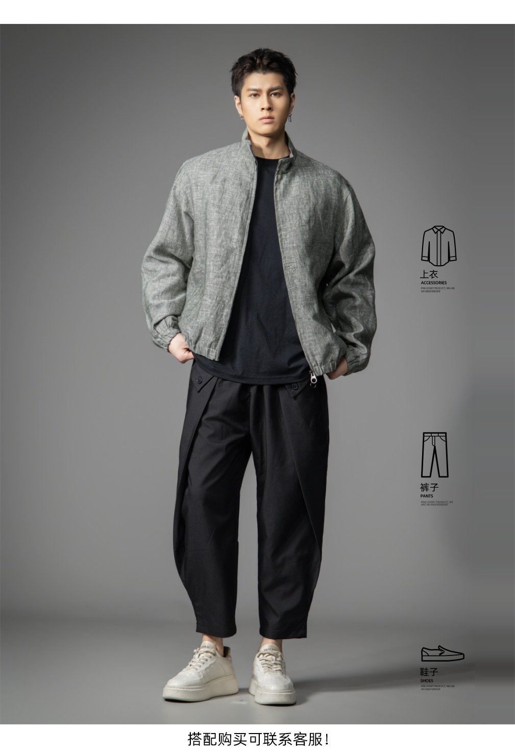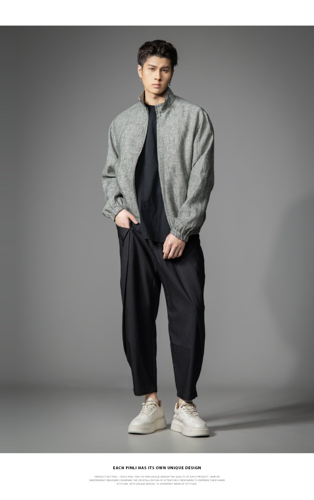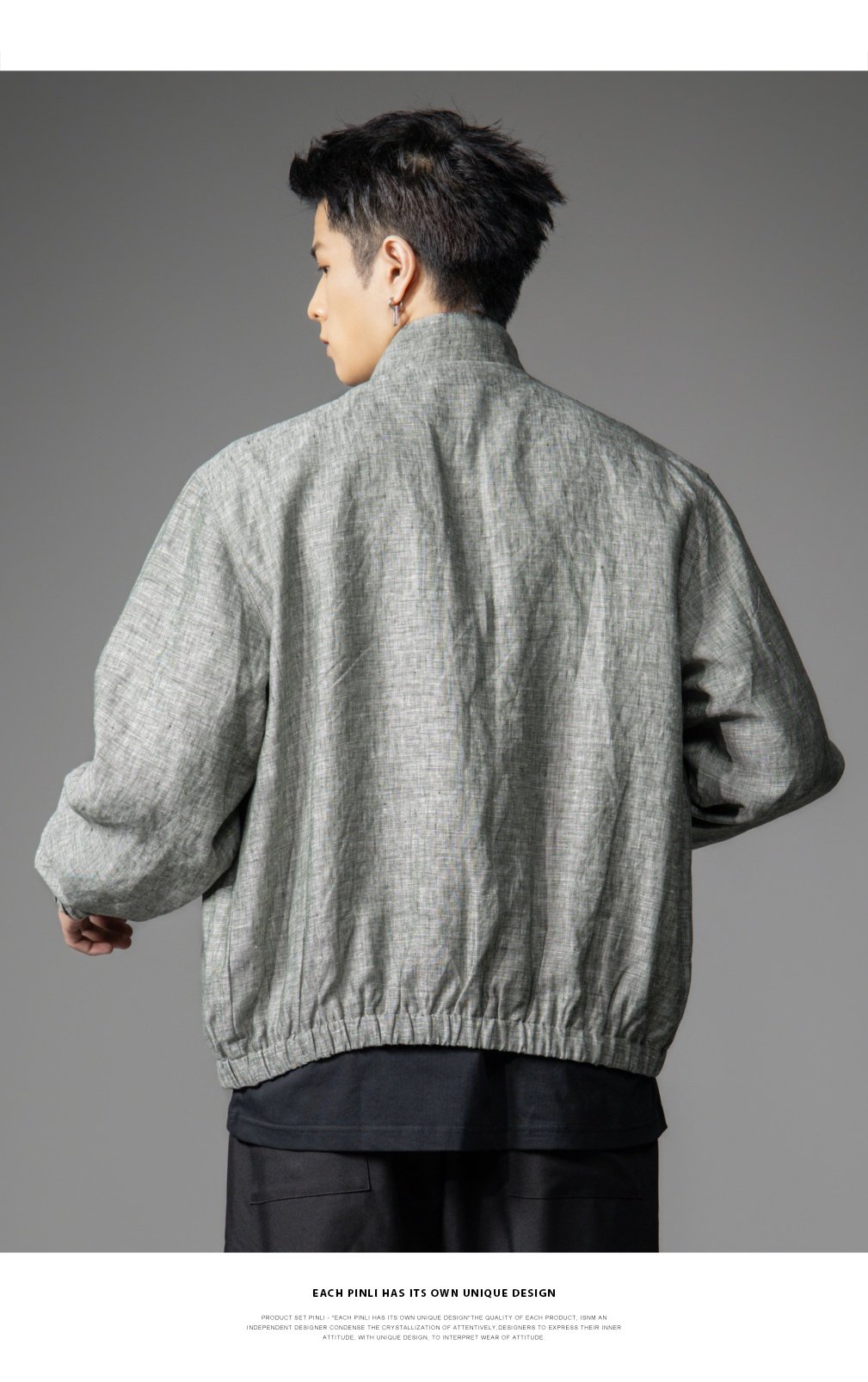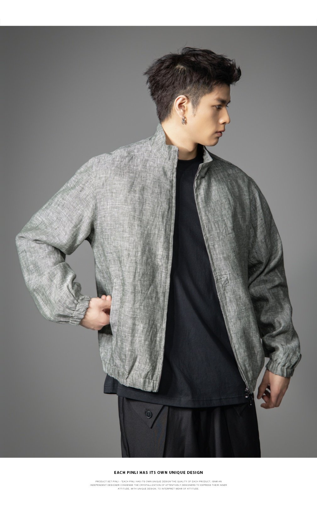 PINLI品立2026春季新款青年立领纯色亚麻梭织茄克外套上衣潮牌男GD262104008