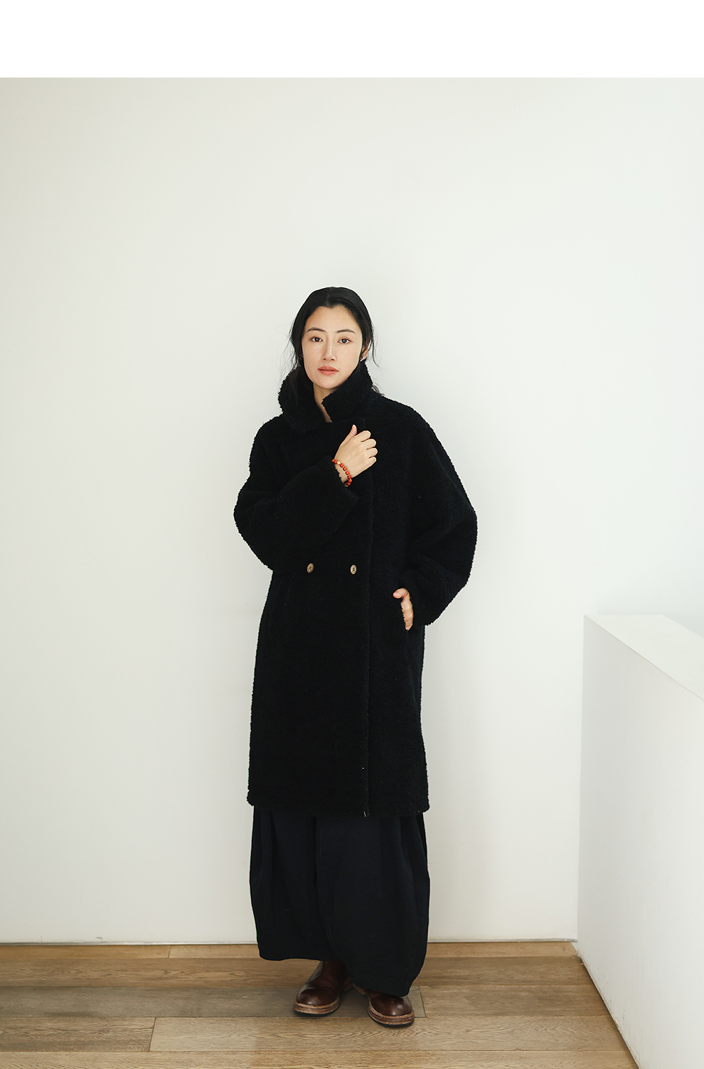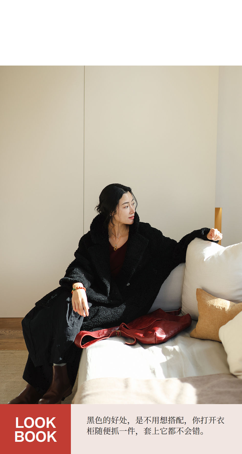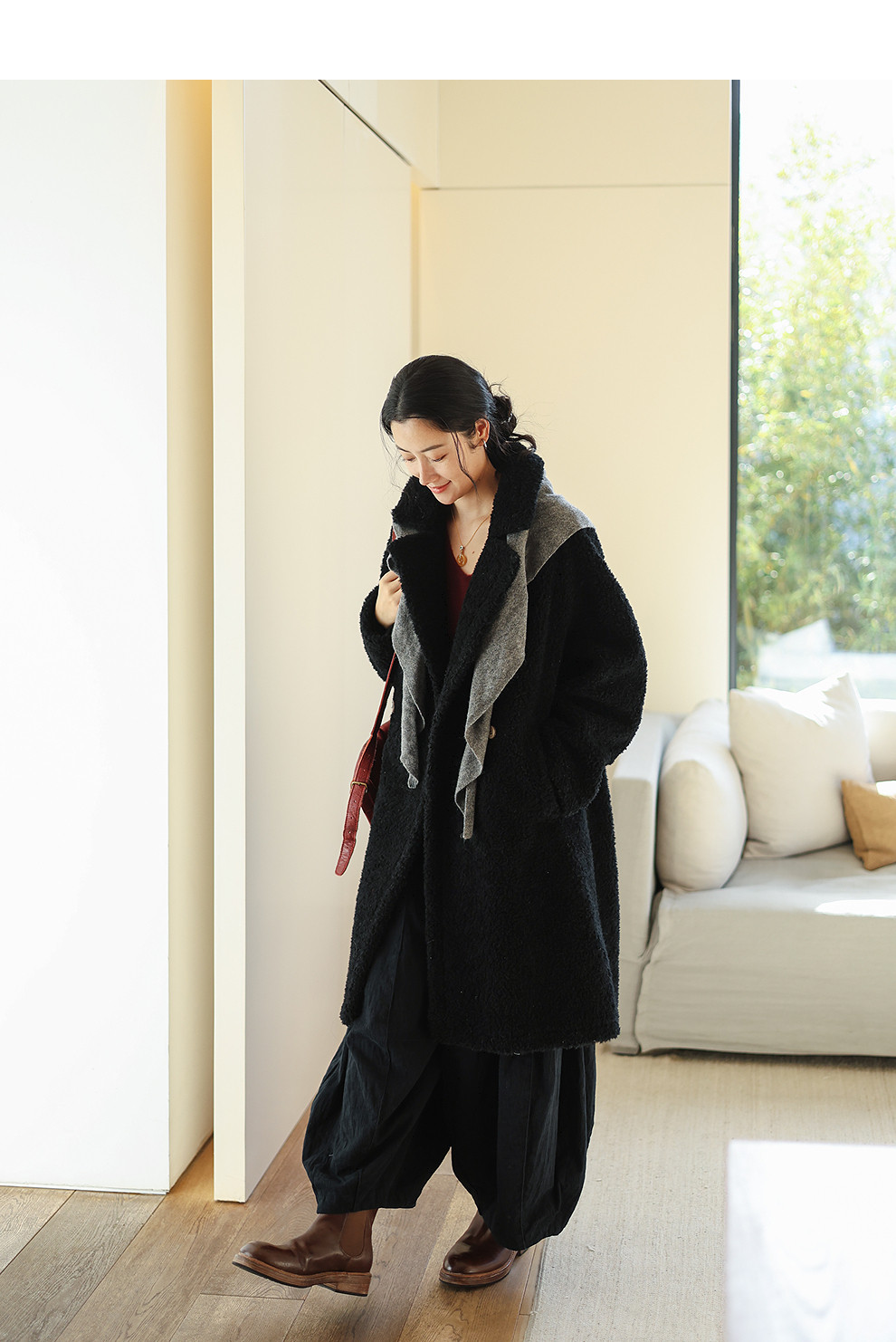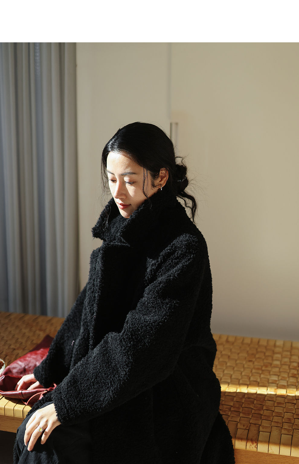 绽放879朵/纯羊毛外套新款气质羊羔毛帅气翻领长款加厚羊毛大衣女