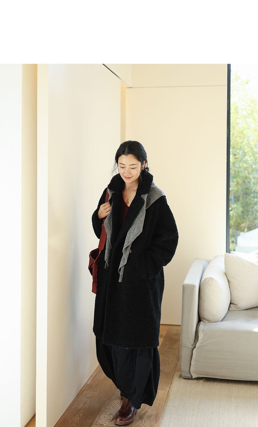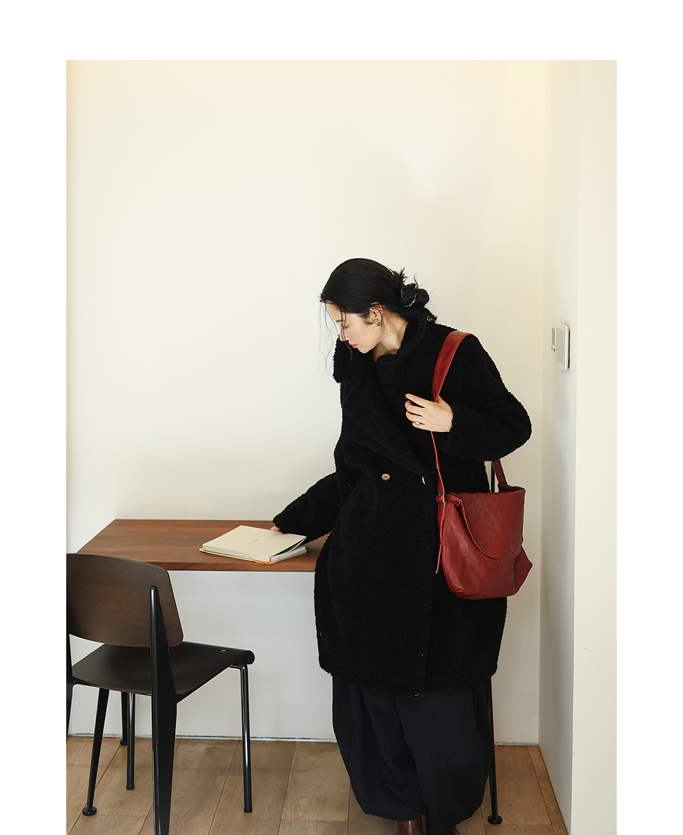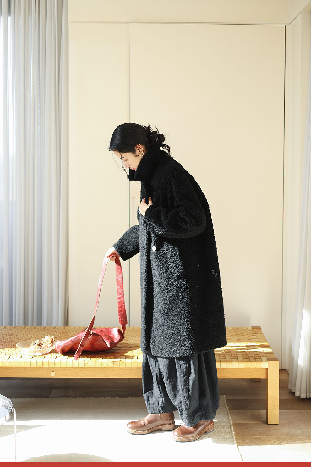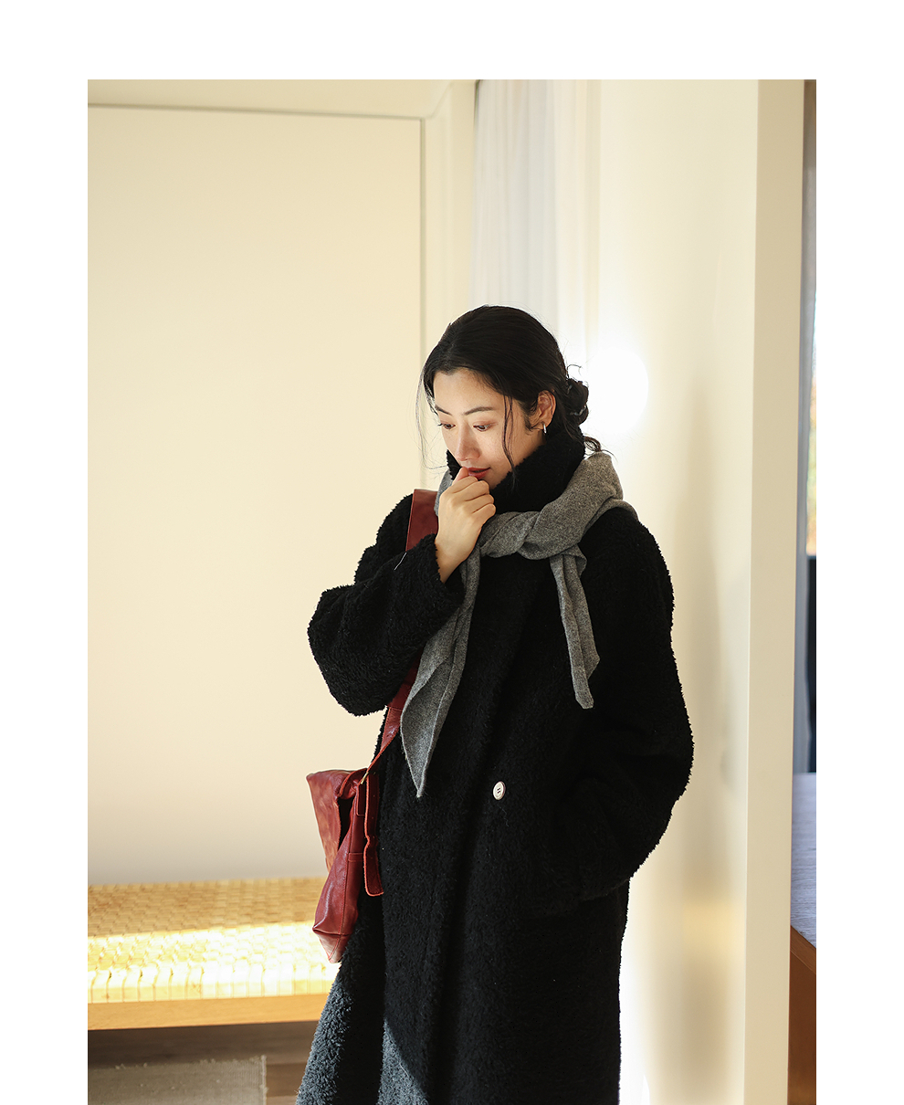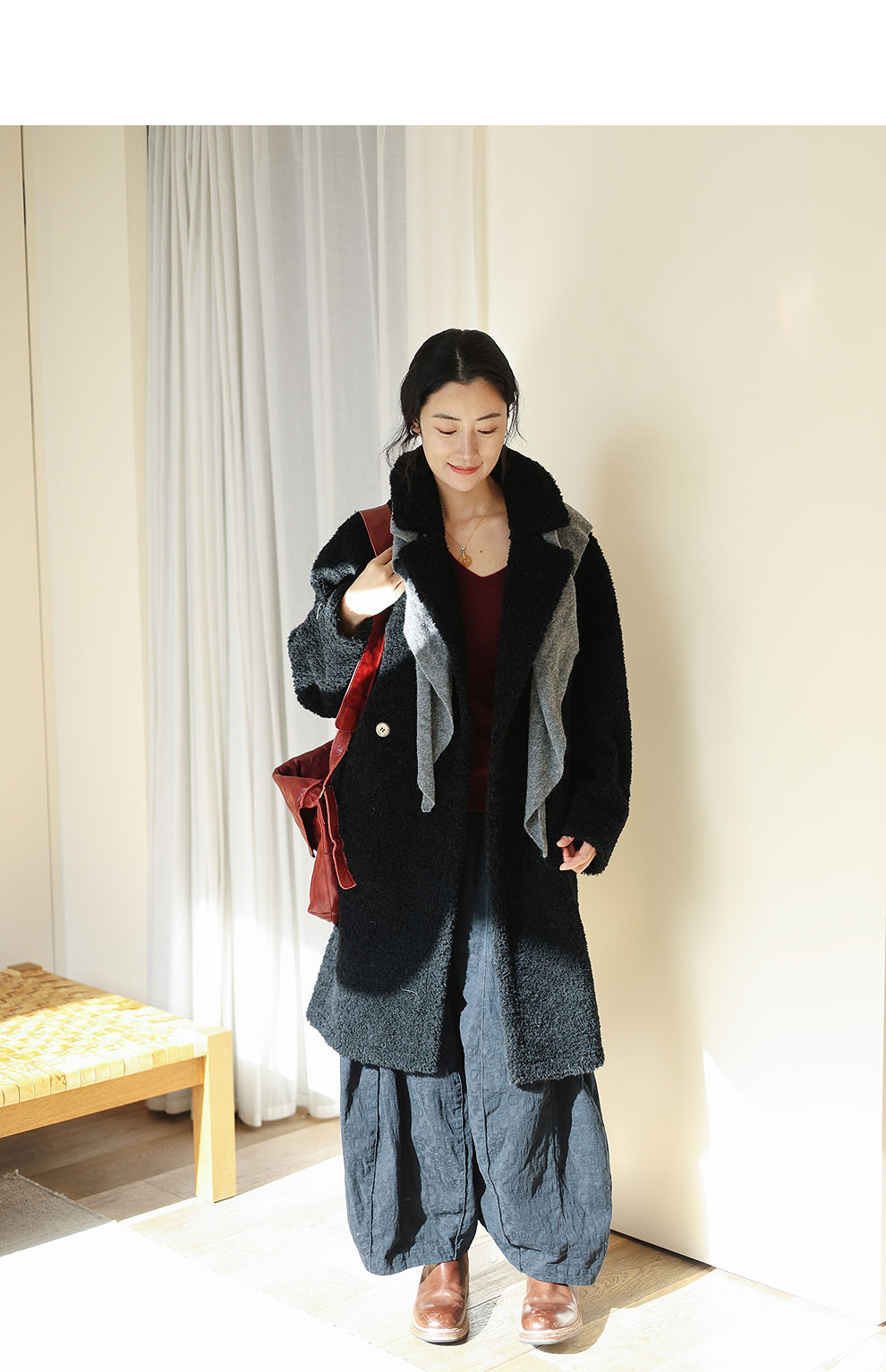 绽放879朵/纯羊毛外套新款气质羊羔毛帅气翻领长款加厚羊毛大衣女
