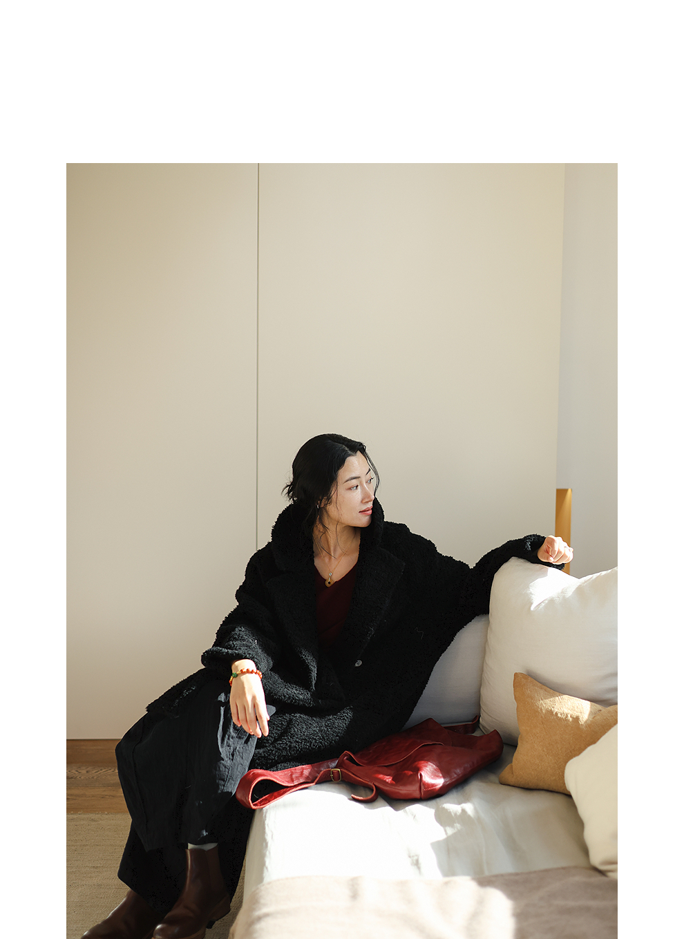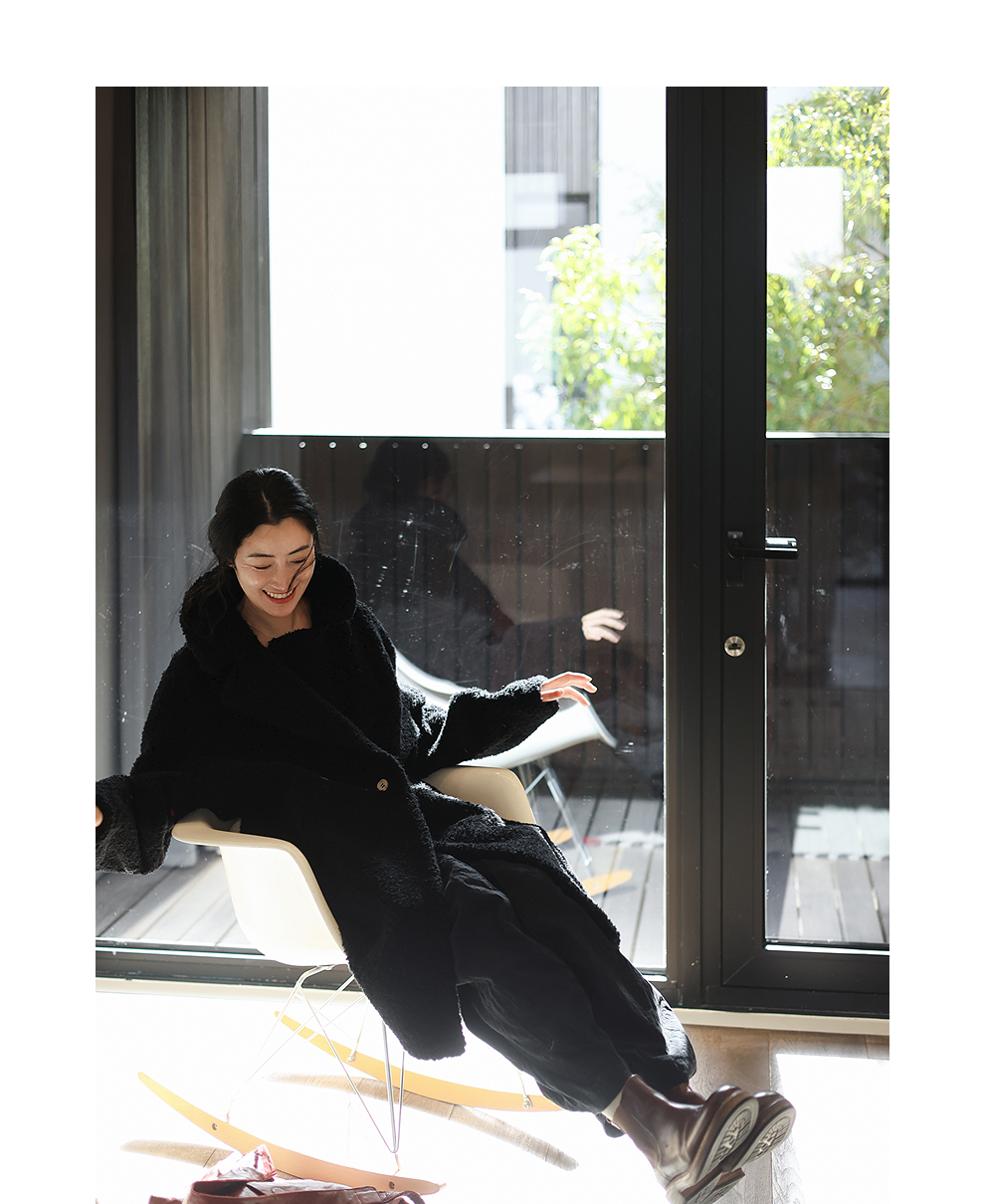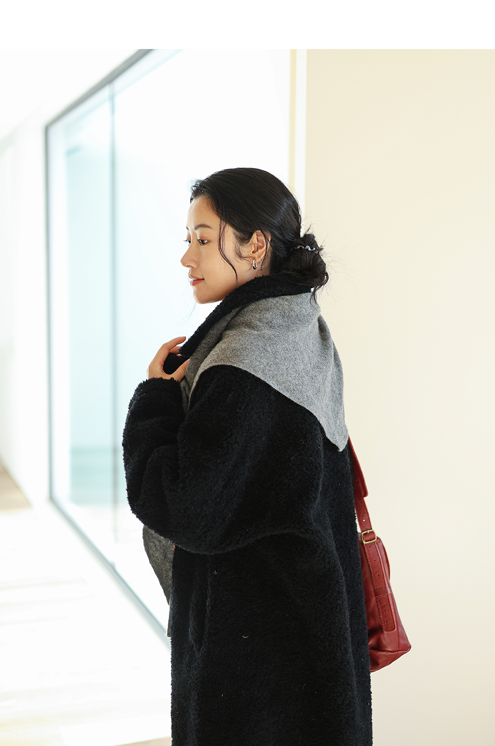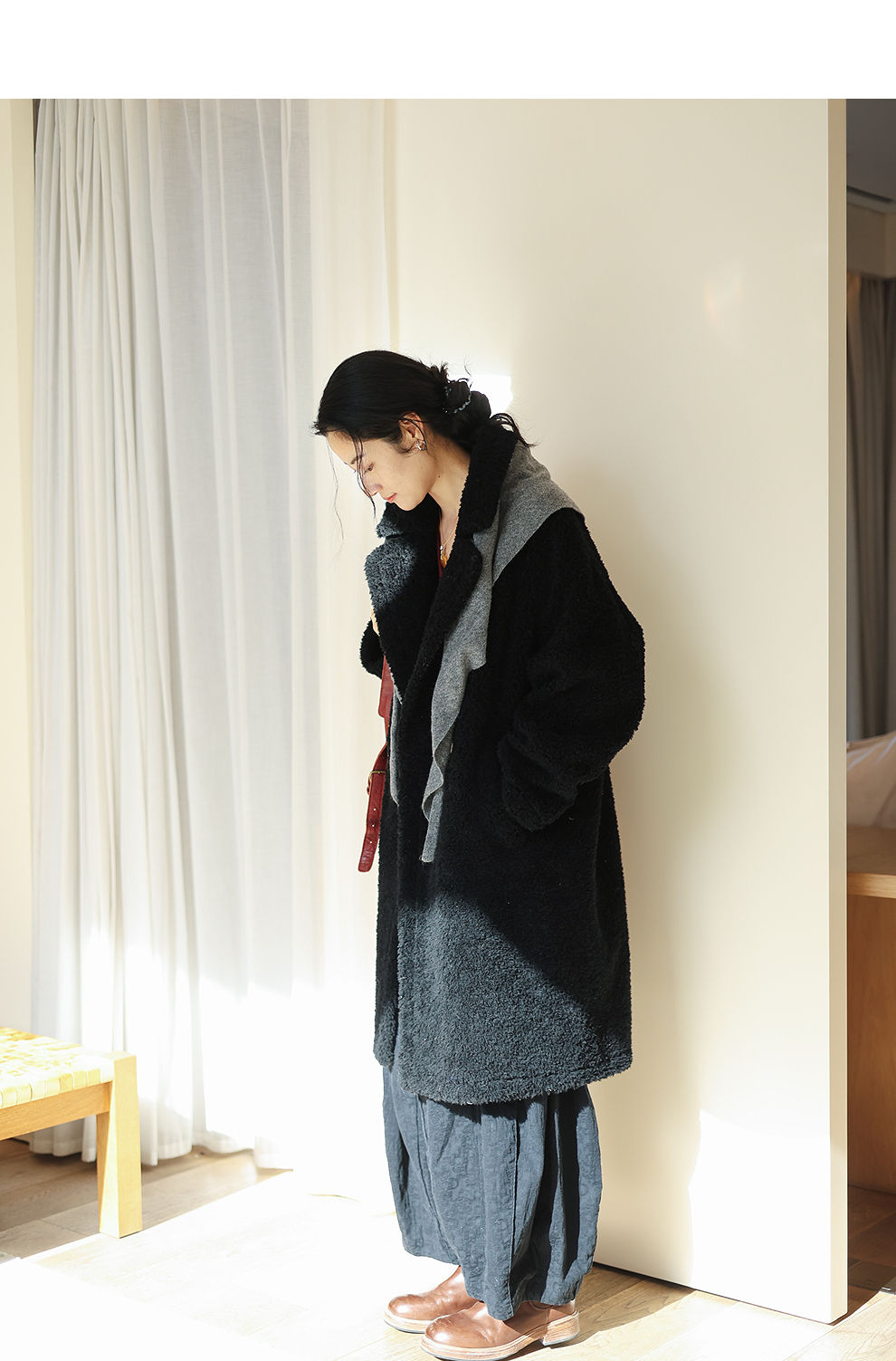 绽放879朵/纯羊毛外套新款气质羊羔毛帅气翻领长款加厚羊毛大衣女