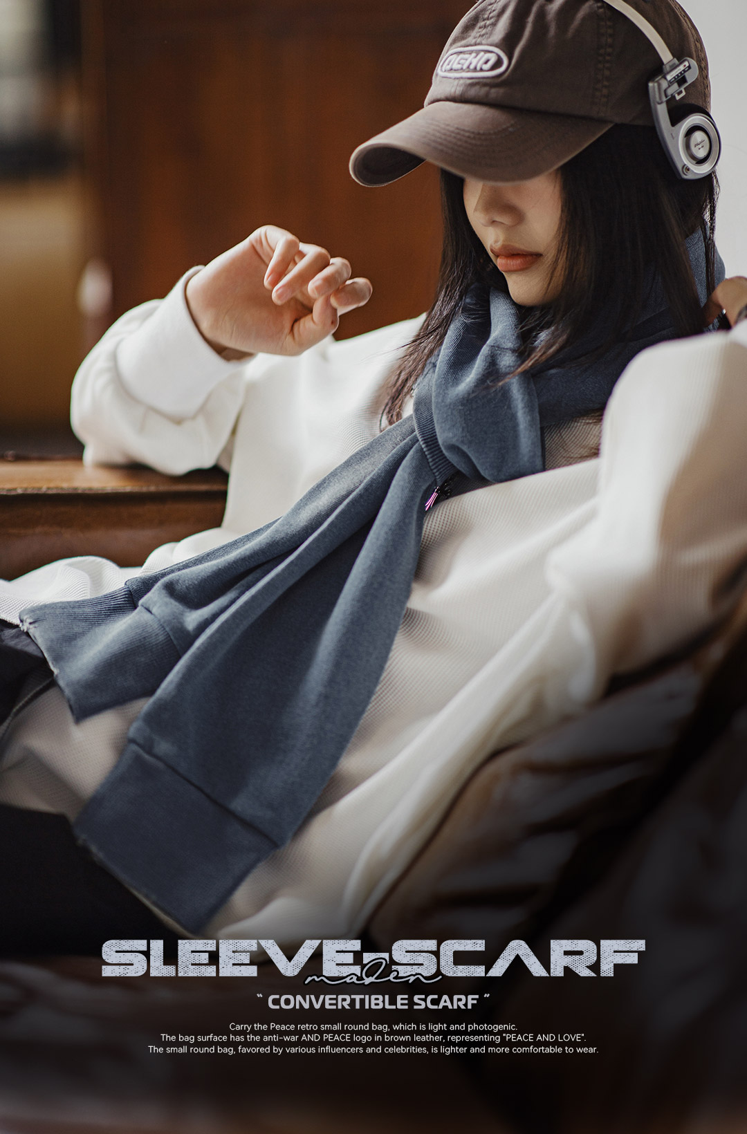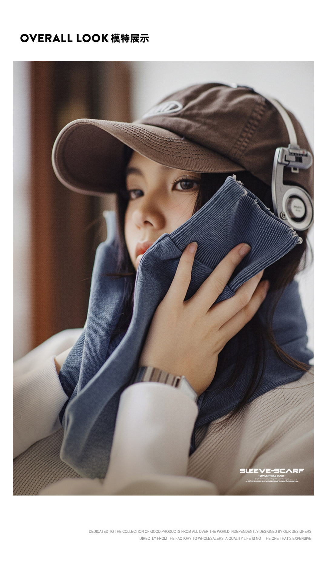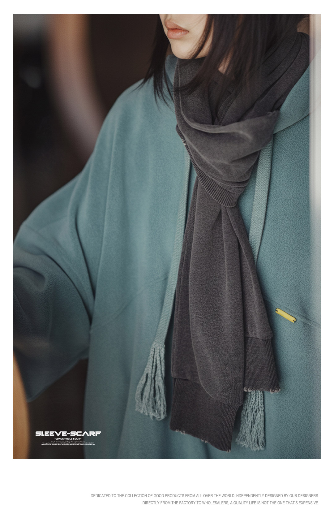 马登复古蓝色针织长款披肩围巾两用保暖护颈围脖外搭护肩女士秋冬