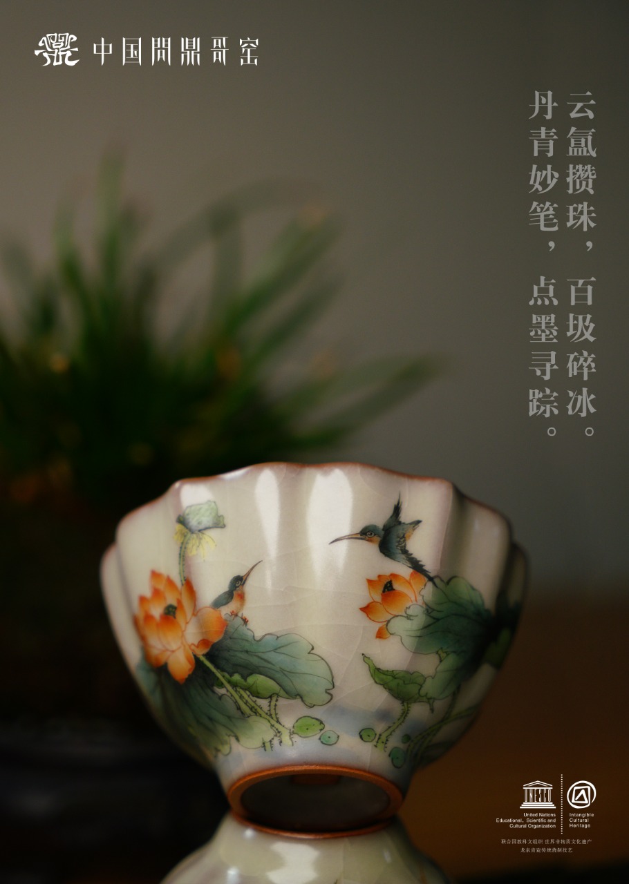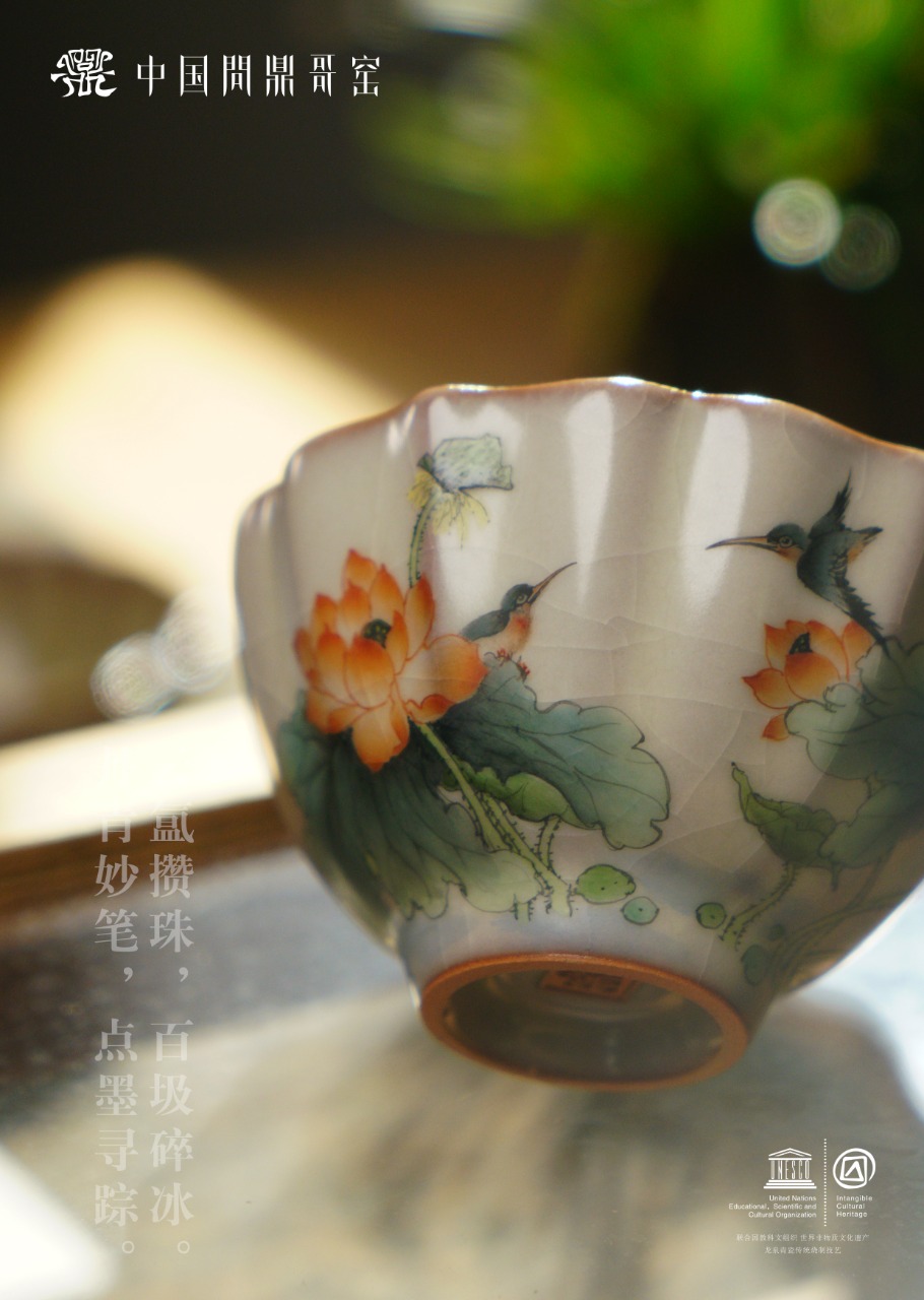 问鼎哥窑致巧款撷芳杯(莲蓬翠鸟)(缺货)
