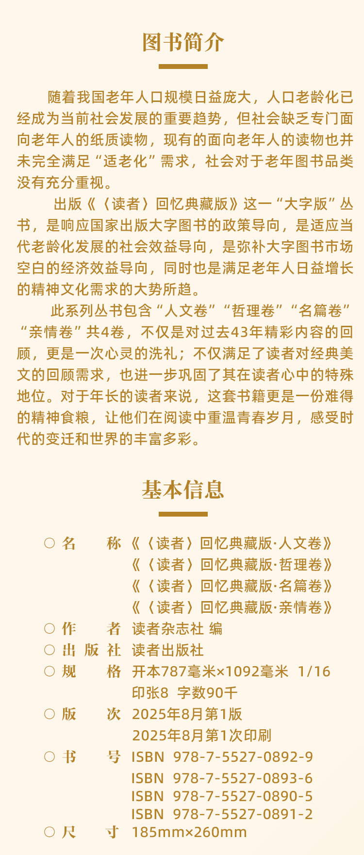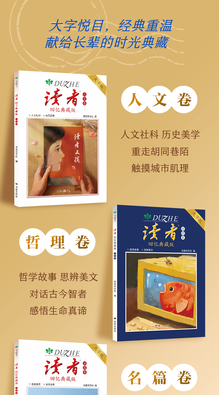上新 |《读者》回忆典藏版(全4卷) “大字版”字号更大更适合长辈阅读 单本/组合自由选购 读者出版社