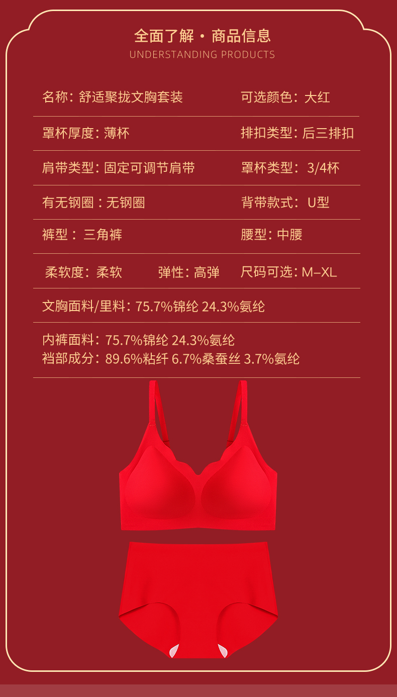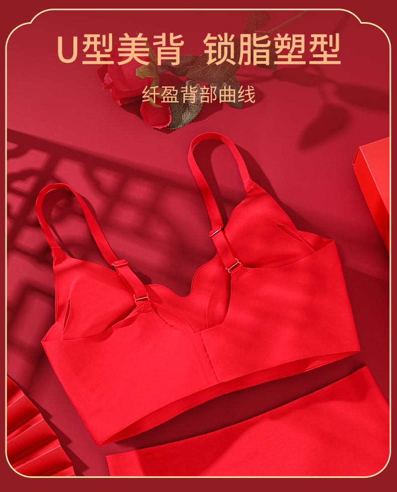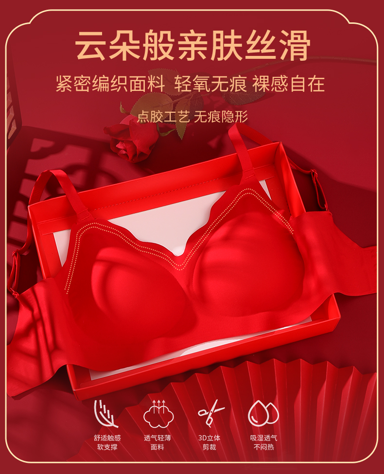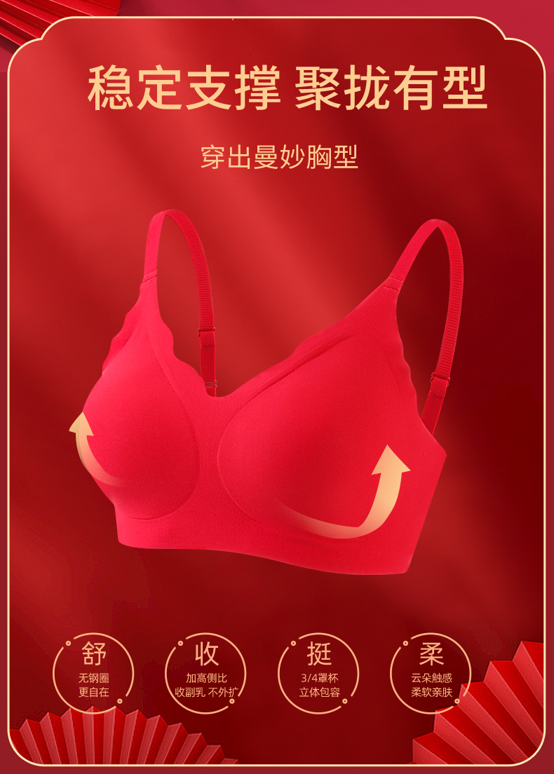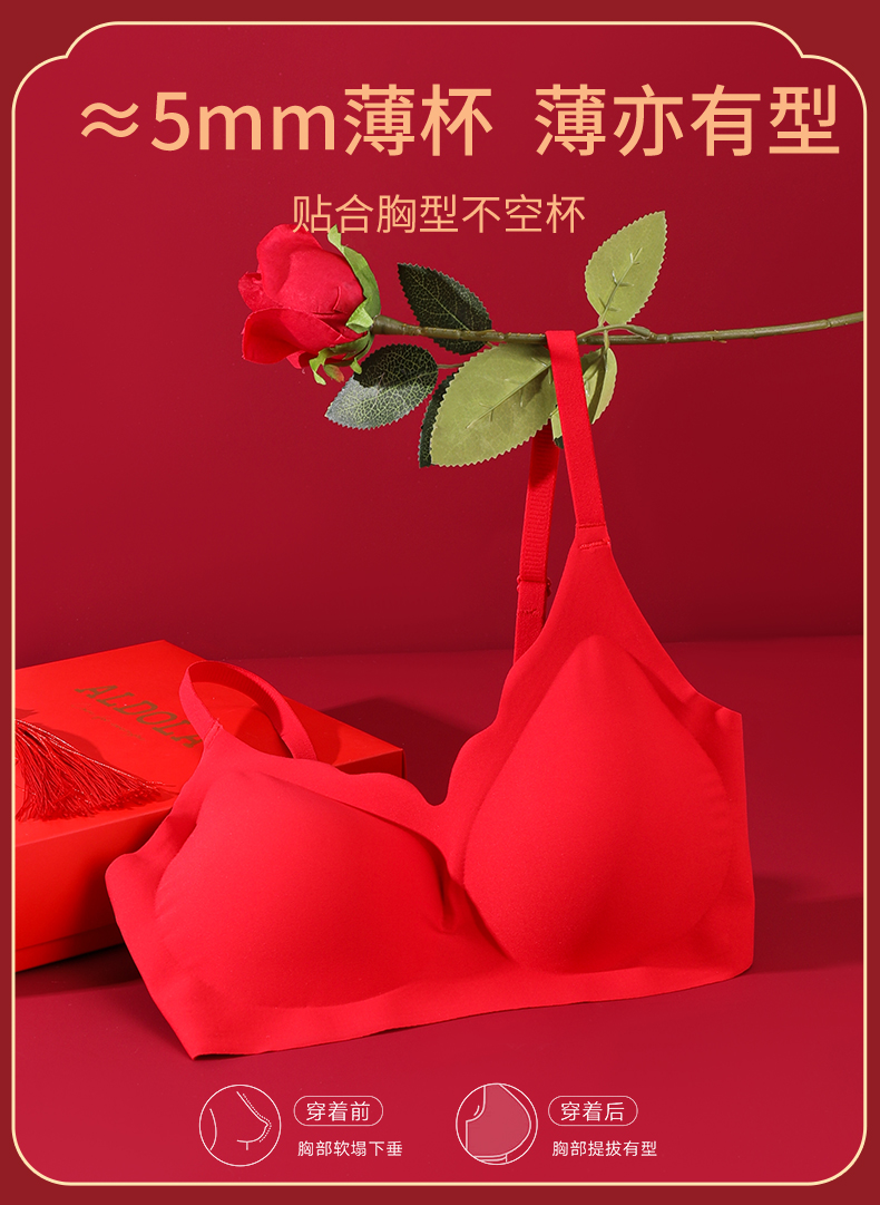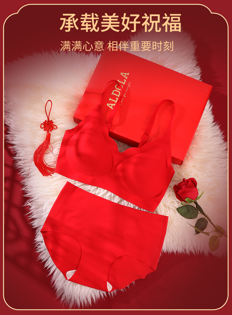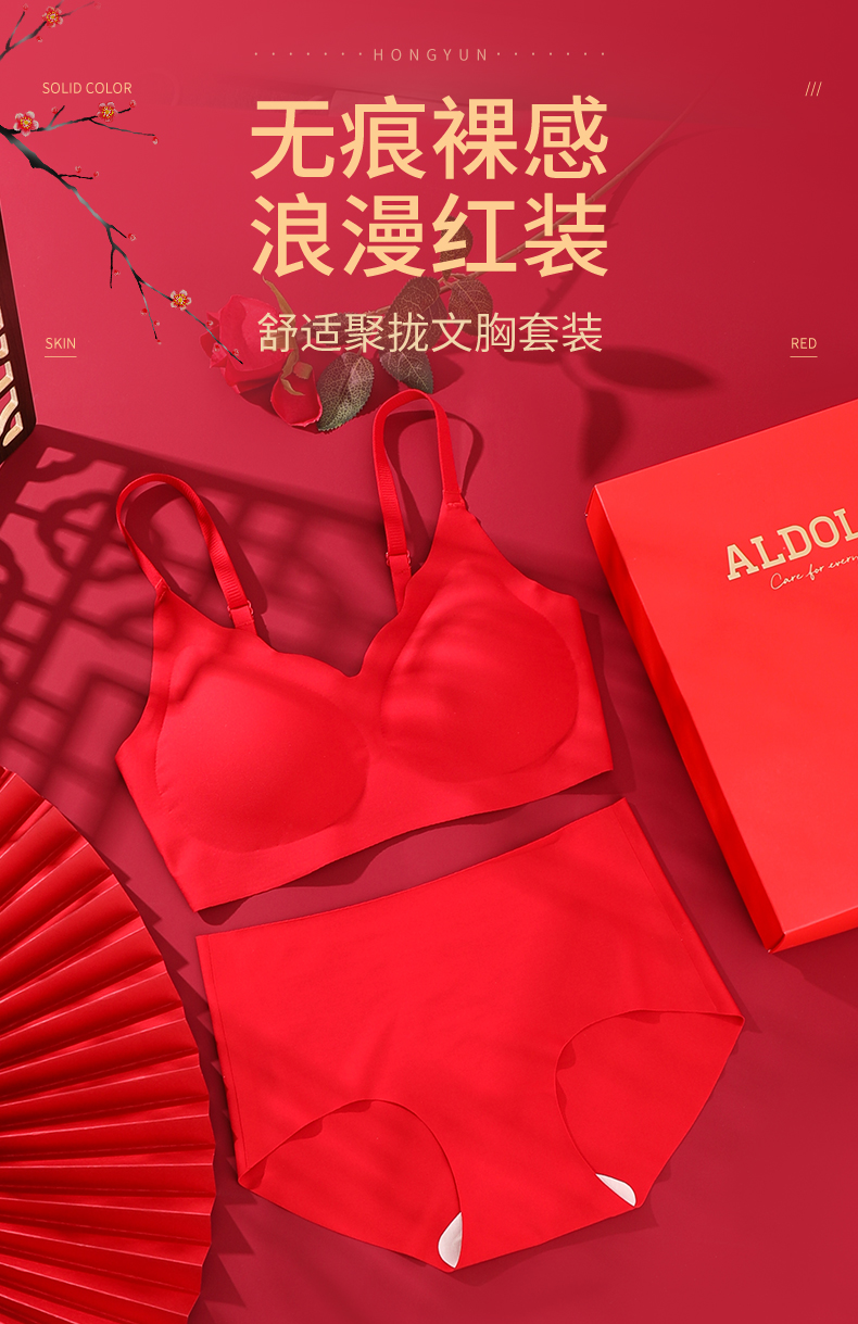 雅黛丽内衣女聚拢小胸红色结婚新娘本命年无钢圈文胸套装无痕胸罩