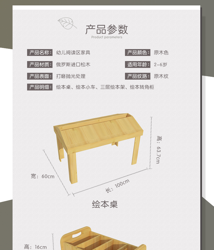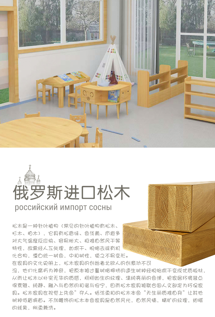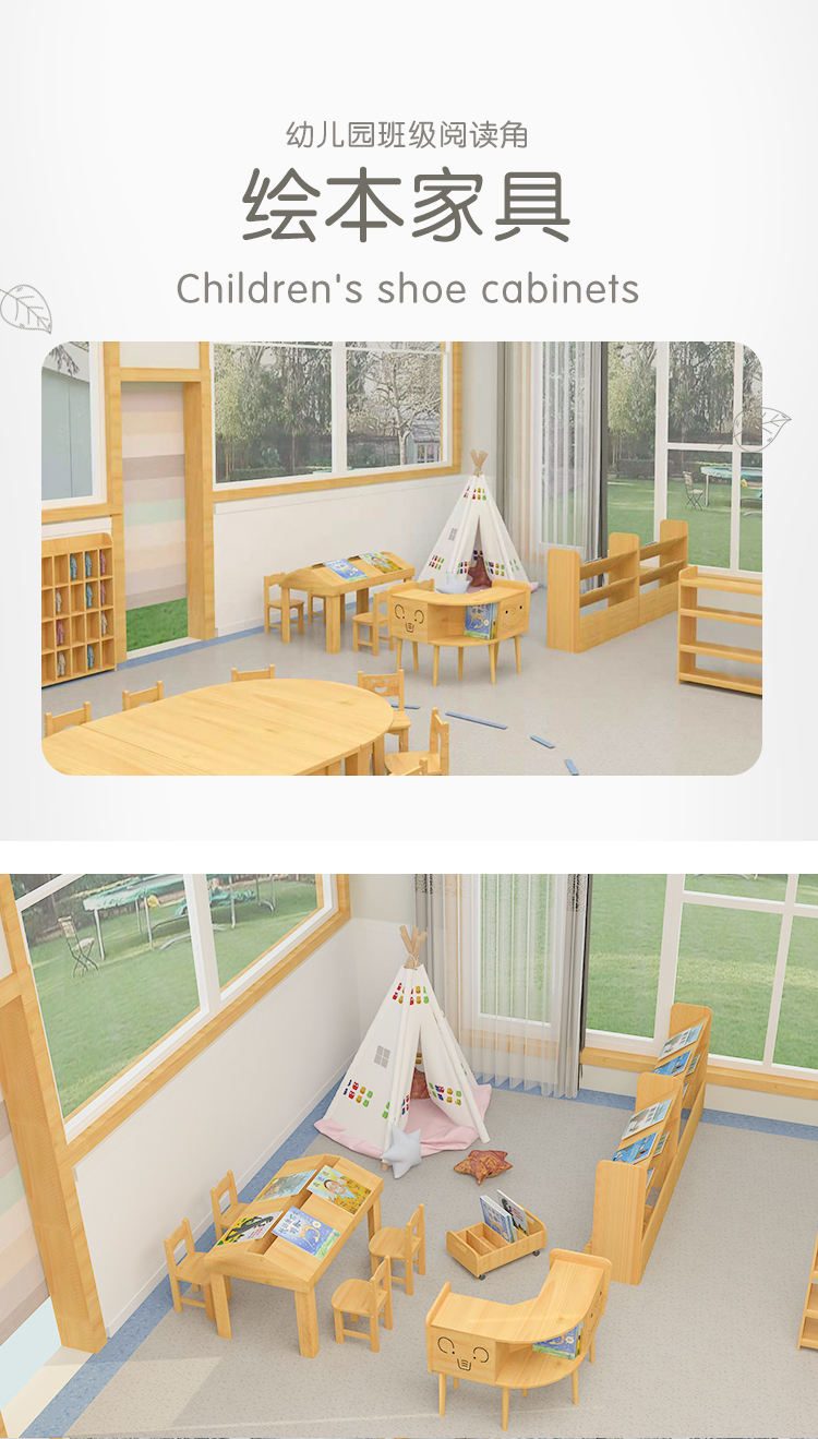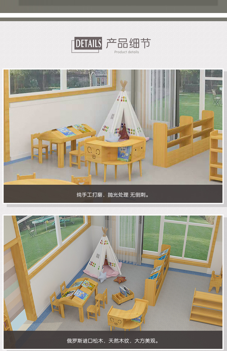 园长之家博苑绘本阅读区实木桌原木转角柜创意松木儿童绘本区家具