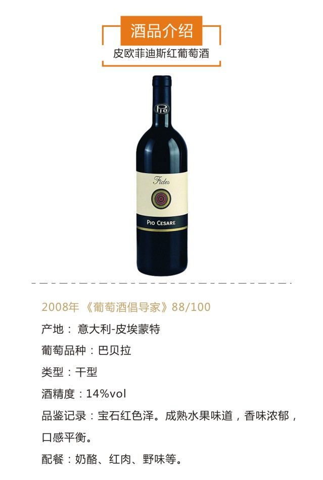 桃乐丝皮欧菲迪斯巴贝拉红葡萄酒Pio Cesare "Fides"Barbera D'Alba(2008)