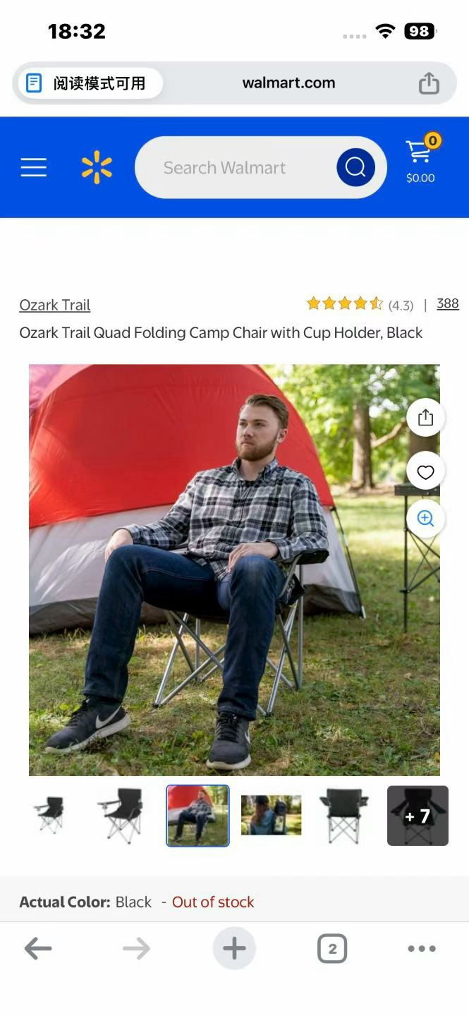 出口老美沃尔玛公司单 只有黑色 加厚钢管 承重250磅 质量非常好的一款户外椅