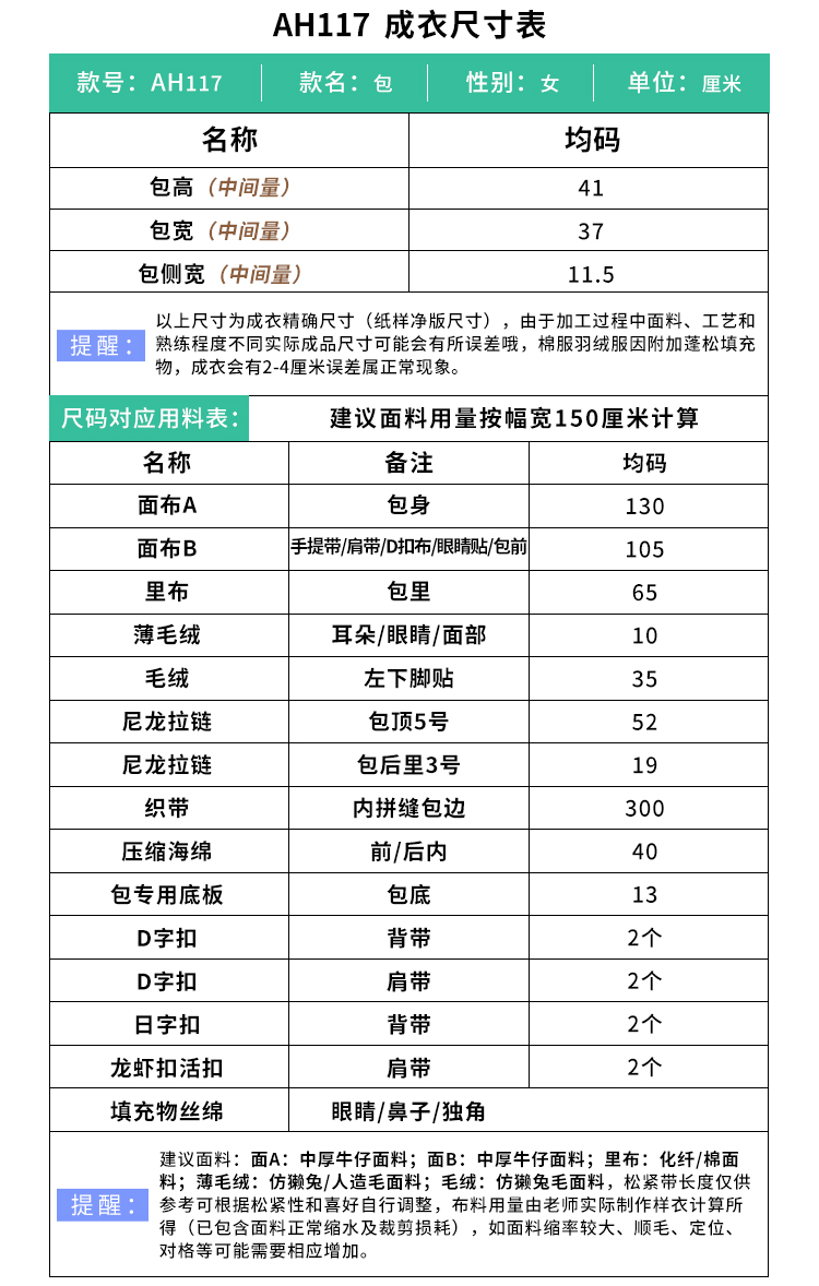 裁缝学苑AH117新款国潮醒狮毛绒双肩包纸样女装大容量百搭背包样板图纸