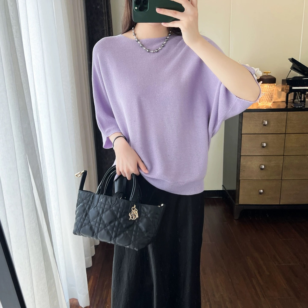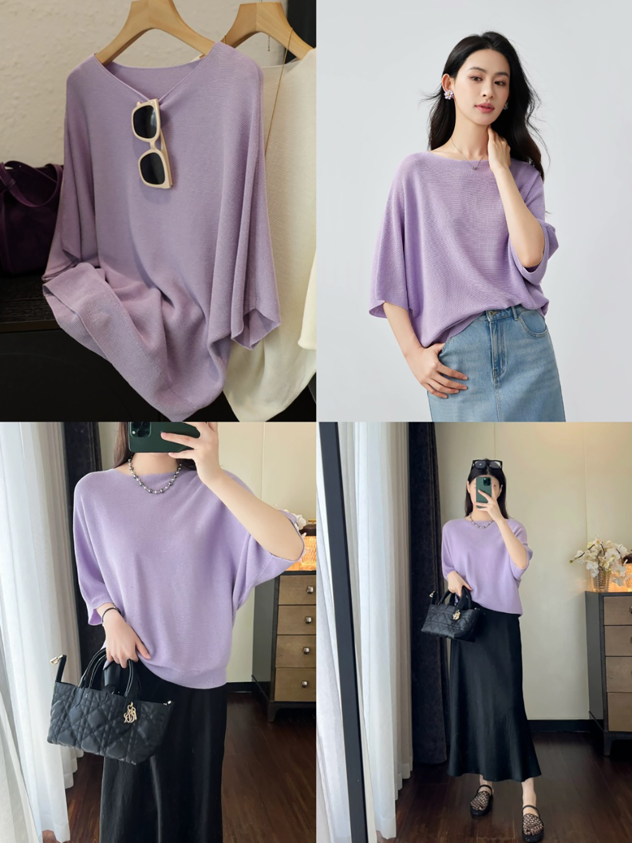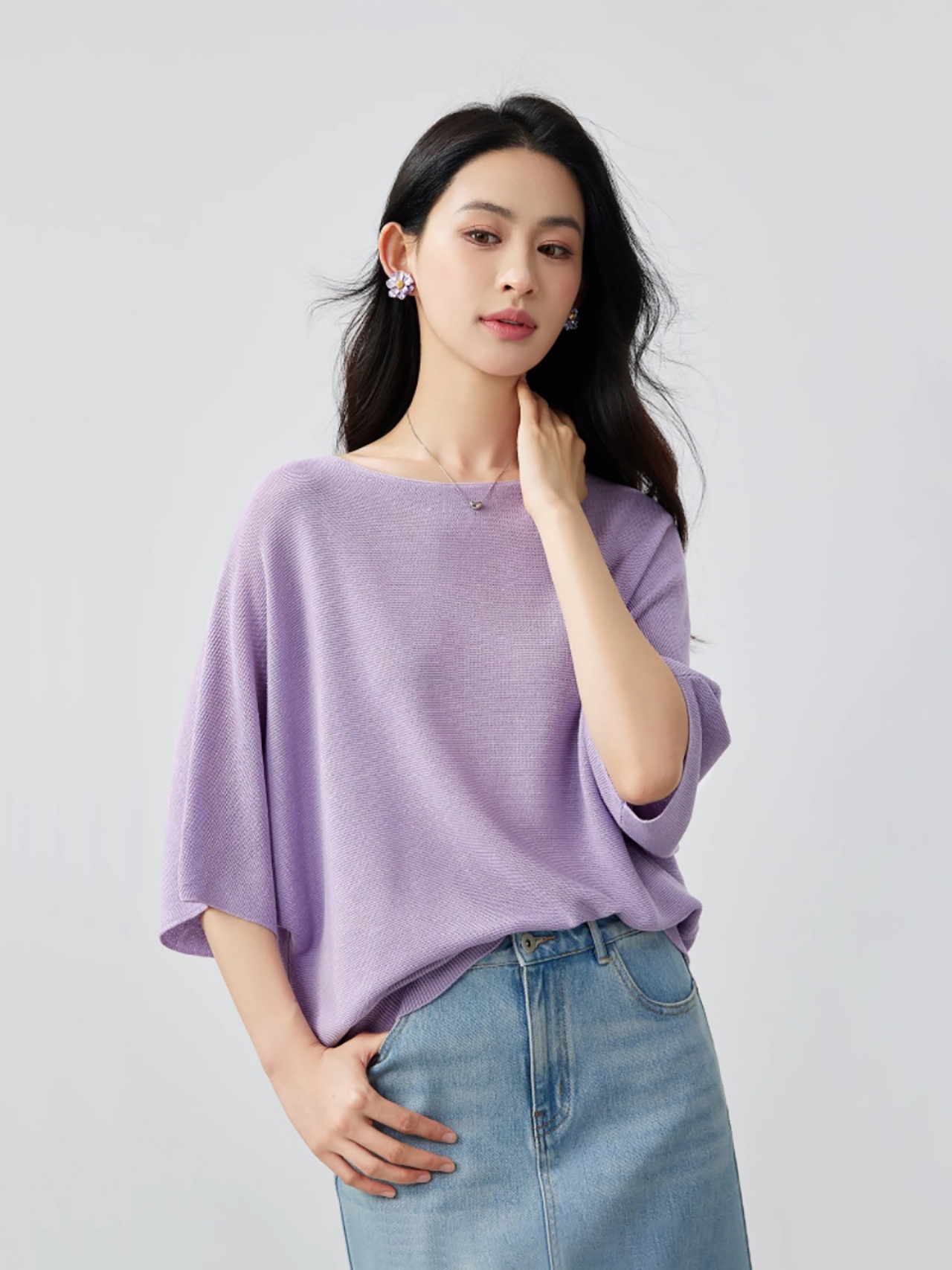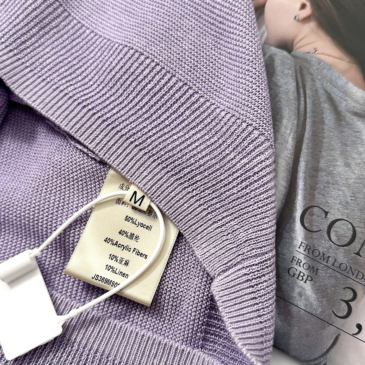 今天就给大家介绍一款,香芋紫一字领针织衫。