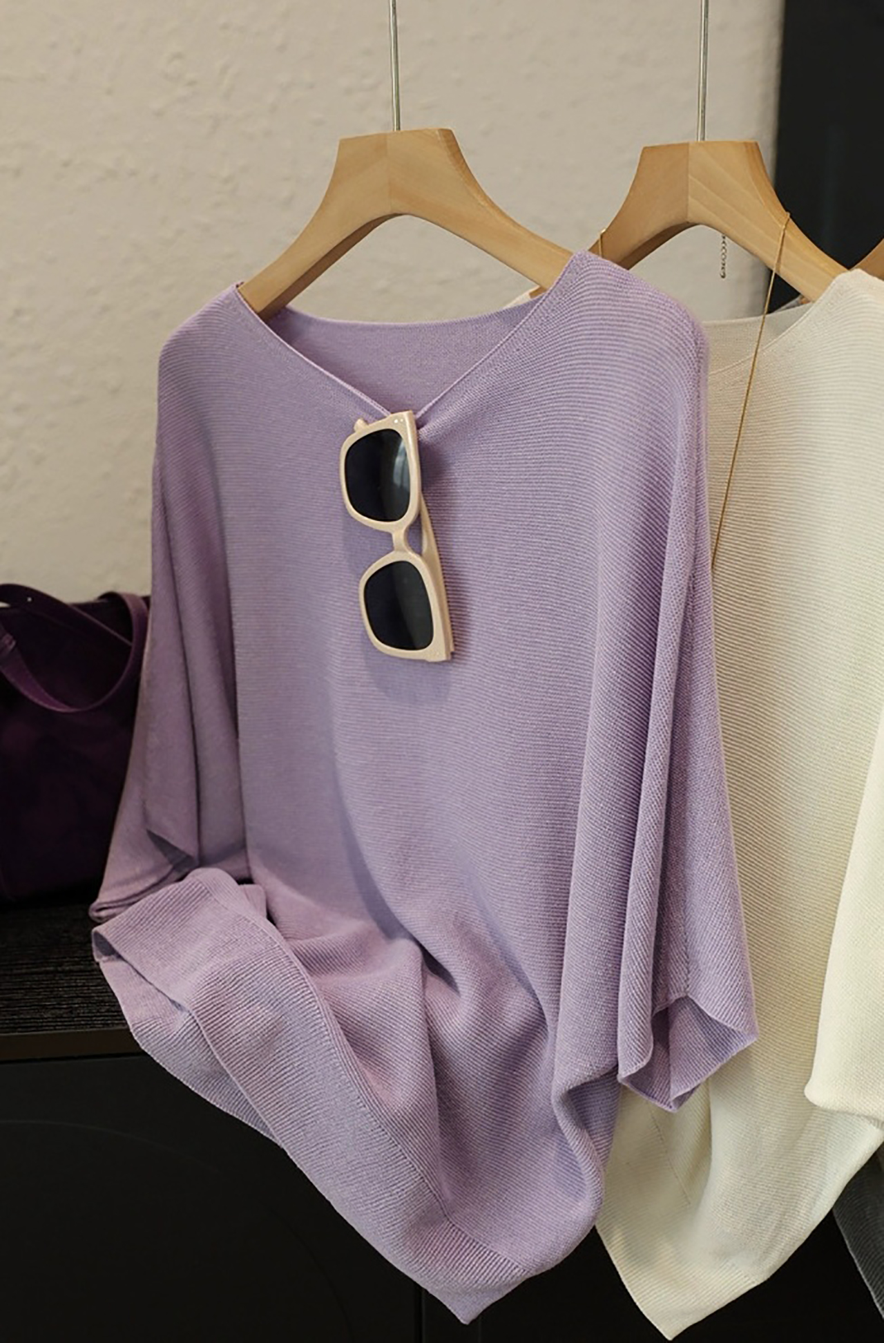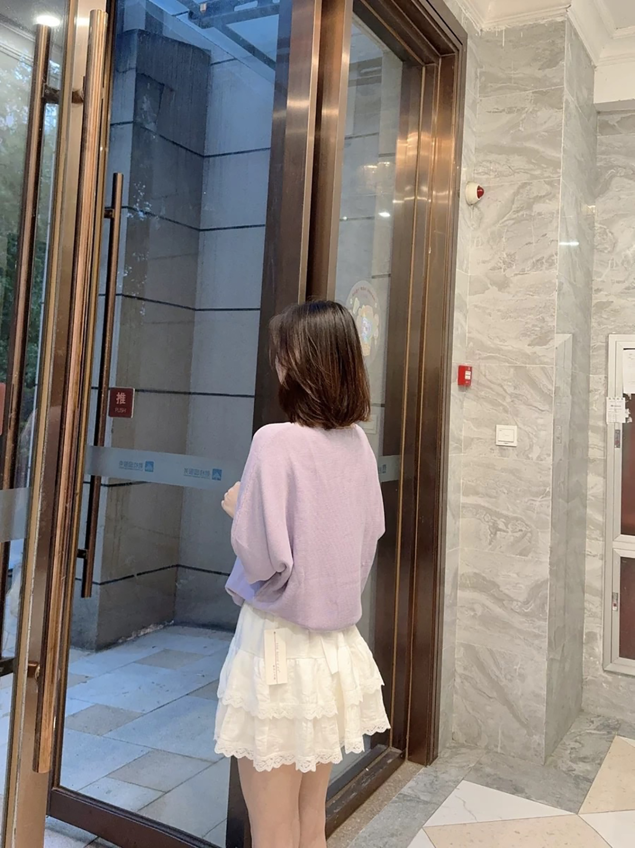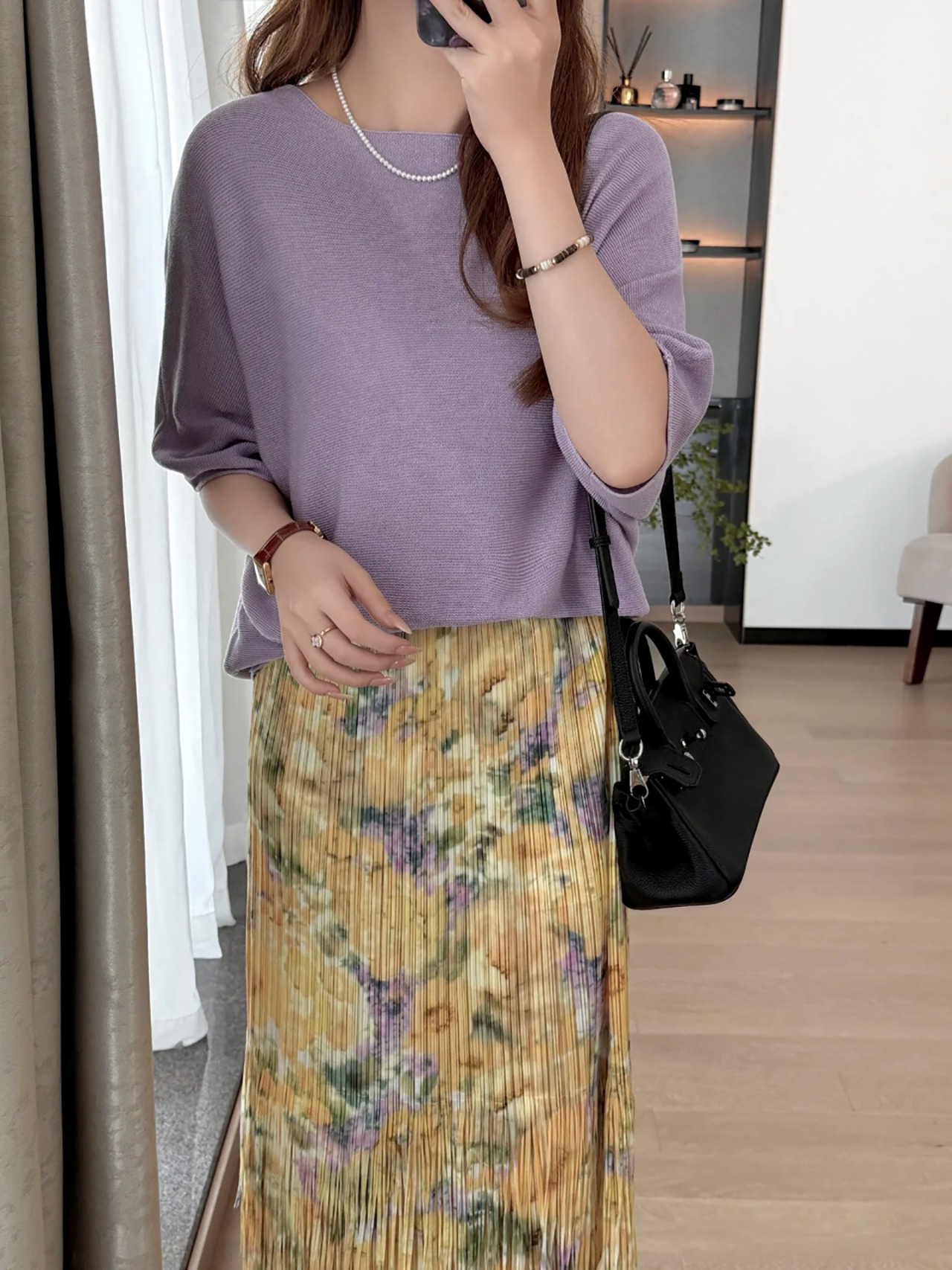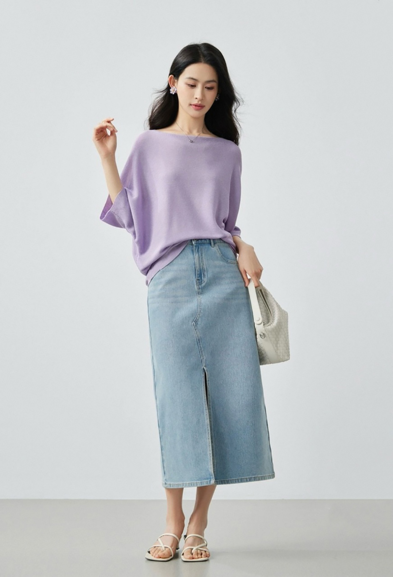 今天就给大家介绍一款,香芋紫一字领针织衫。