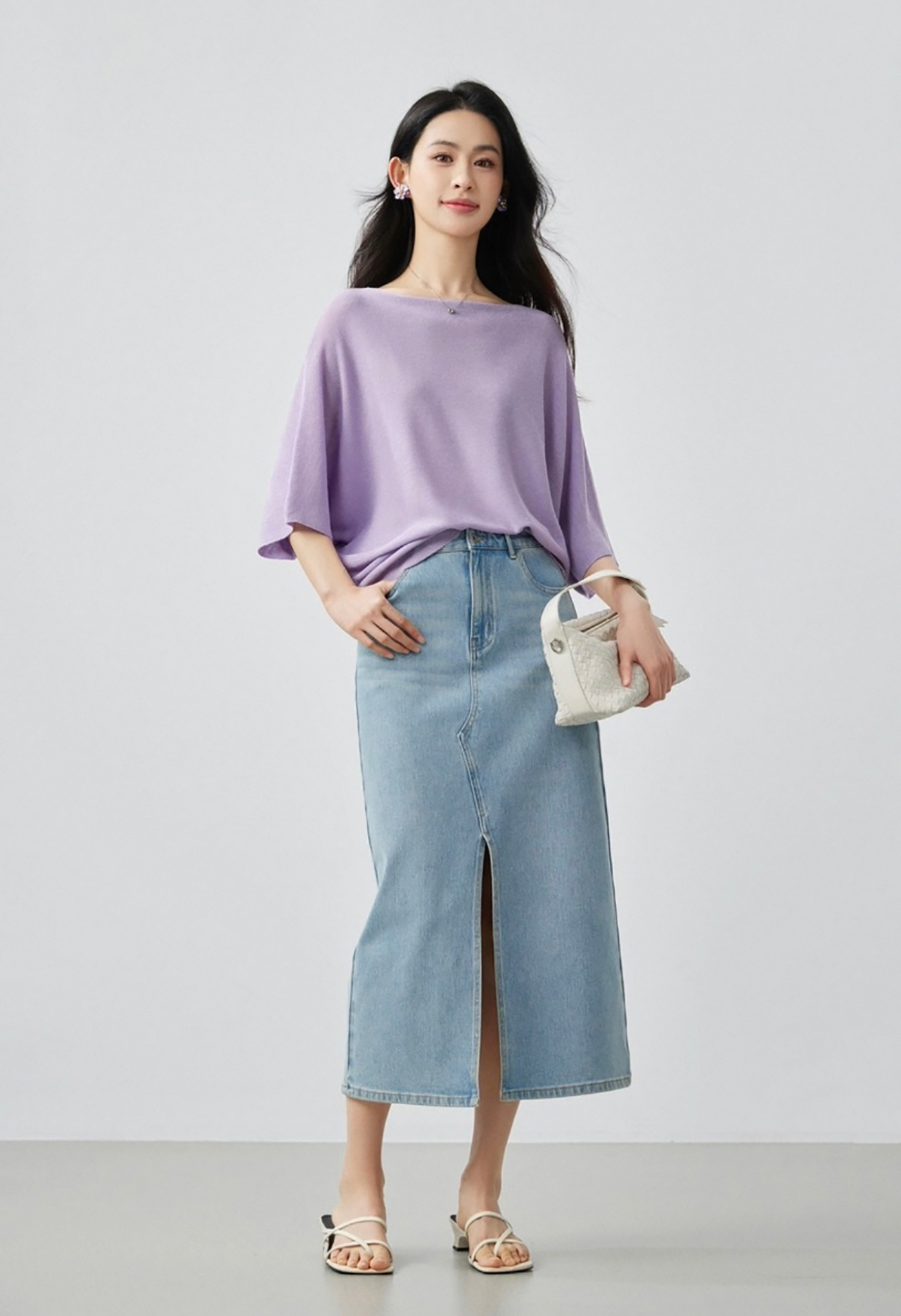 与牛仔蓝相配,既有着淡紫色的梦幻与浪漫,又不失蓝色的宁静与复古的味道,它们的组合给人一种清雅干净的氛围,很治愈。