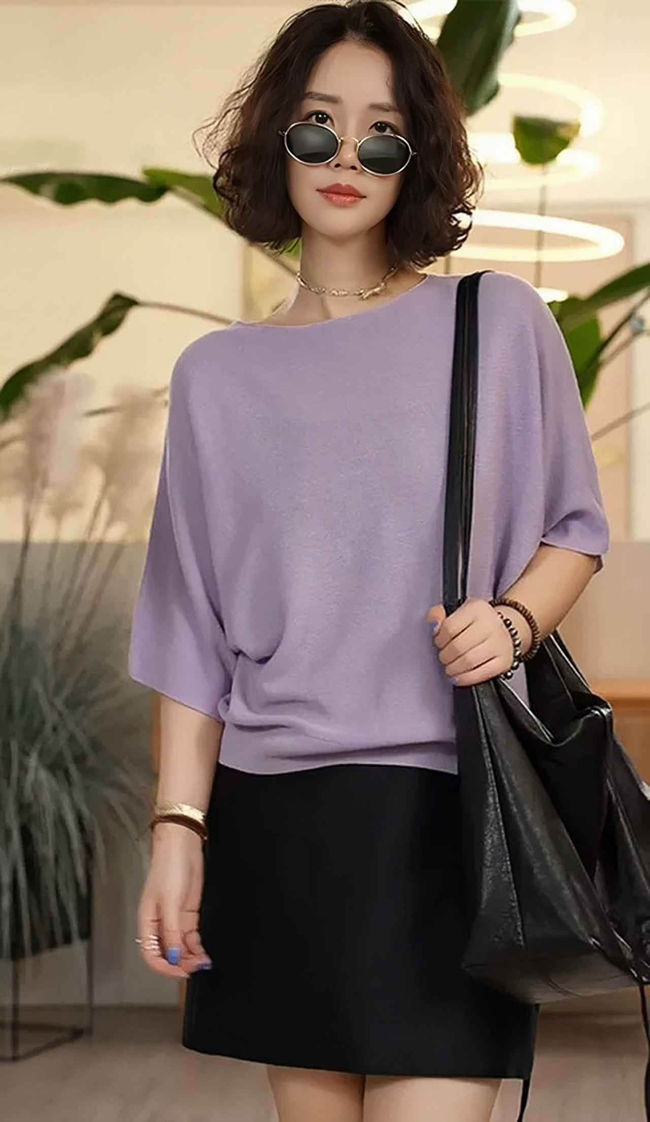 蝙蝠袖型,藏肉于无形!宽松袖笼可以包容“拜拜肉”,开阔袖口又增添几分慵懒感,抬手转身毫无束缚。