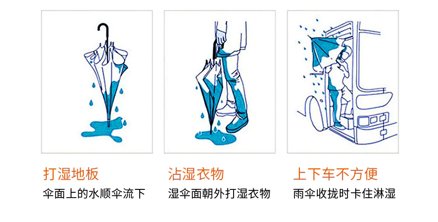 下车时,车门只需打开一点空隙,人未下车伞先开。