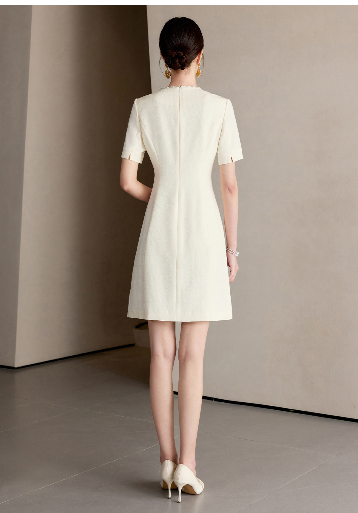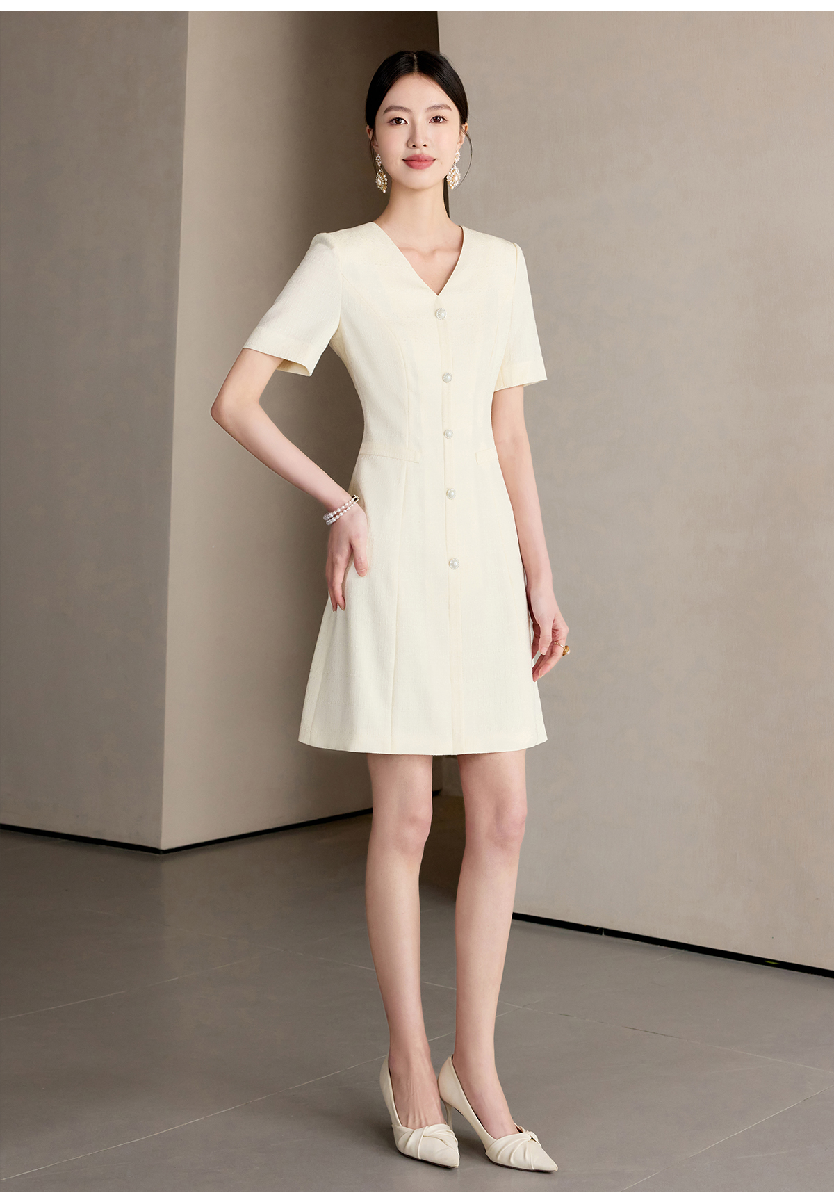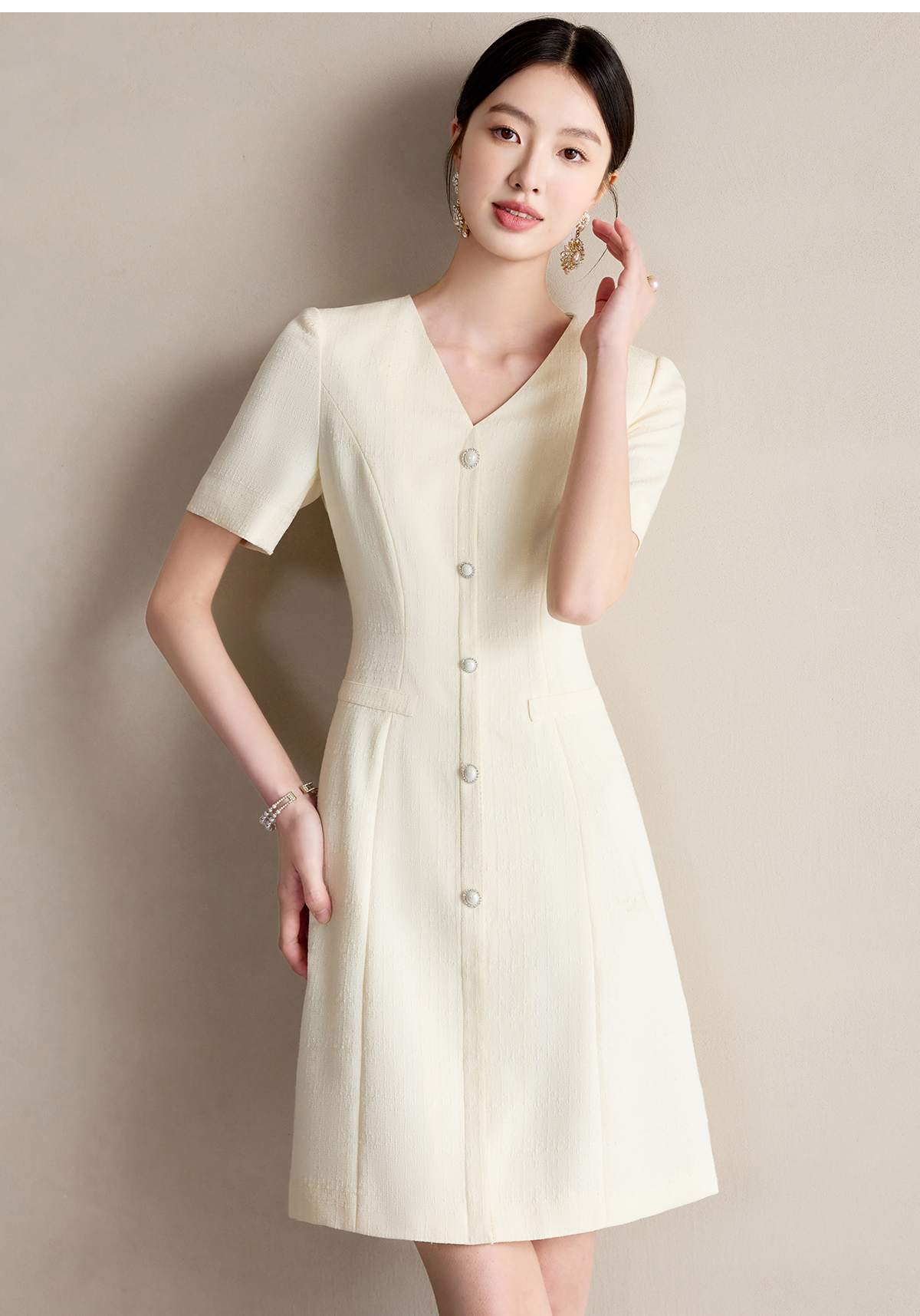 艾尚臣米色连衣裙女简约高级感气质显瘦裙子重要场合职业连身裙夏