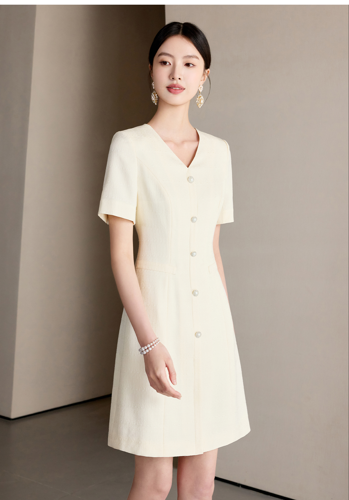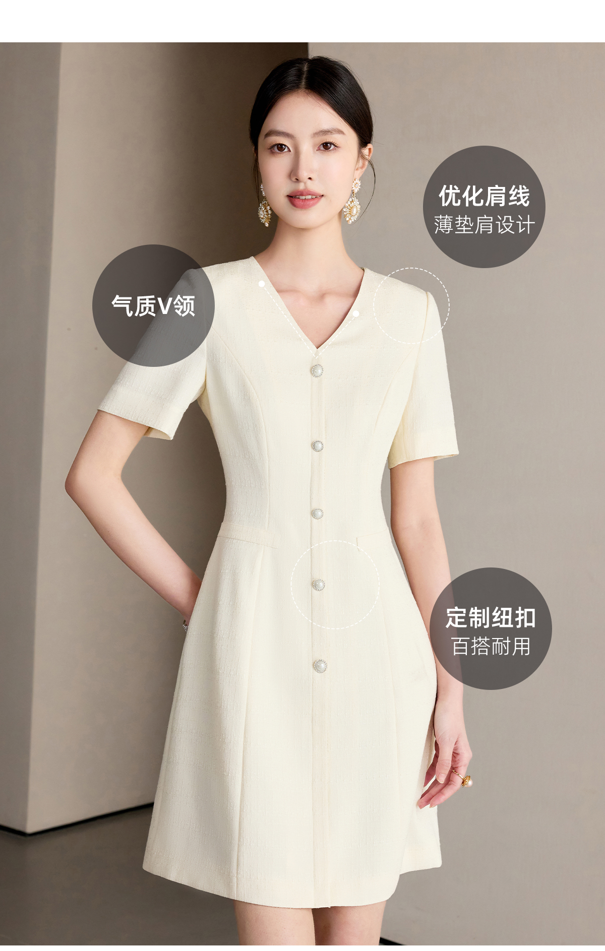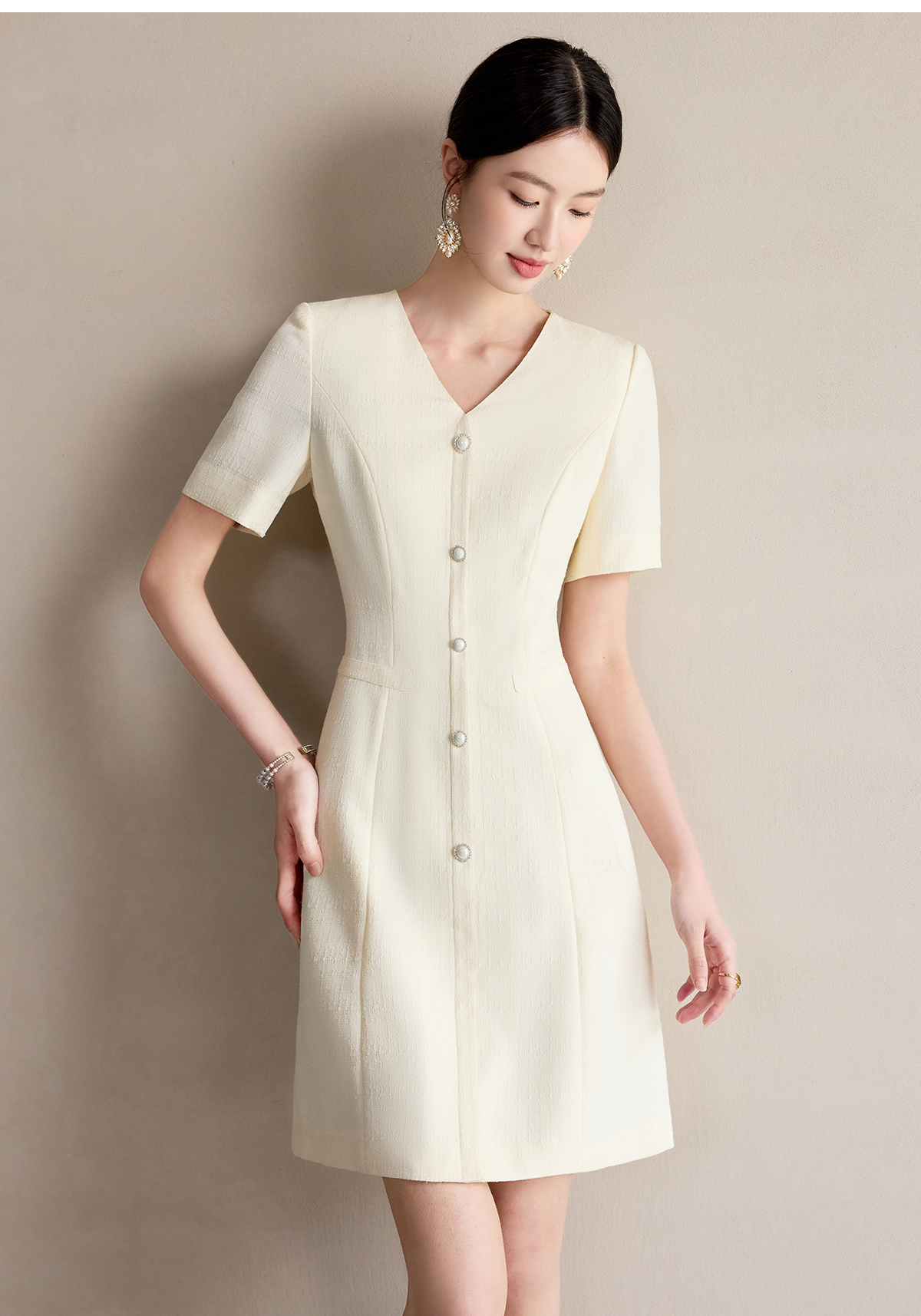 艾尚臣米色连衣裙女简约高级感气质显瘦裙子重要场合职业连身裙夏