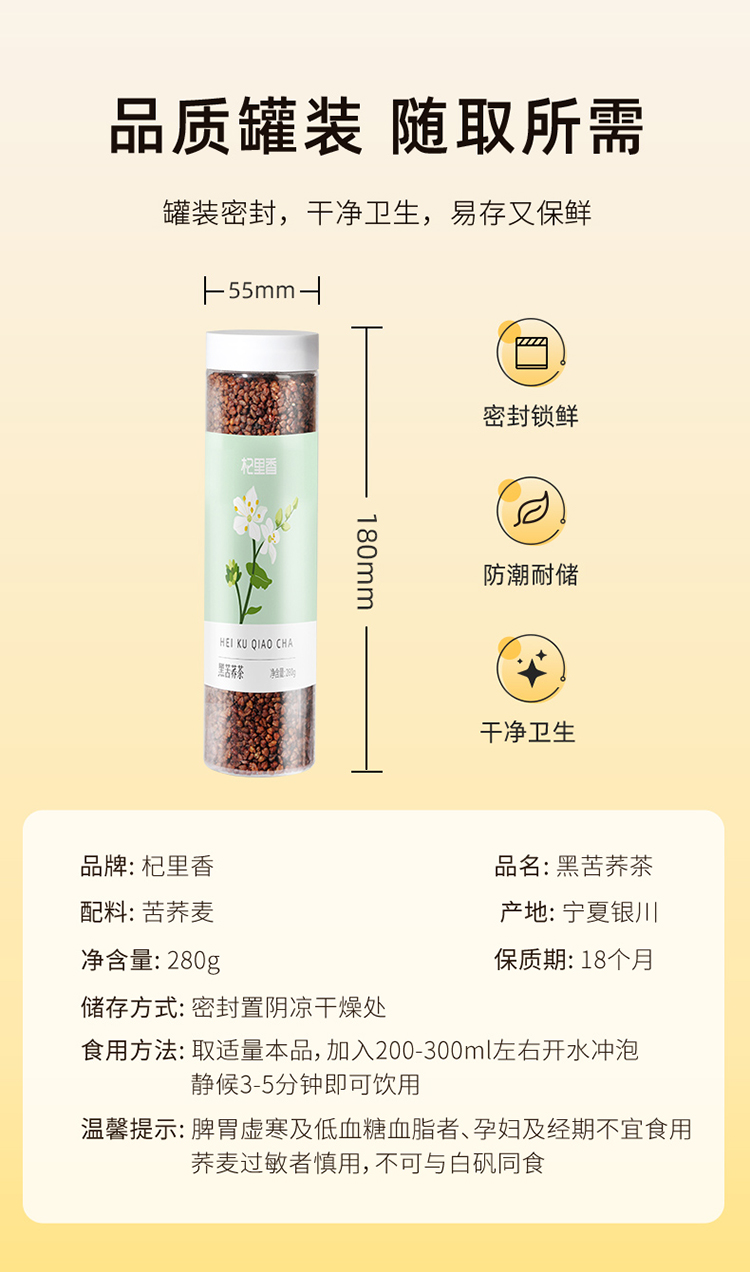 【冬季滋补】【杞里香黑珍珠黑苦荞茶280g】四川大凉山荞麦罐装健康茶饮 高山种植 全胚芽麦粒