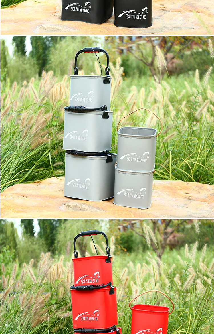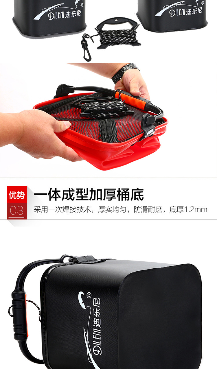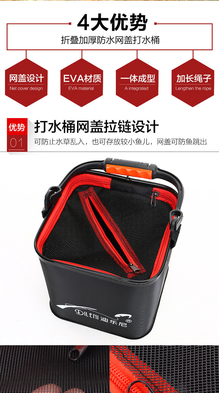 带绳打水桶钓鱼折叠桶 网盖手提鱼桶 装鱼桶带网桶渔具 xv21