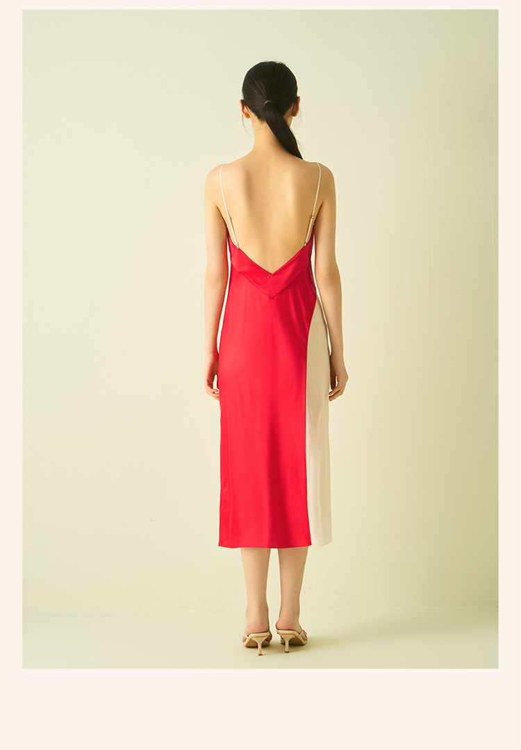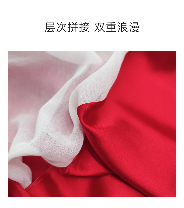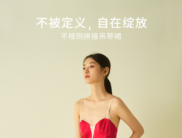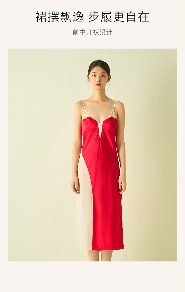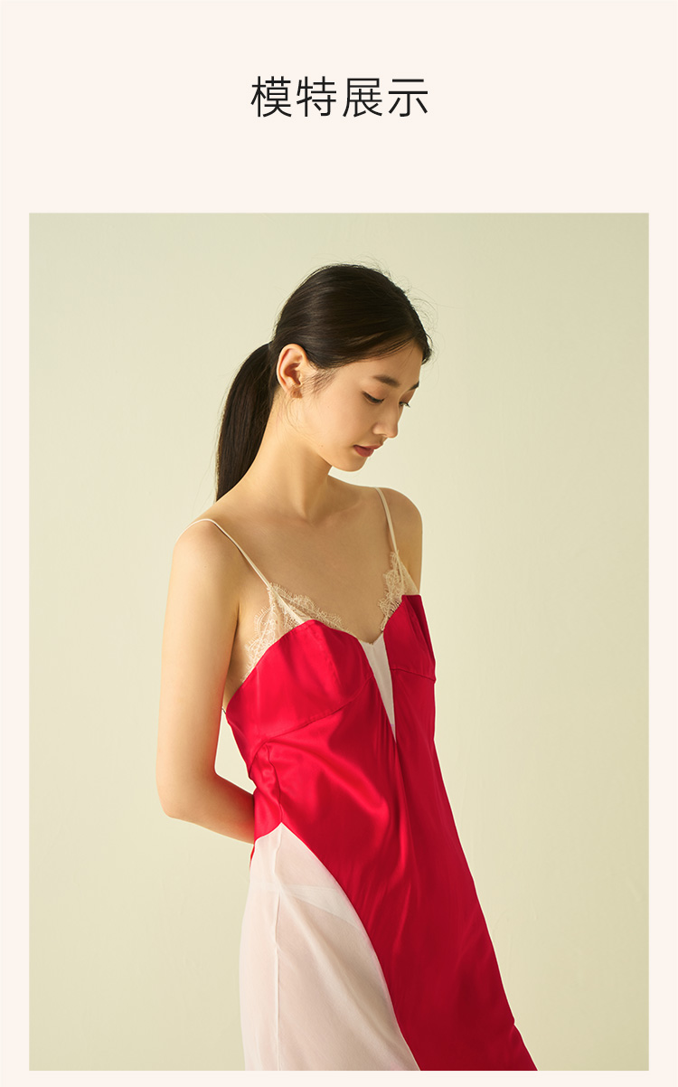 桑罗蕾丝拼接撞色吊带裙收腰派对礼服裙睡裙桑蚕丝