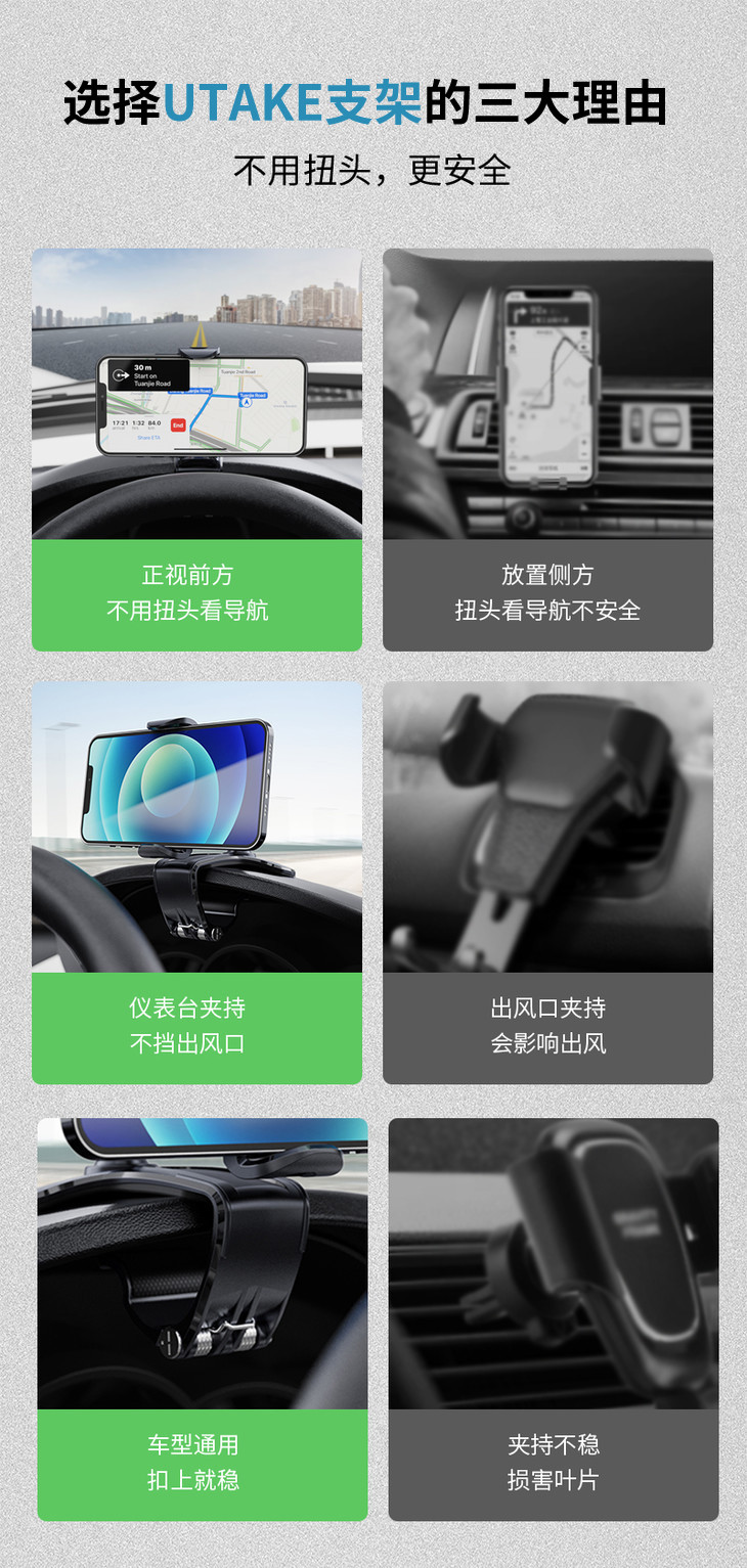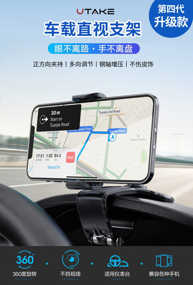 【火爆亚马逊,导航不低头】Utake车载直视支架第四代升级款,眼不离路,手不离盘,安心驾驶!