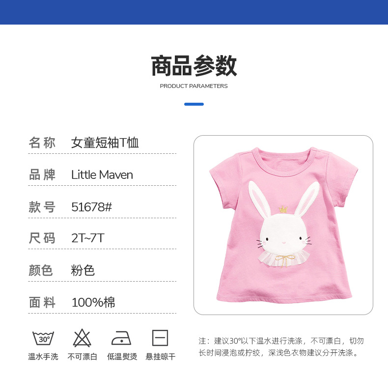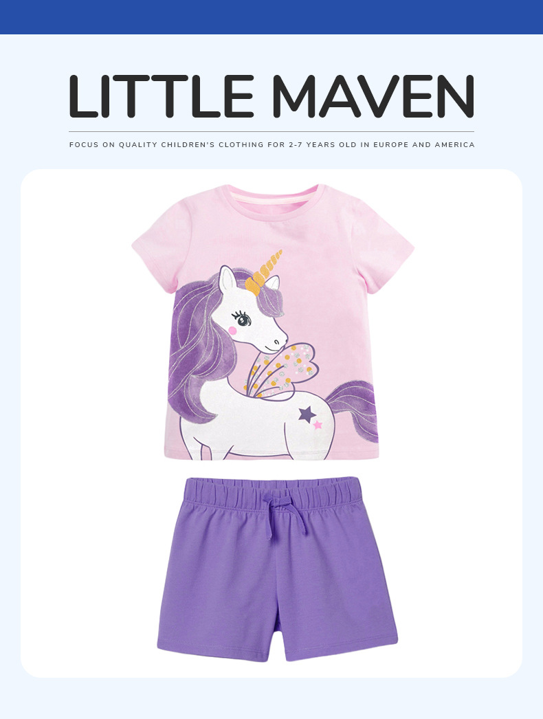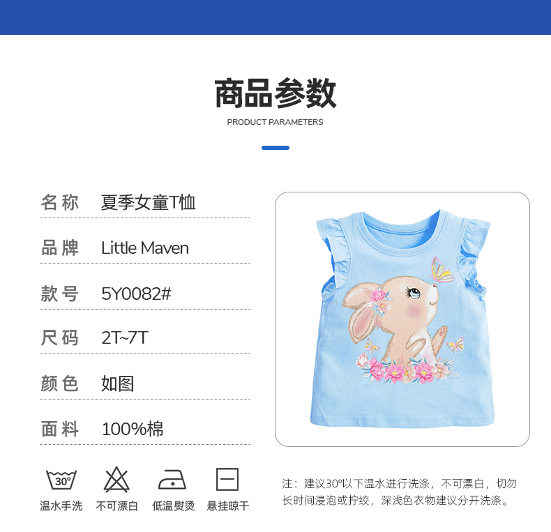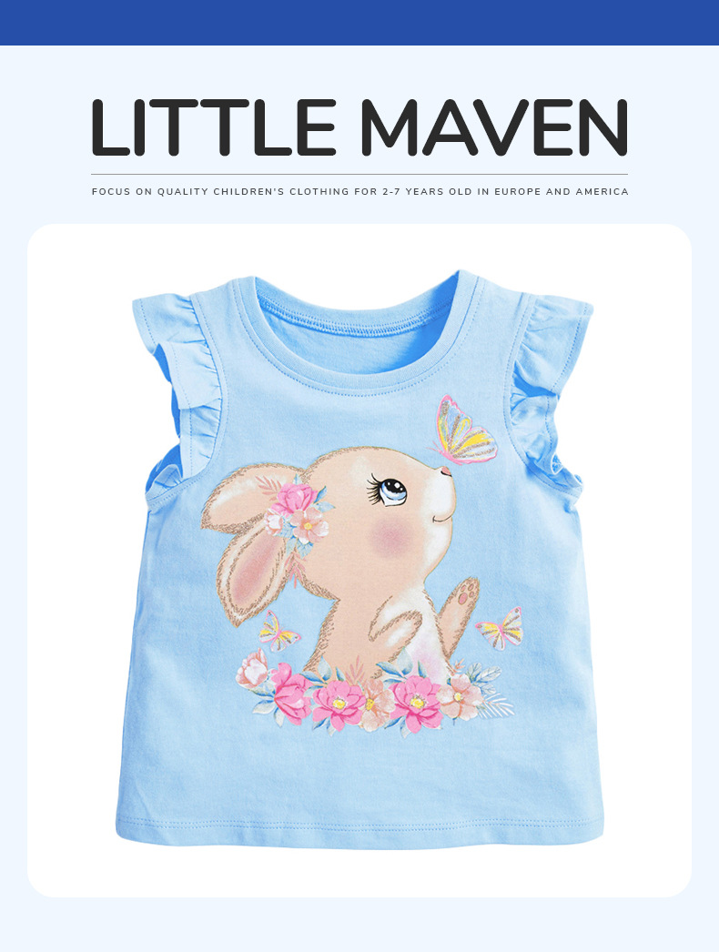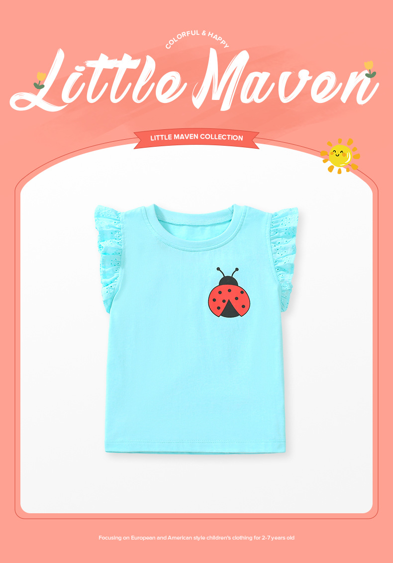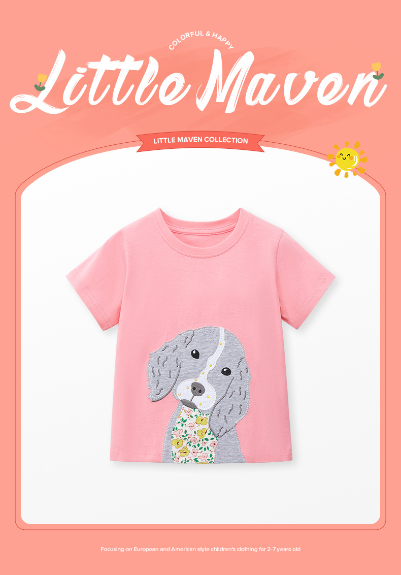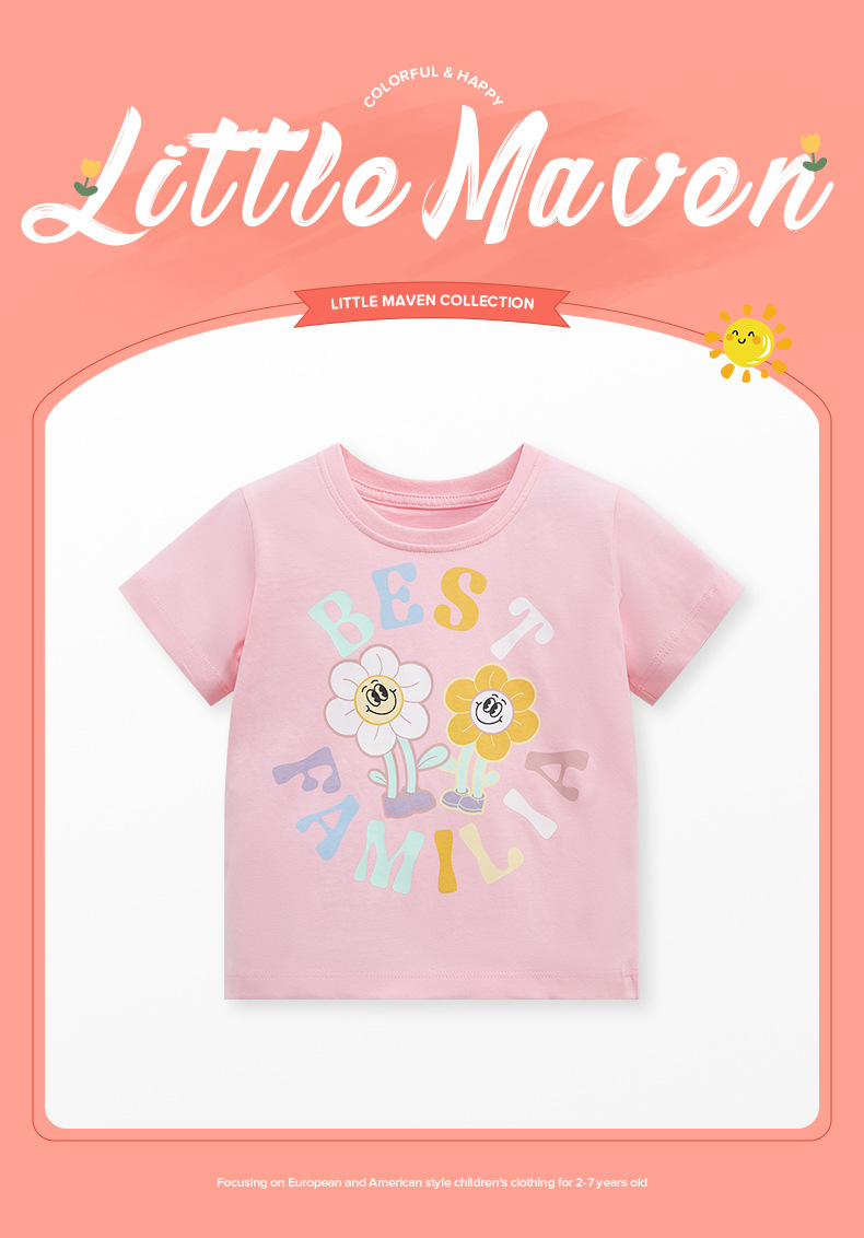 【12款!夏日穿搭不重样】Little maven儿童t恤欧美童装夏季新款女童t恤针织可爱棉质打底衫短袖