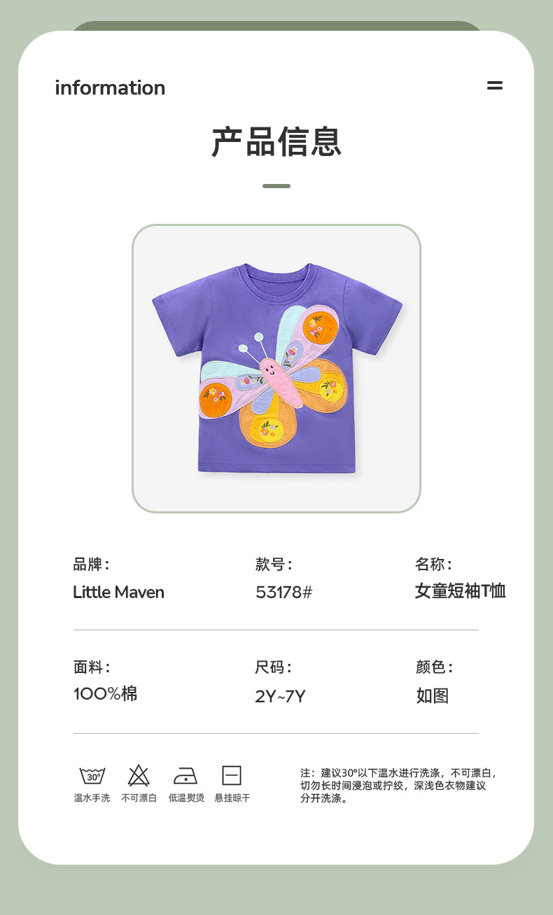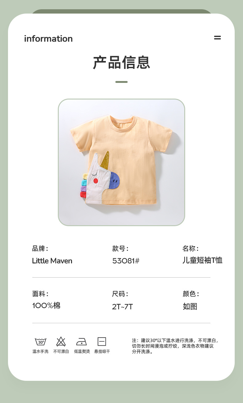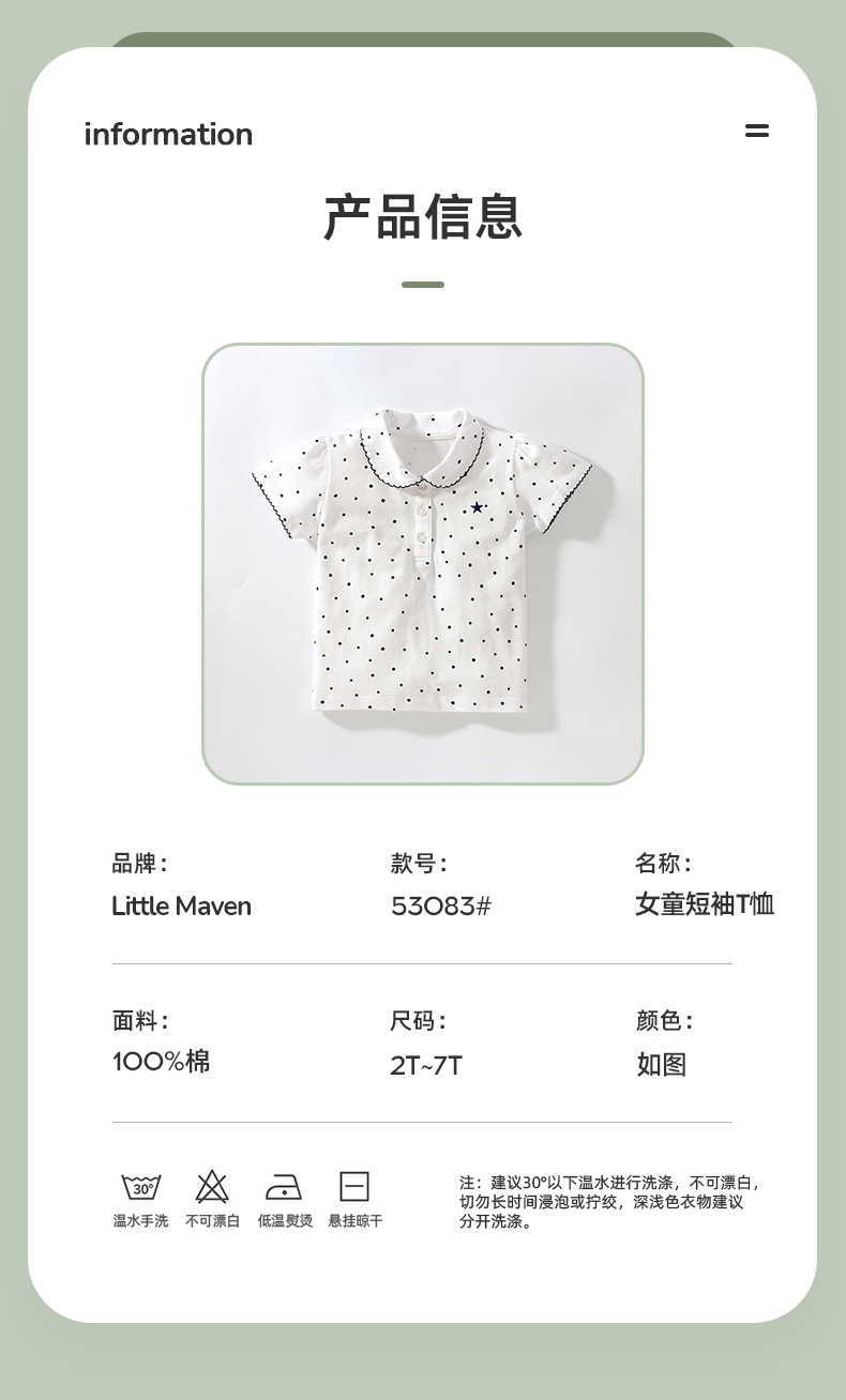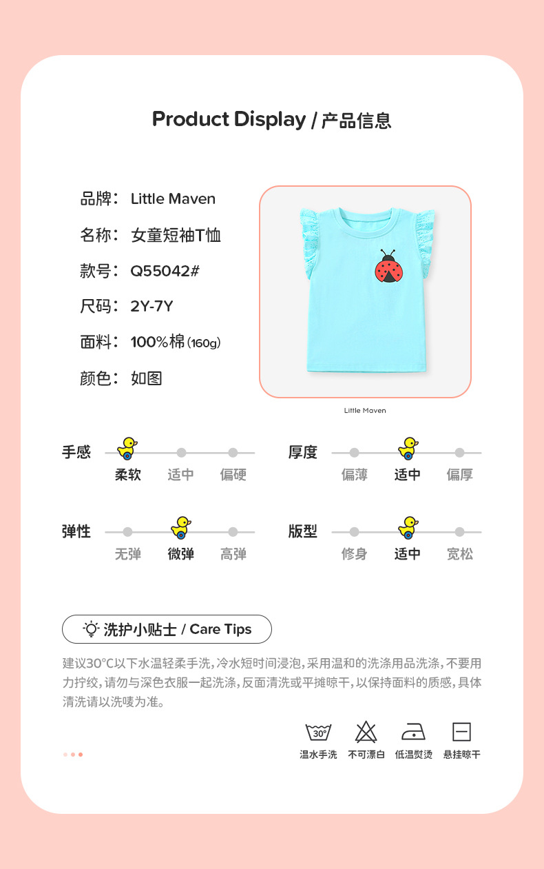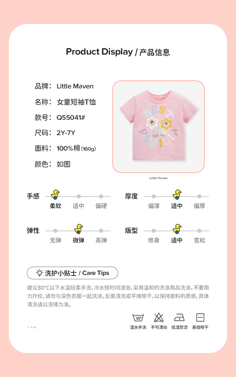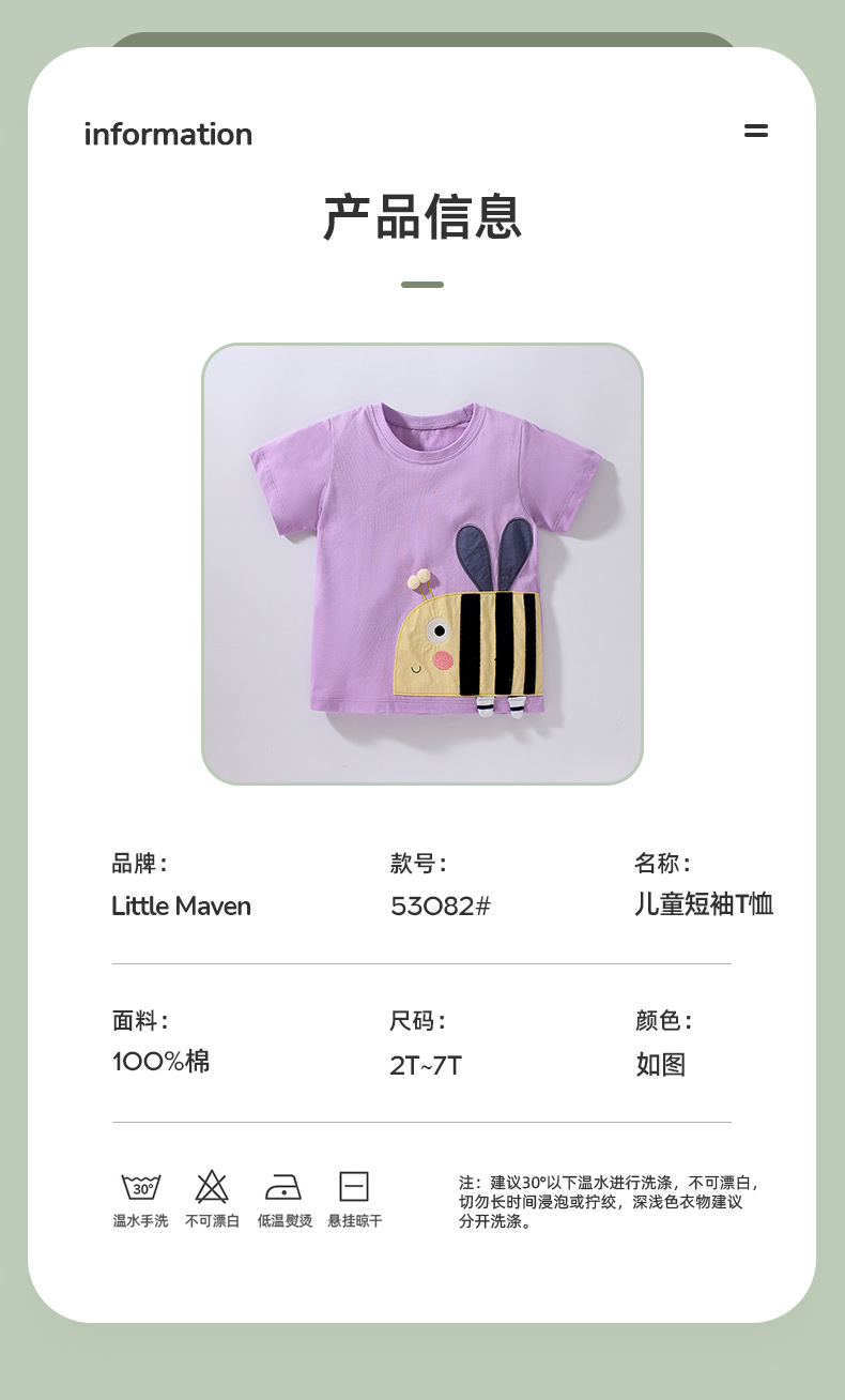 【12款!夏日穿搭不重样】Little maven儿童t恤欧美童装夏季新款女童t恤针织可爱棉质打底衫短袖
