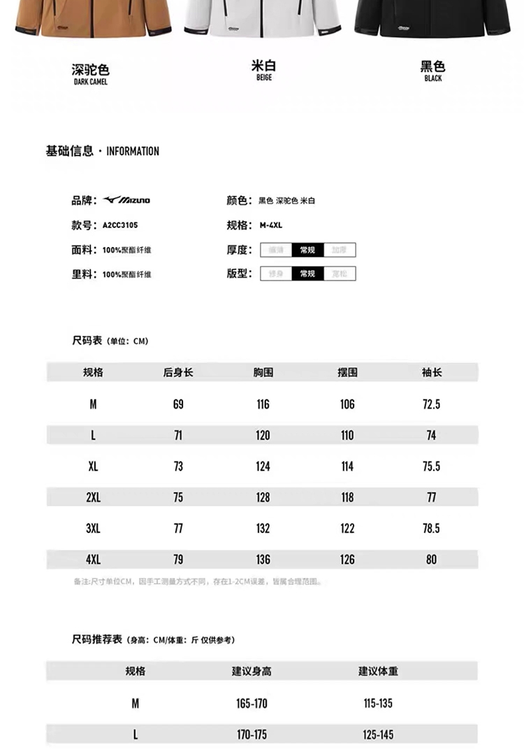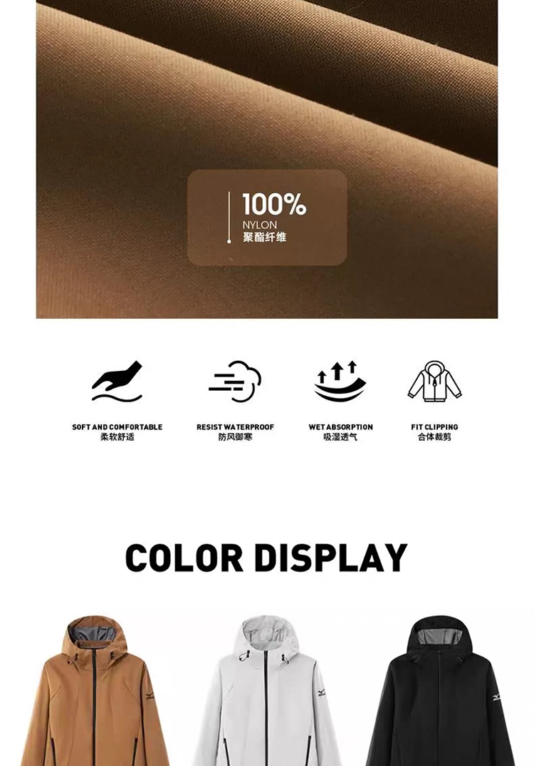 美津浓秋季男女同款单层硬壳冲锋衣户外梭织外套防风夹克登山服 A2CC3105