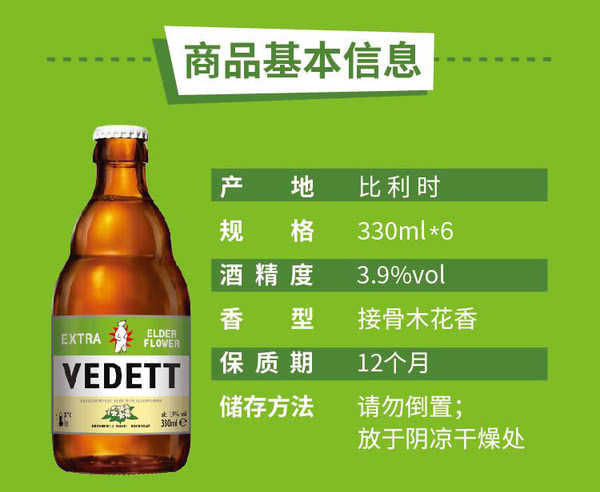 MM 山姆 白熊(Vedett)比利时进口 接骨木花啤酒 330g*6