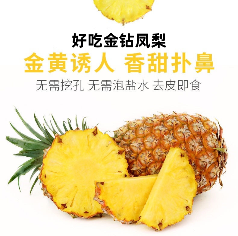 【当季抢鲜吃❗️19.9秒3斤🔥海南金钻凤梨】现摘现发,金黄诱人,香甜扑鼻,无需挖孔,无需泡盐水,去皮即食!水果手撕凤梨新鲜无眼台湾香水菠萝