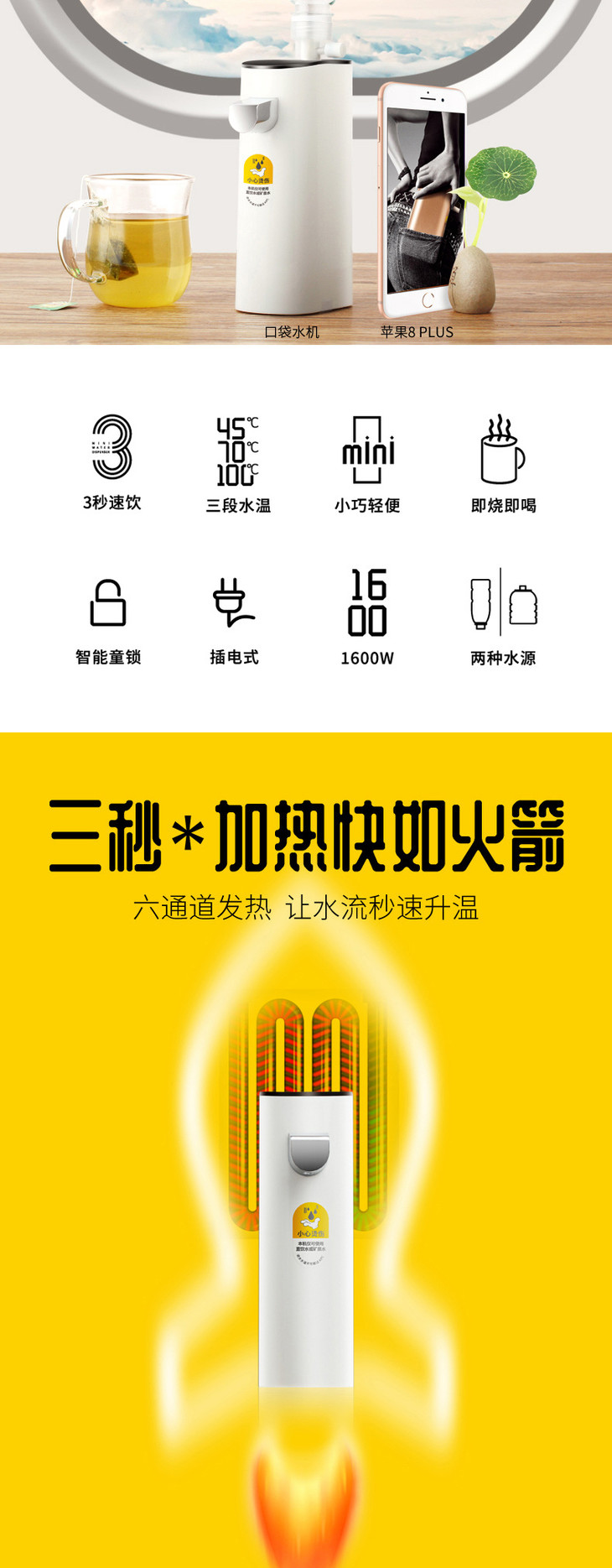 【家用电器】口袋饮水机便携旅行即热式开水机迷你热水器家用办公室速热饮水机