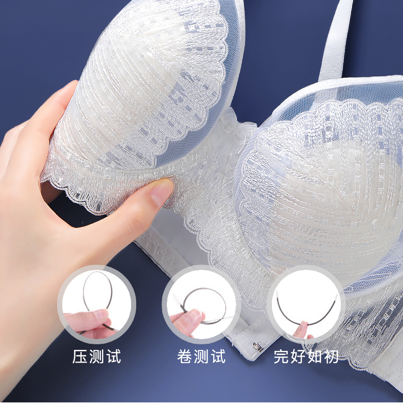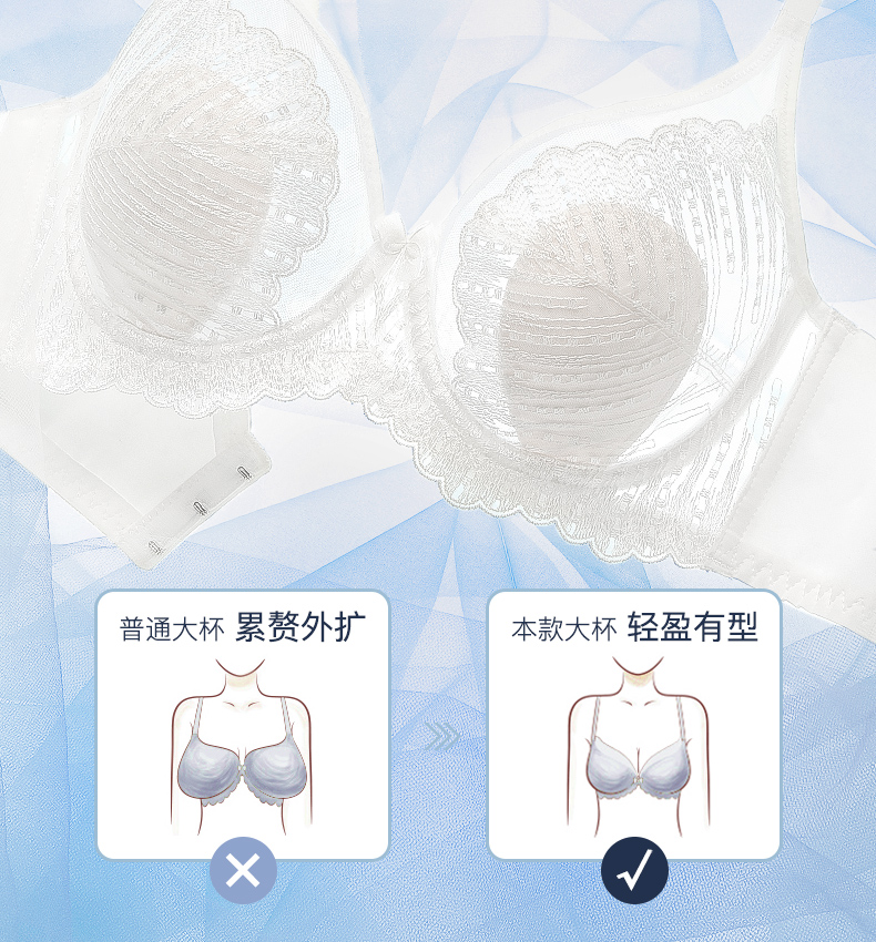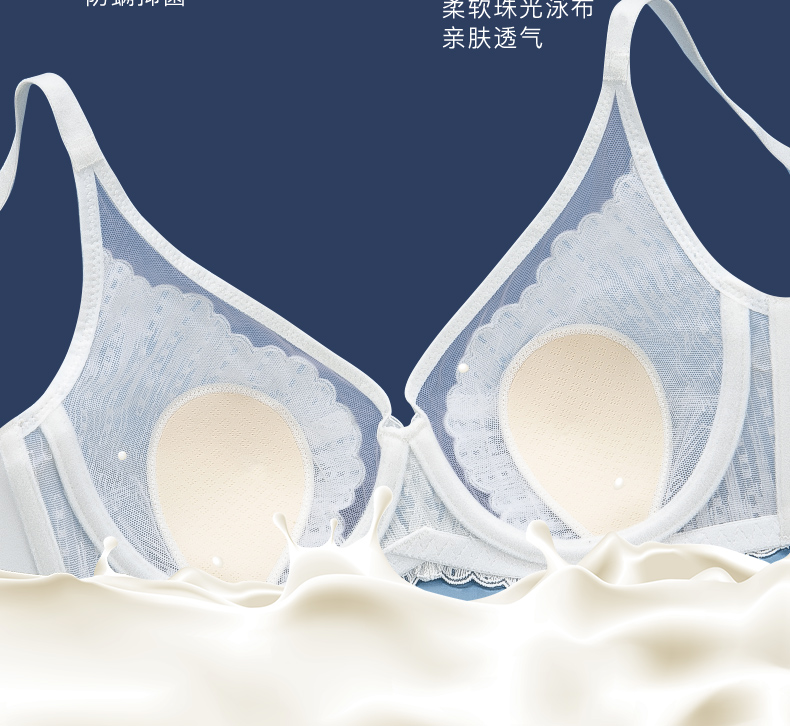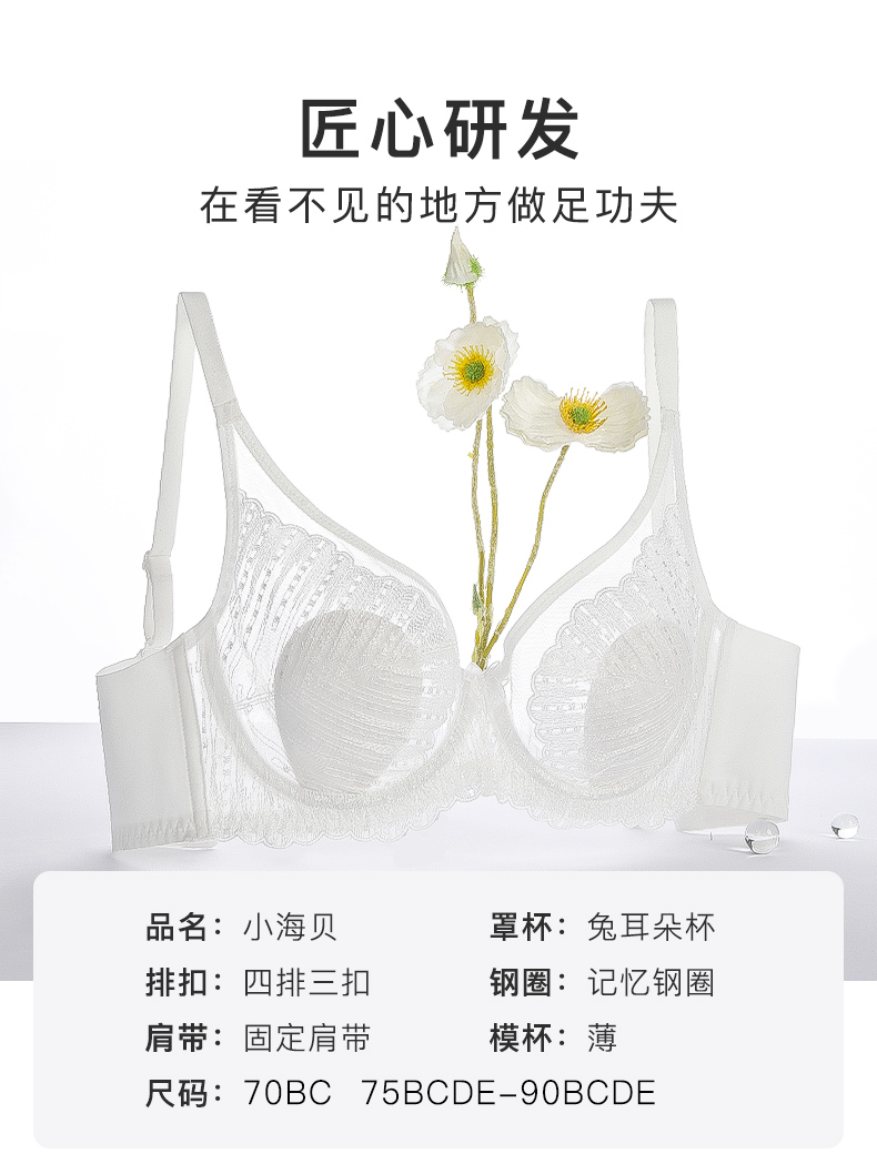 梦芭蒂乳胶刺绣内衣夏季薄款兔耳杯软钢圈文胸大胸显小胸罩小海贝
