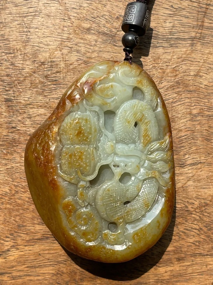 秋梨皮籽料白玉巧雕龙纹把玩原石