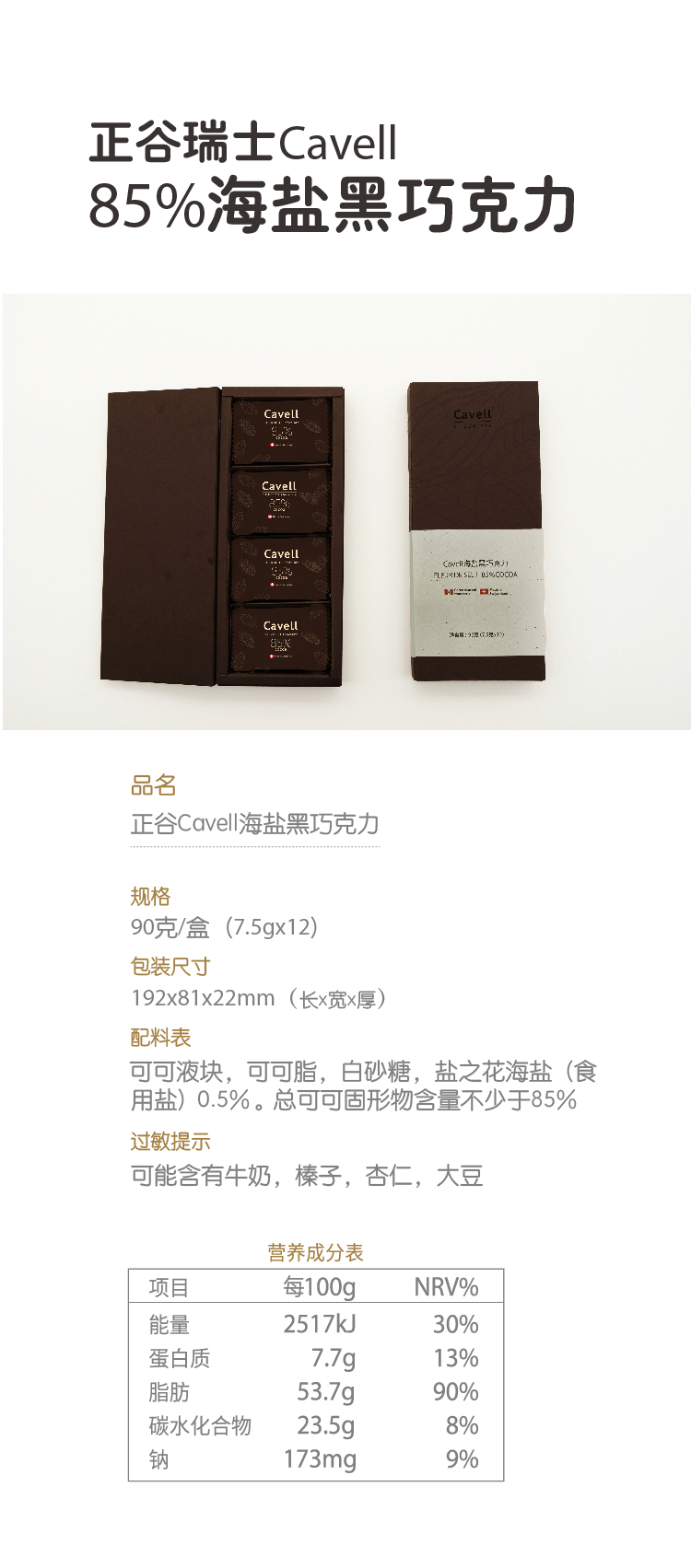 正谷Cavell巧克力(85%海盐黑巧克力)