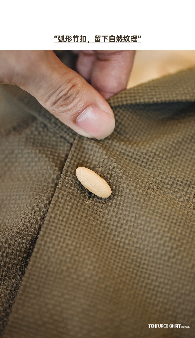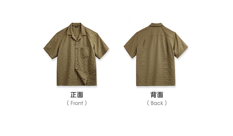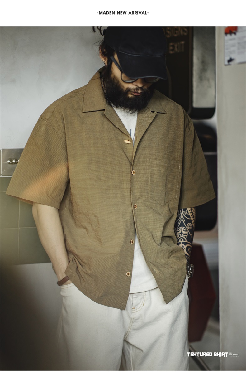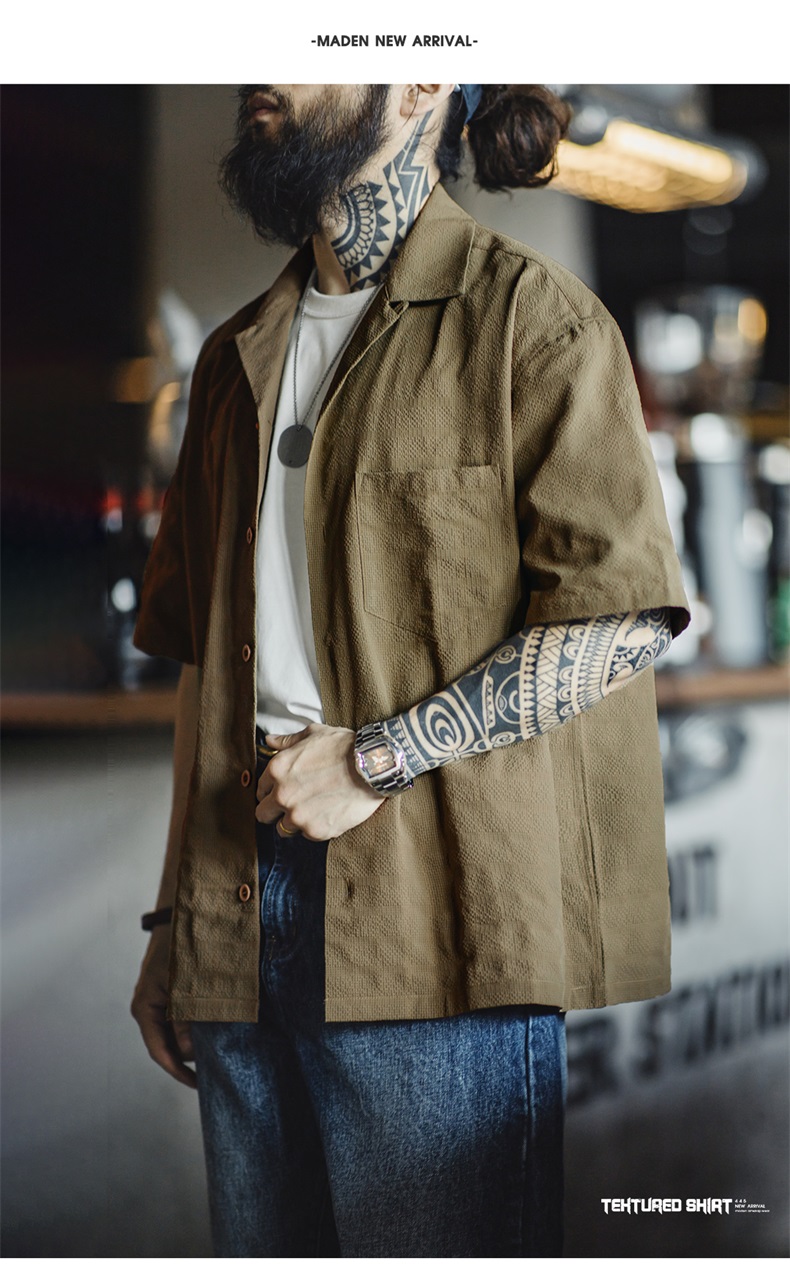 马登工装美式休闲褶皱肌理感短袖衬衫梭织提花宽松古巴领衬衣男夏