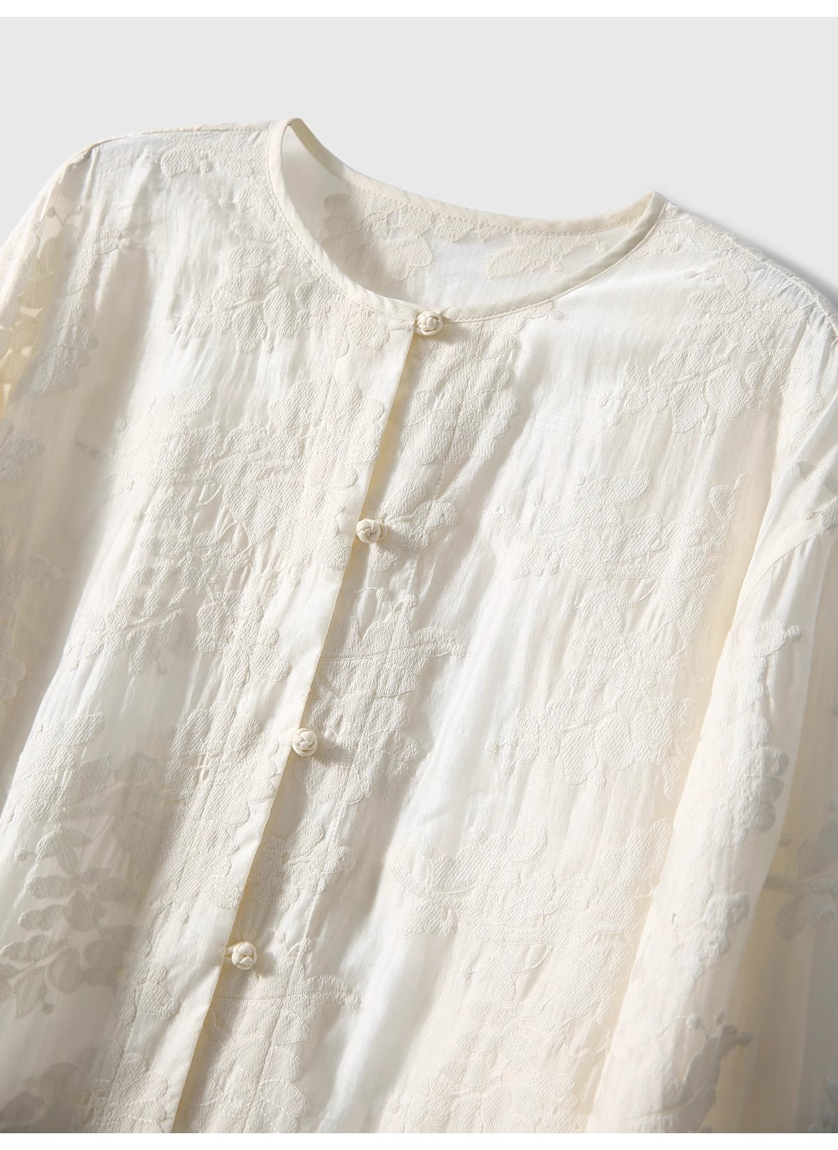 缜密精细蕾丝,质地轻柔软糯,手工盘扣+镂空蕾丝,超级重工,自带贵气感。