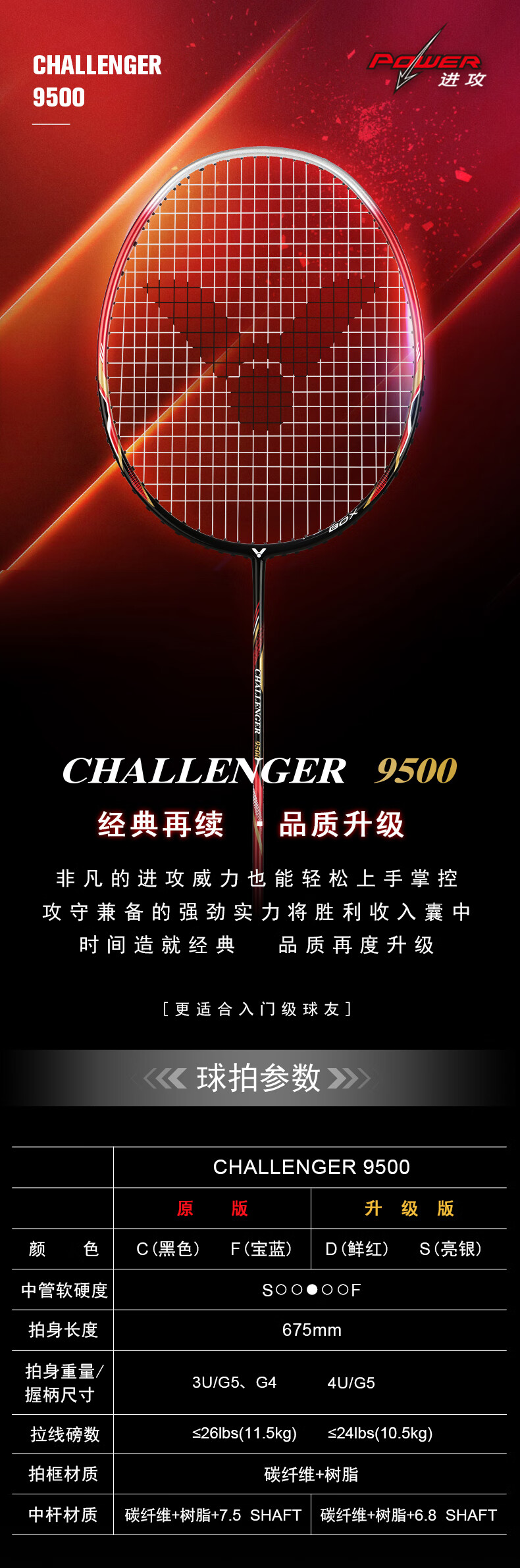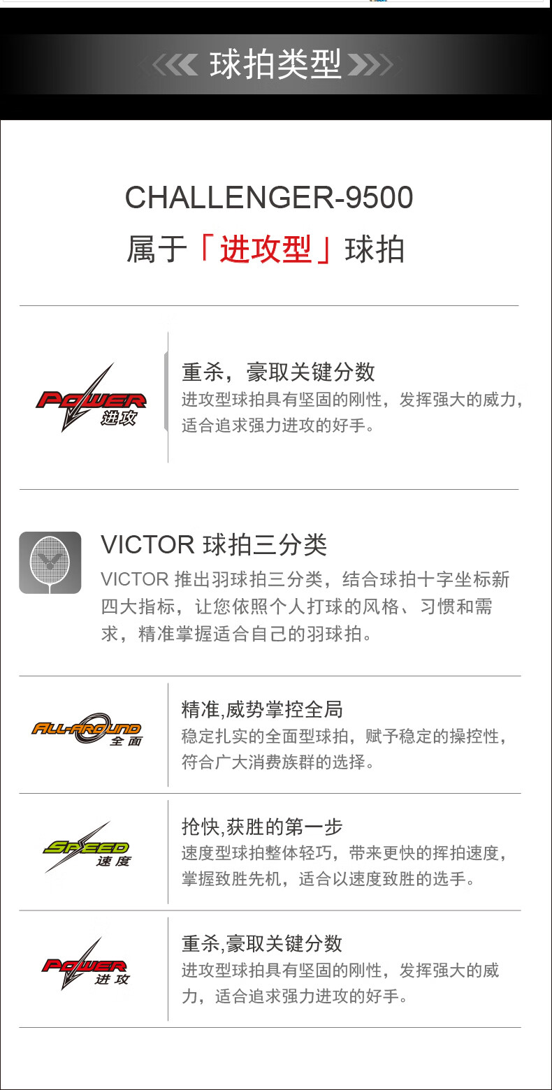 胜利威克多 羽毛球拍 挑战者9500