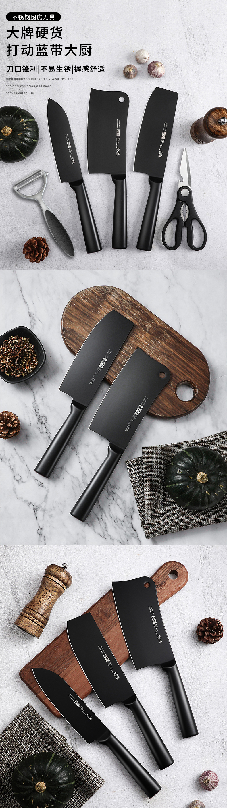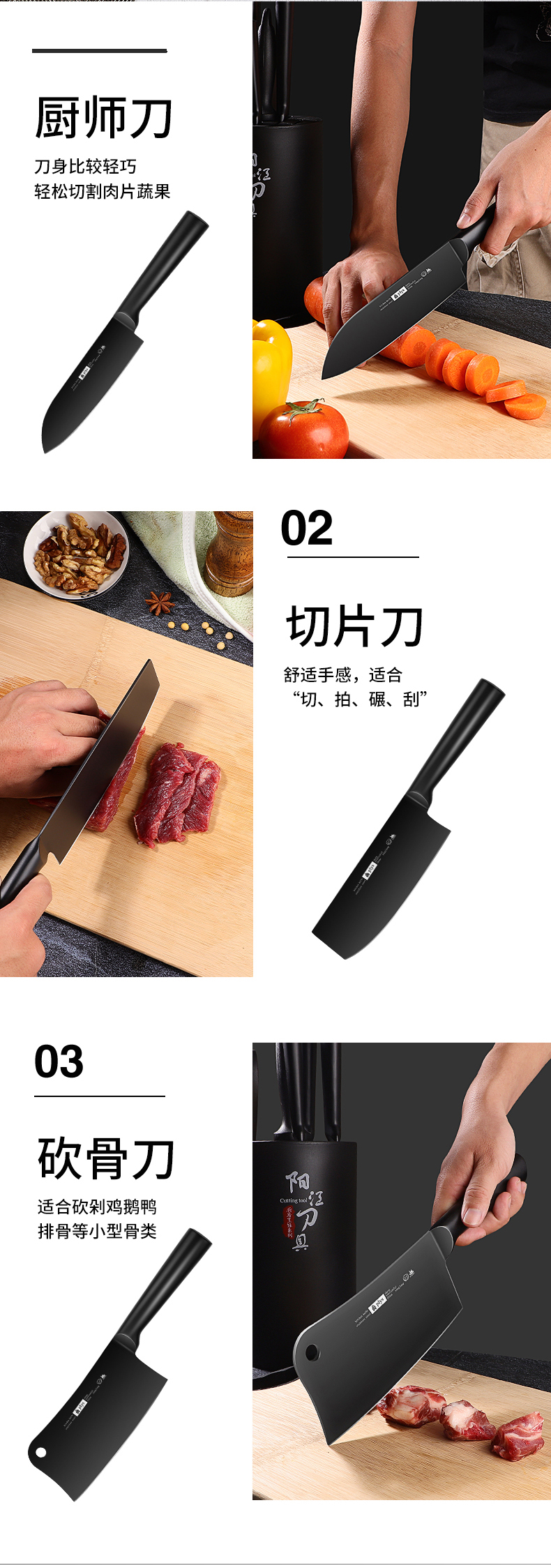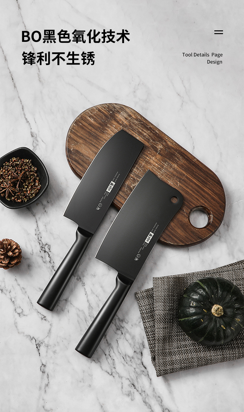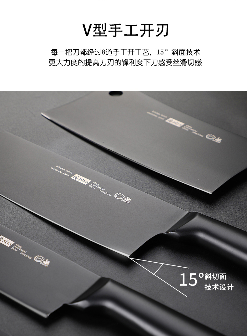 【黑钢砍骨刀】黑刃-60°以上-17cm-130mm菜刀不锈钢水果刀切肉刀切片刀具/把