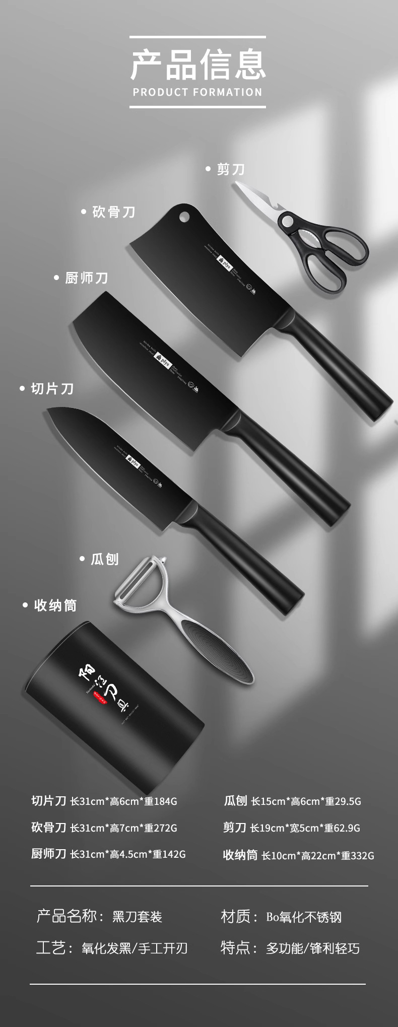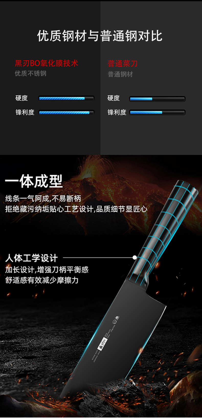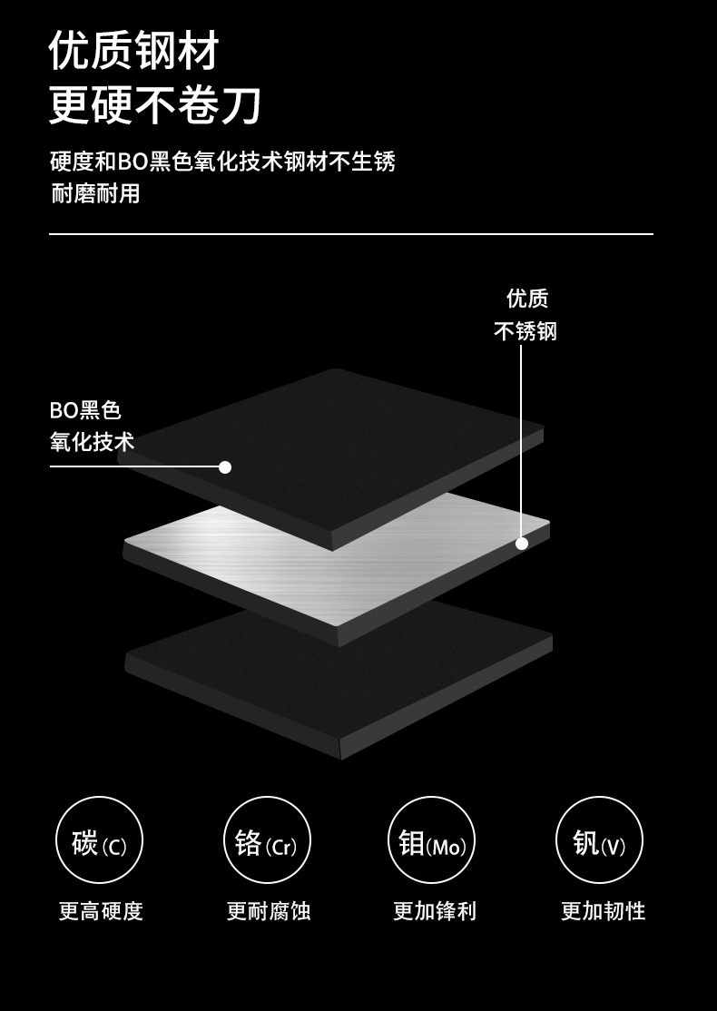 【黑钢砍骨刀】黑刃-60°以上-17cm-130mm菜刀不锈钢水果刀切肉刀切片刀具/把