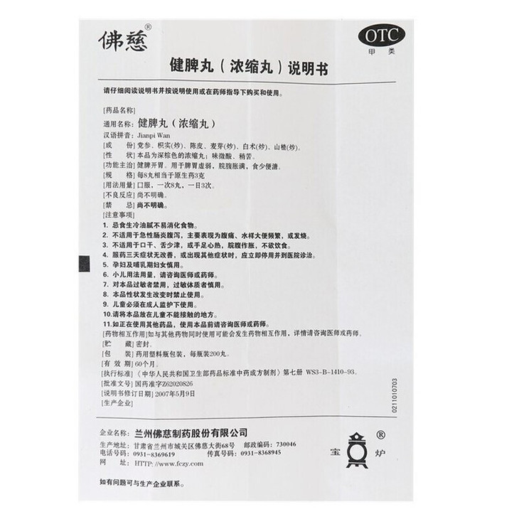 佛慈 健脾丸(浓缩丸) 200丸 5盒