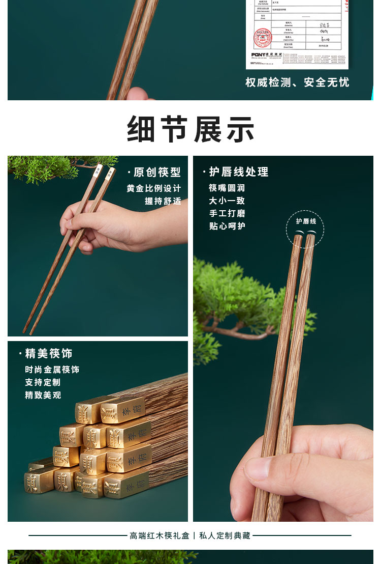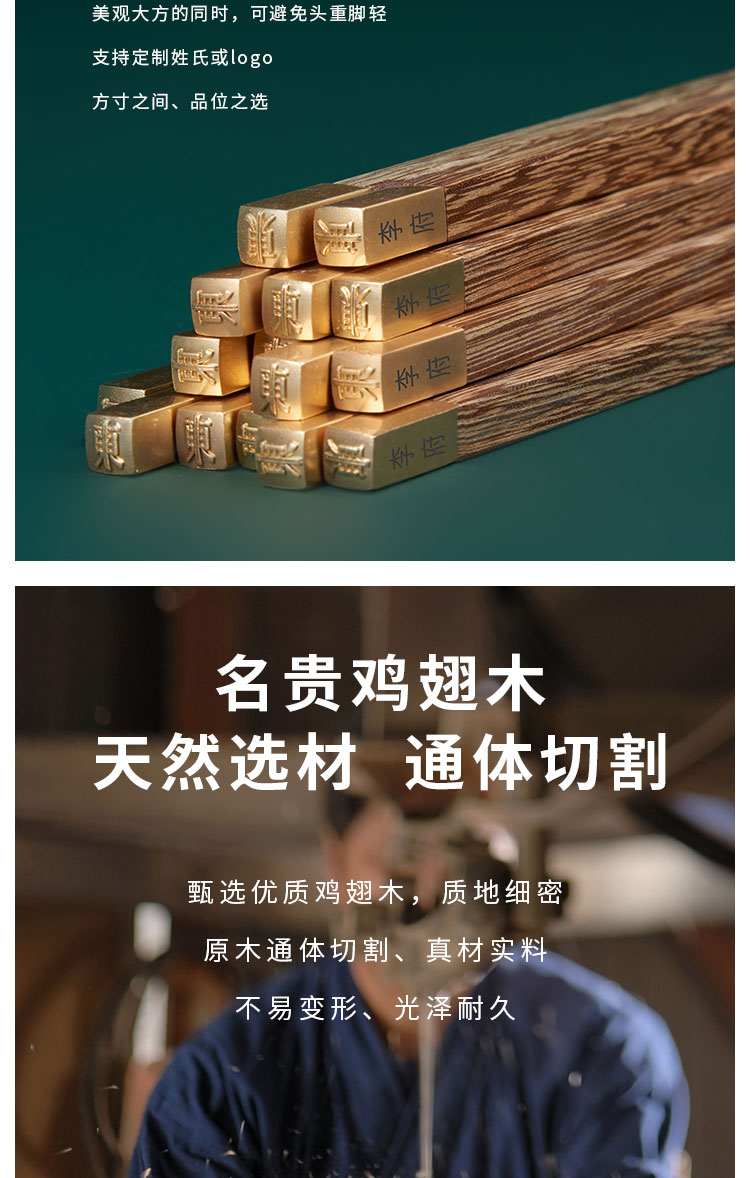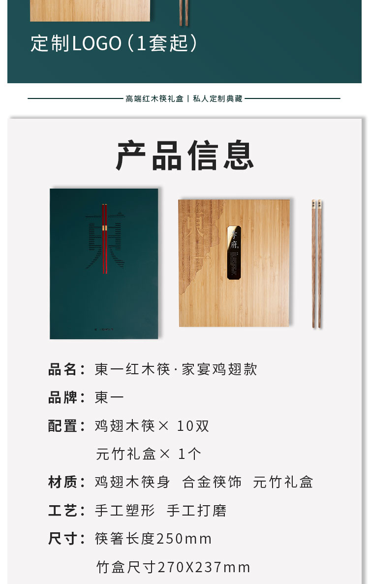 清朴堂1套定制东一红木筷家宴高端鸡翅木筷子十双装乔迁结婚送领导送客户商务礼品节日礼品筷子 鸡翅木