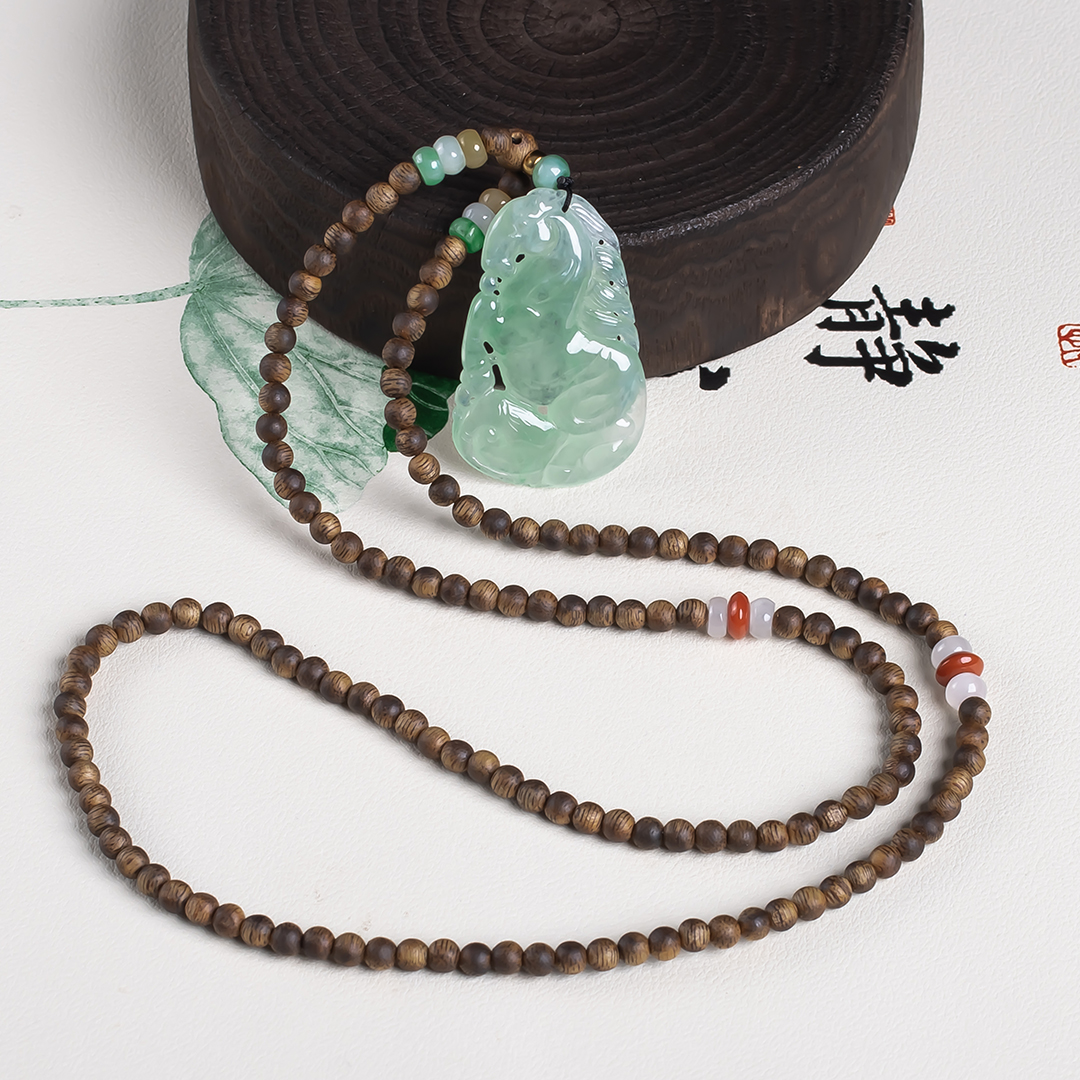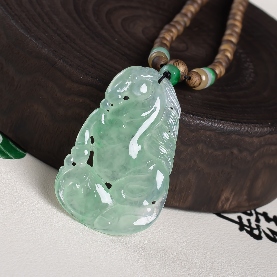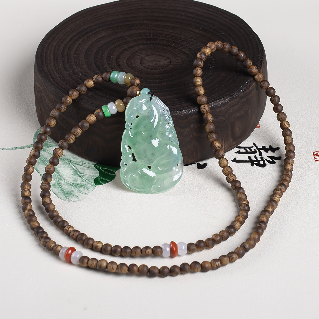 xy0660沉香+晴底翡翠马挂件,天然沉香约4.4mm,原色原味,香味自然清甜,晴绿底色的翡翠生肖马牌,冰润细腻,一马当先,马到成功!