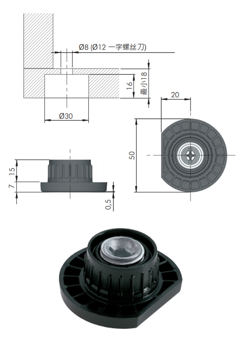 INTEGRATO Z 锌合金调整脚 适用于底包侧柜体(单个承重力175kg)