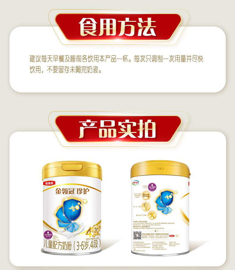 伊利金领冠珍护奶粉4段800g