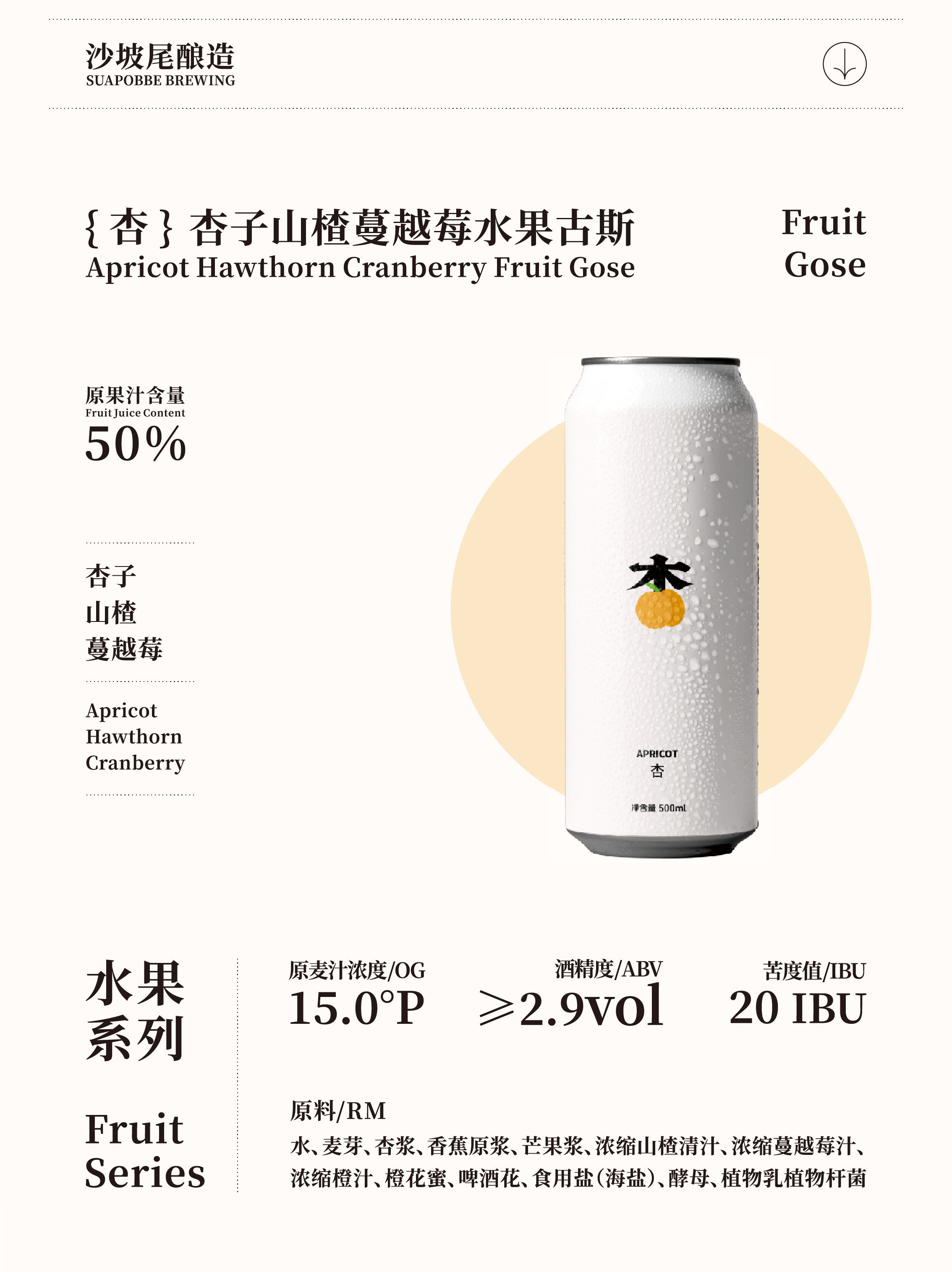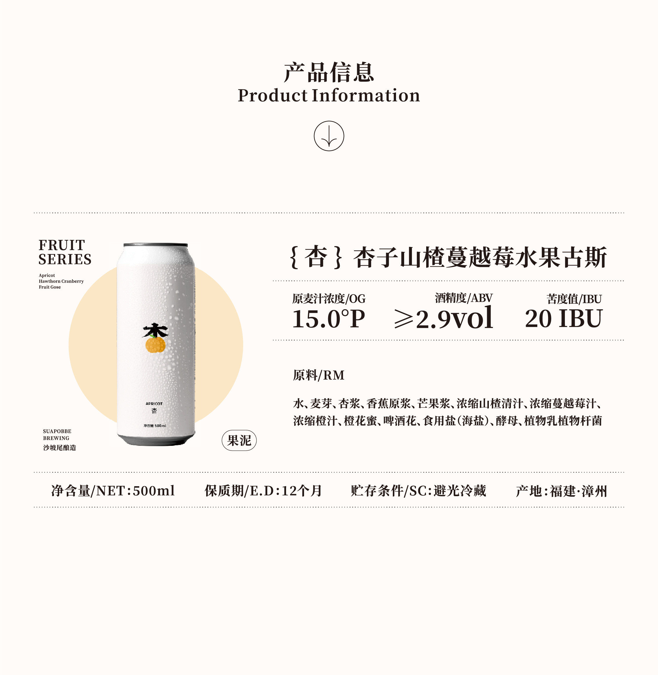 沙坡尾酿造杏 杏子山楂蔓越莓水果古斯精酿啤酒 500ml