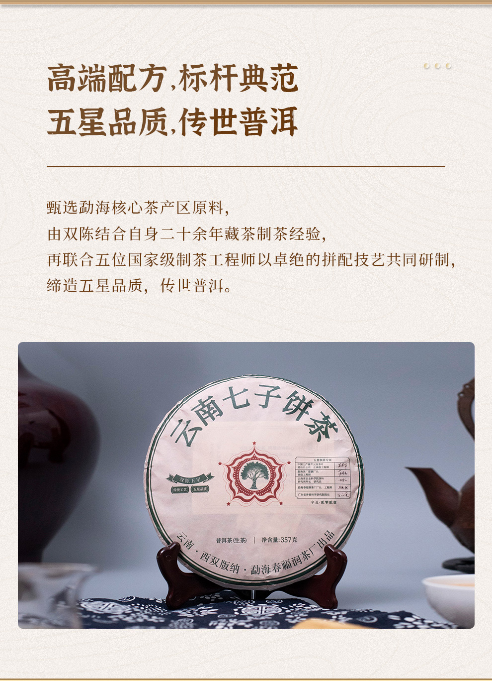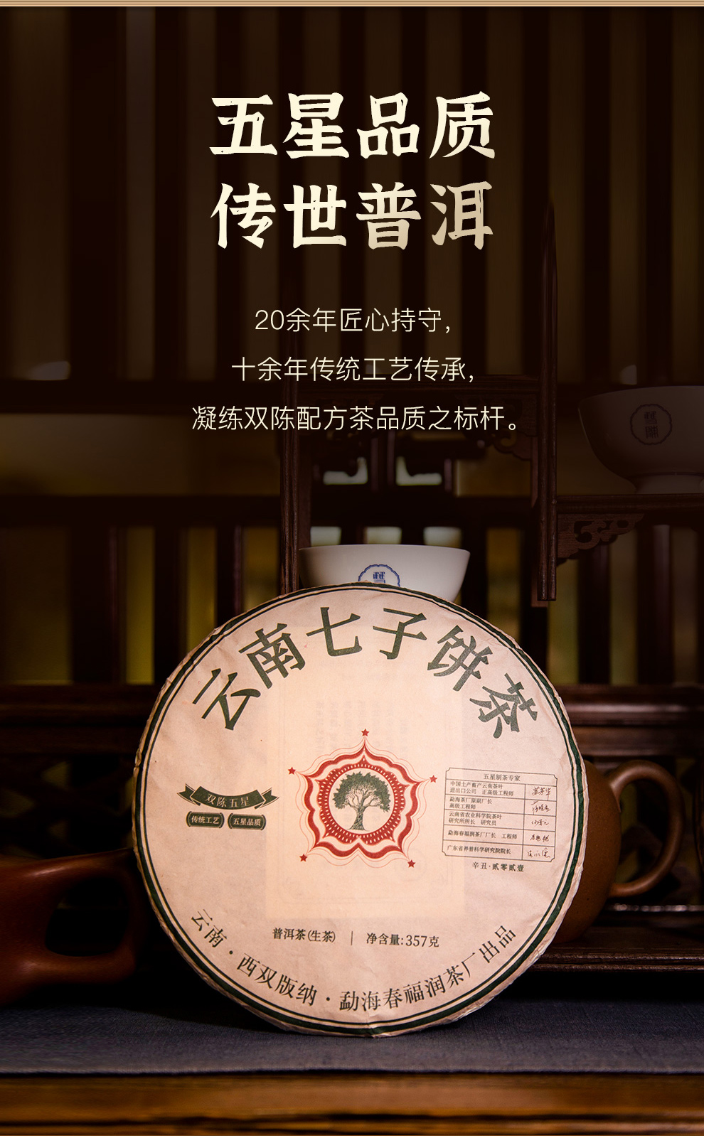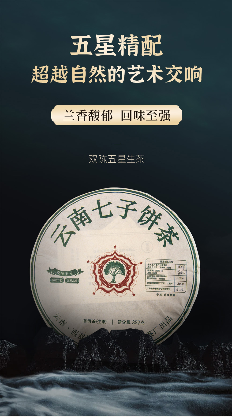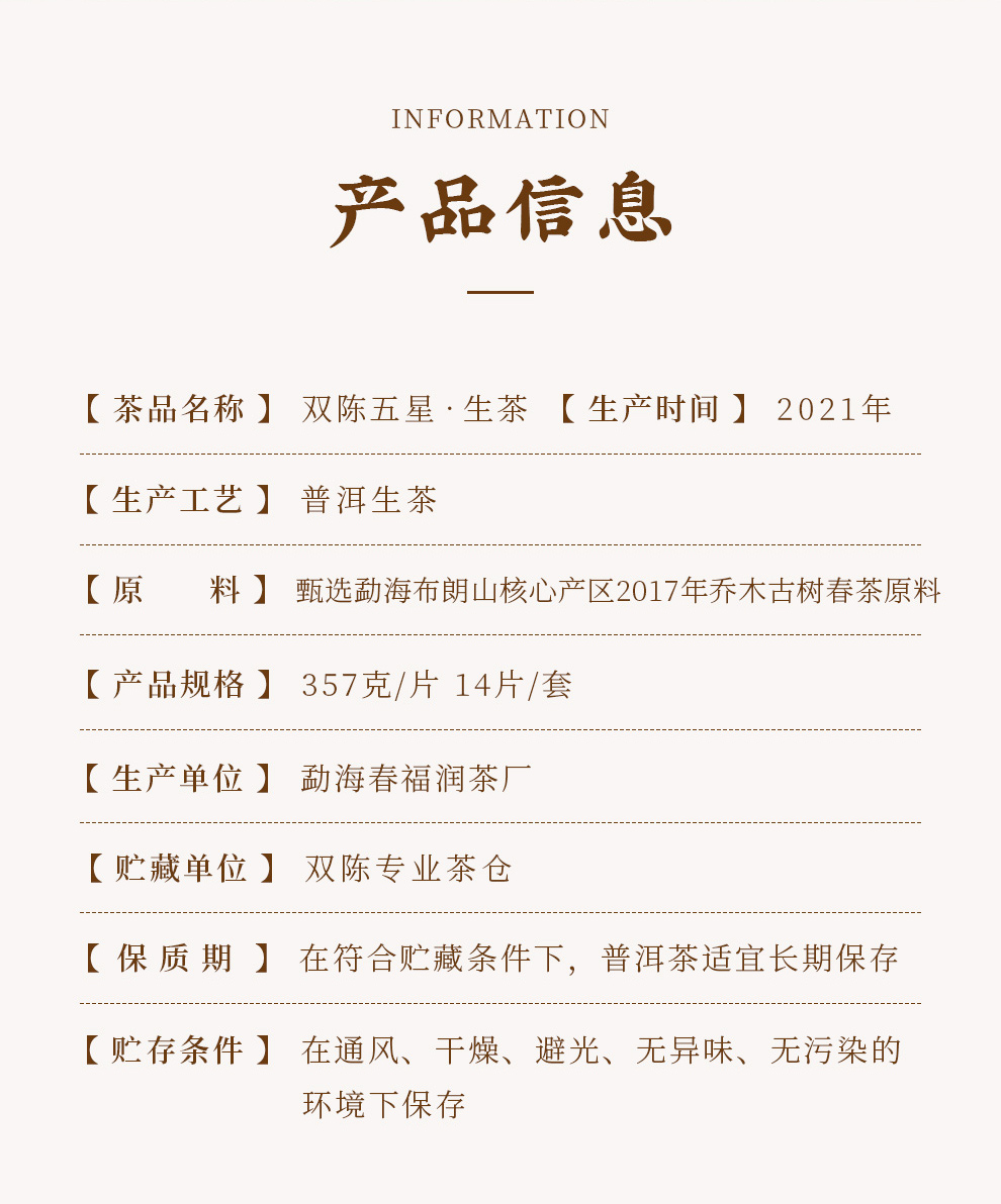 双陈普洱2021年双陈五星生茶357克/饼