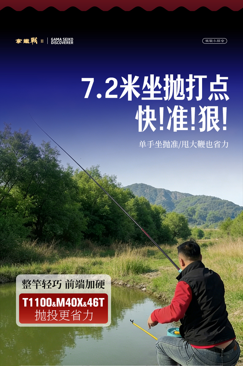 伽玛精工拿铁战二代极轻小综合鱼竿手竿超轻超硬钓鱼竿
