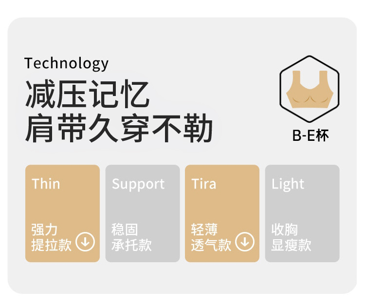 D1-【B-E杯】【适合高个子或者肩距长的宝子】【大胸显小 兔耳杯】【灵压记忆肩带】润微粉底液隐形透气内衣 提拉轻柔