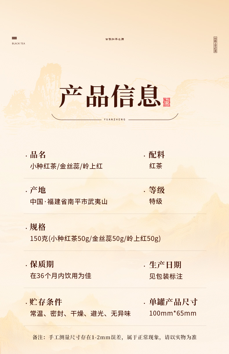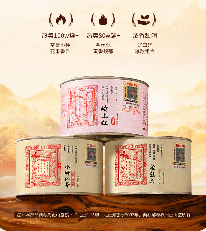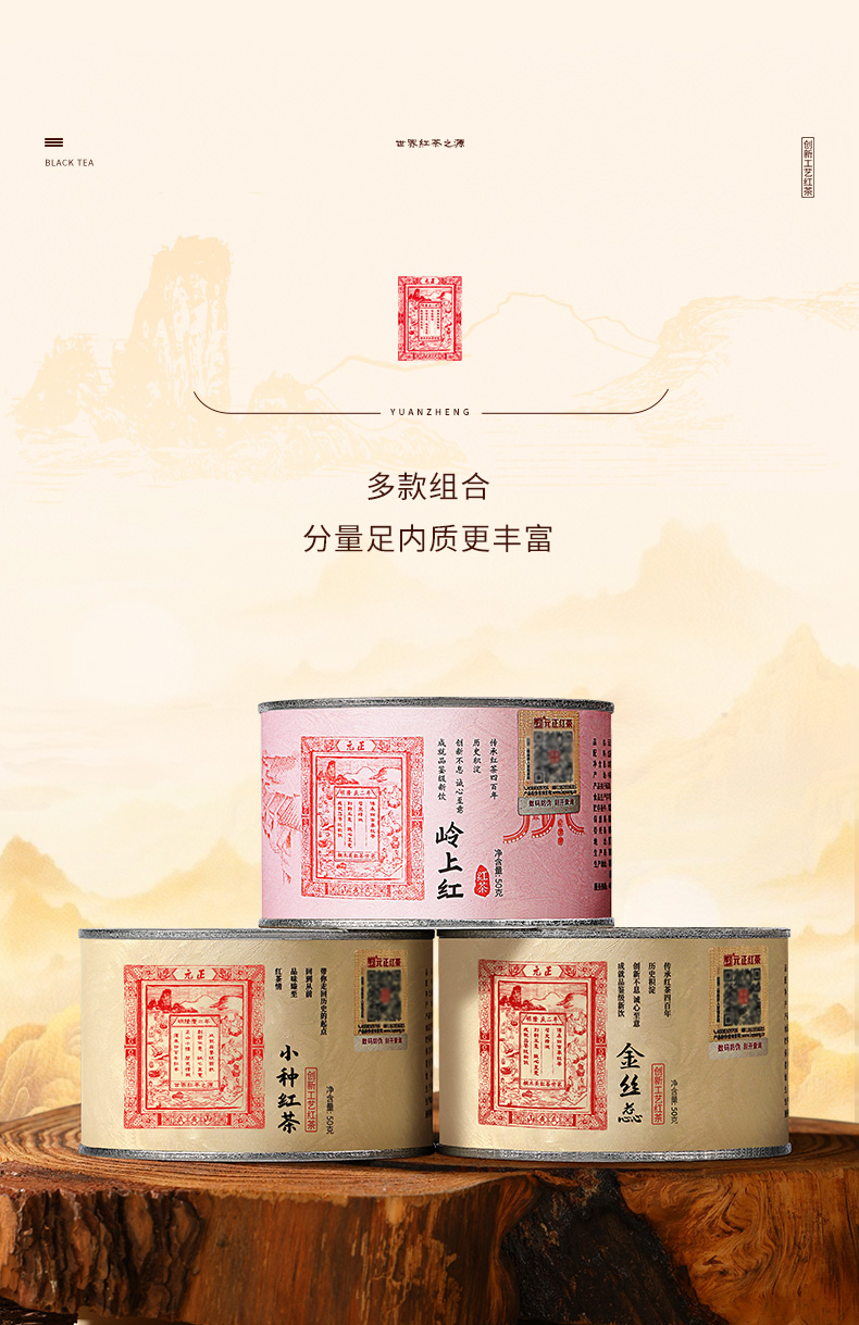 元正 小种红茶金丝蕊岭上红组合装 特级茶叶罐装150g
