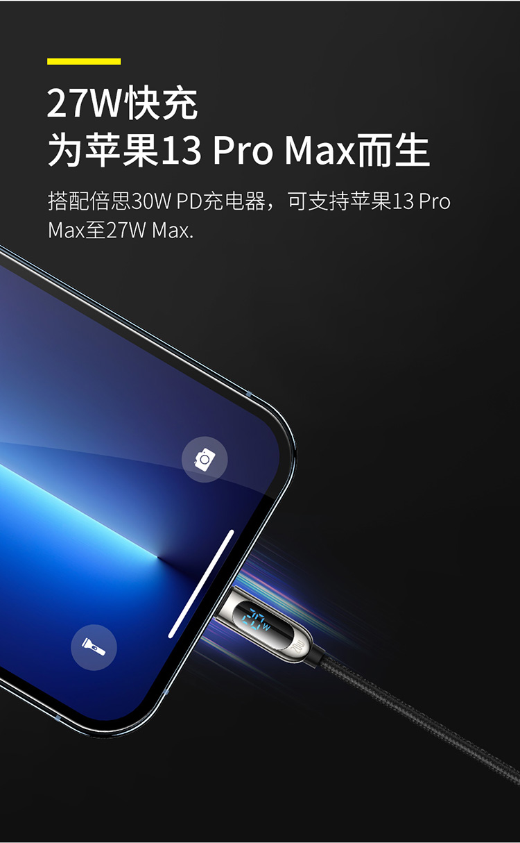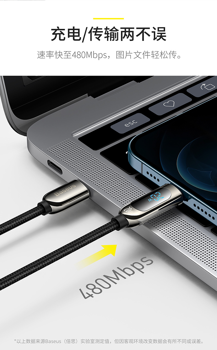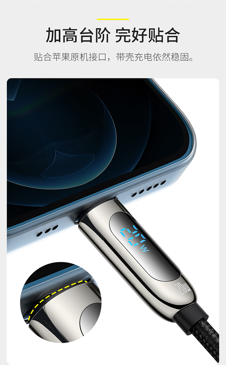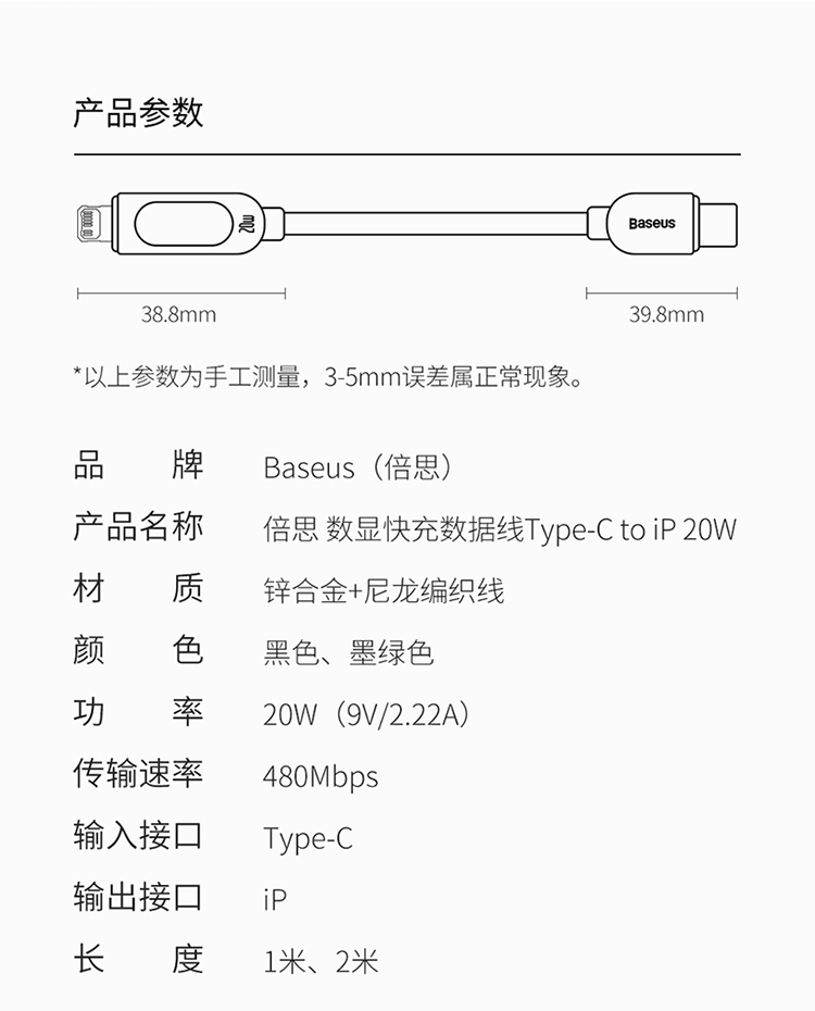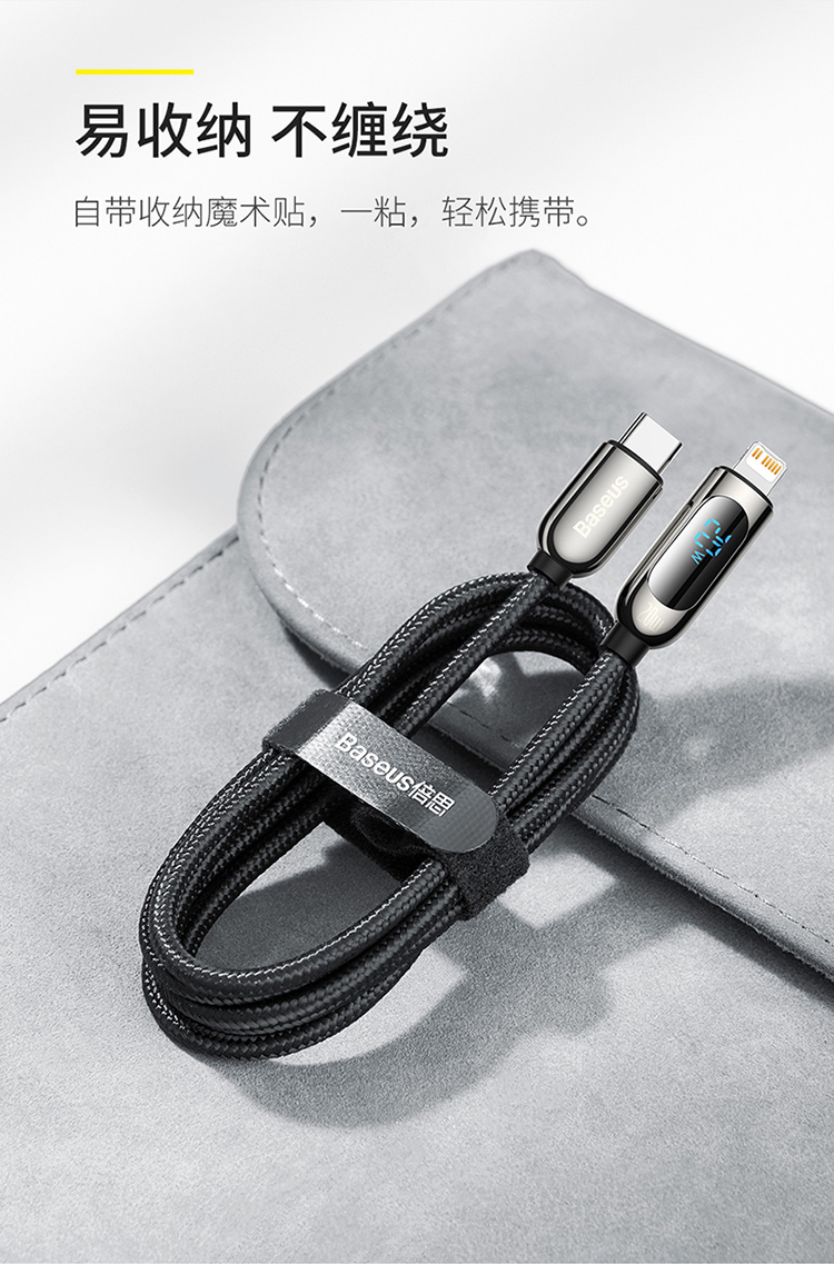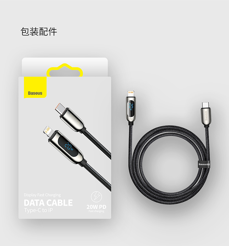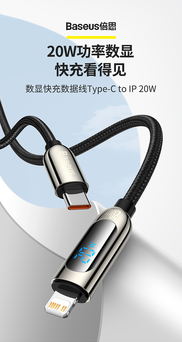 倍思 数显快充数据线Type-C to IP 20W